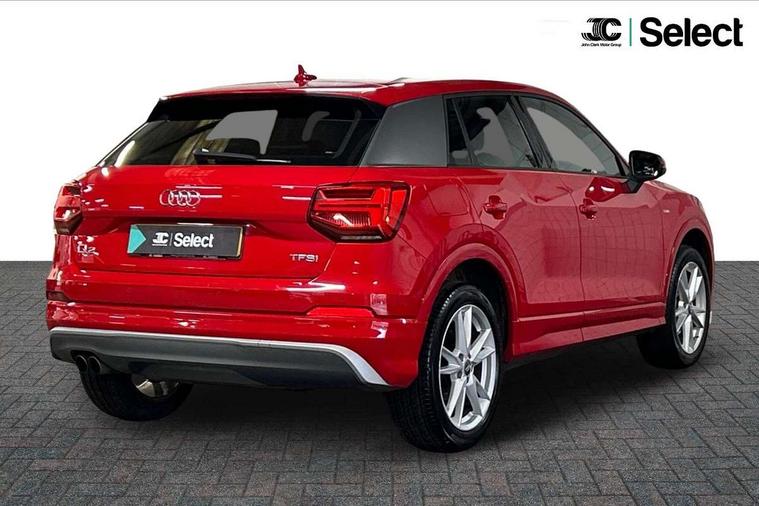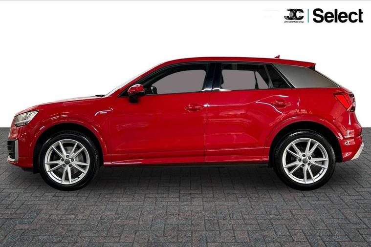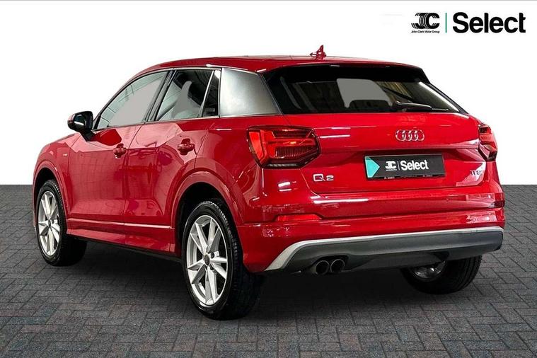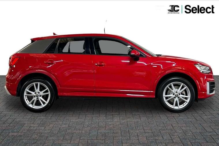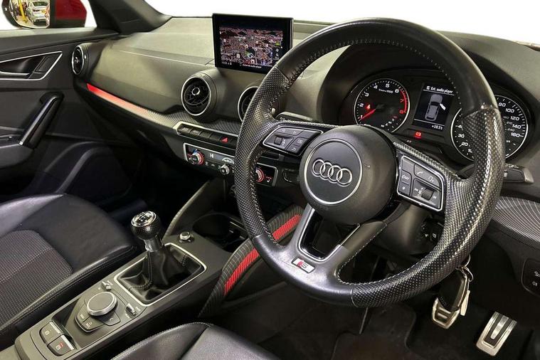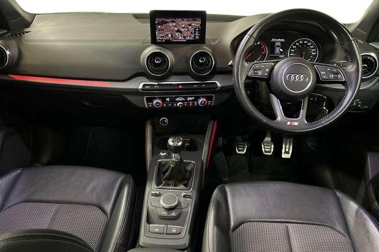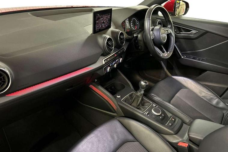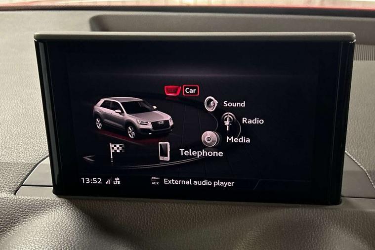 Audi drive select, Audi smartphone interface, Bluetooth hands free telephone connection, MMI - Multi Media Interface control system, MMI SD card Navigation, PAS, Service interval indicator, Voice control system, Audi music interface, Aux input, CD player, DAB digital radio module, MMI radio plus with 7" colour MMI screen and MMI controller, USB port, Body colour door mirrors, Chrome exhaust tailpipe, Door mirror integrated indicators, Electrically adjustable and heated door mirrors, Front and rear electric windows, Headlight washers, LED headlights with LED rear lights + dynamic rear indicators, Rear wiper, S Line body styling, Sunband for windscreen, Black cloth headlining, Centre console with storage/cupholders, Floor mats with contrast stitching, Front and rear door pockets, Front and rear headrests, Front centre armrest, Front sports seats, Glovebox, Height adjustable front seats, Height/reach adjust steering wheel, Illuminated door sills, ISOFIX on front passenger and rear outer seats, Stainless steel pedals, Storage compartment in rear centre console, Full body colour bumper pack - Q2, 3x3 point rear seatbelts, ABS+Electronic Brake force Distribution, Curtain airbags, Driver and passenger airbags, Driver and passenger side airbags, EDL + ASR, Electrically operated child locks on rear doors, Electromechanical parking brake, ESP, Multi-Collision braking, Pre-sense front with pedestrian recognition, Seatbelt warning light, Tyre pressure monitoring system, Warning triangle and first aid kit, Locking wheel bolts, Remote central locking, Thatcham category 1 alarm + immobiliser, Aluminium interior trim, Matt brushed aluminium fascia and door trim inlays,