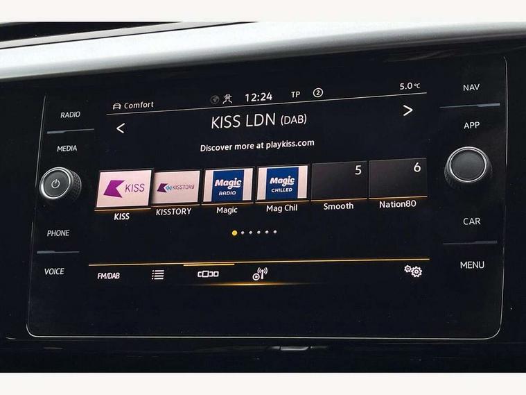 Adaptive cruise control (ACC) with speed limiter, front assist (reacting vehicles pedestrian and cyclists) and follow to stop, App connect including wireless Apple CarPlay, Camera for warning system, Digital cockpit with 10.25" high resolution TFT display screen with customisable menus and information, Driver alert system with fatigue detection, Driver profile selection including ECO function, Dynamic road sign display, eCall - Emergency call service for SOS calls to emergency response, Emergency assist, Hands free boot opening, Press and drive key, Progressive steering, Speedo and rev counter, electronic odometer, trip, service interval display and exterior temperature gauge, Tailgate, Travel assist - Lane keeping assist and traffic jam assist, Voice activation for telephone and navigation, 10 amp mode 2 charging cable, 16 amp mode 3 charging cable, Start/stop function with battery regeneration, External, USB type C data sockets with increased charging performance front (45 Watt), Premium USB cable in choice of either Apple or Android smartphone compatibility, Auto dimming interior rear view mirror, Automatic headlights, Body colour door handles, Body colour side skirt, Body coloured top and matt black lower door mirrors with integrated indicators, Chrome plated radiator grille inserts and light switch surrounds, Chrome side window surrounds, Dynamic headlight range control, Electric folding door mirror, adjustable, heated with front passenger exterior mirror lowering function, Front and rear electric windows, Front and rear stainless steel door sill protection, Front windscreen washers and wipers with 4x interval delay, Heat insulating glass windscreen, Heat insulating side and rear windows, Heated rear windscreen, Heated windscreen washer jets, LED 3rd brake light, LED rear combination lamp with dynamic indicators, LED rear number plate lights, Panoramic sunroof with tilting and sliding including integrated roller blind, R Line design body coloured bumpers, Rain sensor, Rear fog lamp on one side and reversing lamp on both sides, Rear side wing doors, Rear tinted glass from B pillar backwards, approx 65% tinted, Rear windscreen washer and wiper with interval delay, Roof spoiler, Tailpipes behind rear bumper, 12V socket in front centre console, 12V socket on rear of front centre armrest, 3 rear head restraints, 3 seat bench in 2nd row, 30 colours options interior ambient lighting, 60:40 split folding rear seat backrests with centre armrest, Air care climatronic 3 Zone electronic air conditioning with automatic air recirculation, Black roof lining, Chrome trim on upper and lower air vents extending across cockpit, Driver and front passenger sunvisor with vanity mirror, Front + rear carpet mats, Front cupholders x 2, Front footwell illumination, Front sports comfort seats, Glovebox, Heated front seats, Height/reach adjust steering wheel, Isofix child seat preparation easy fit for two outer rear seats, Luggage compartment lighting, Removable luggage compartment cover, Single front passenger seat, Split folding front seat backrest with front centre armrest, Stainless steel pedals, Two LED front reading light, 3 rear three point seatbelts, ABS+EBD+Brake assist, Child locks on rear doors, Driver airbag and front passenger airbags with deactivation switch including driver knee airbags, Electronic parking brake, Electronic stability control (ESC) and Electromechanical brake booster, Front disc brakes, Front side airbags with curtain airbags, Hill start assist, Pro active occupant protection to detect critical situations with elevated accident potential from the front, Rear disc brakes, Three point height adjust front seatbelts + pretensioners, Two tone horn, Tyre pressure loss indicator, Warning buzzer for seatbelts if unfastened, Warning triangle, Alarm with interior protection with deactivation via infotainment system, Electronic engine immobiliser, Keyless entry system including start/stop button on centre console, Remote central locking, Aluminium decorative inserts, Chrome trim on lower doors in front and rear, Leatherette insert on door and side trim panel in foam film, Piano black decorative inserts in centre console, 19" Montevideo alloy wheels with Airstop tyres + anti-theft wheel bolts, Tyre mobility kit,