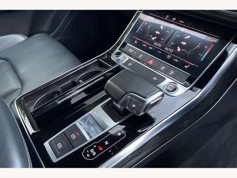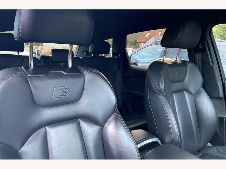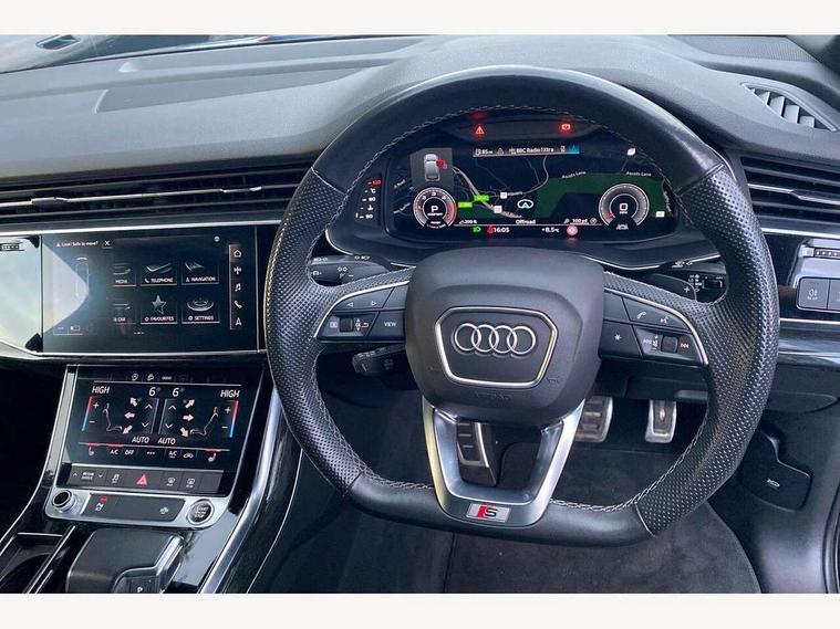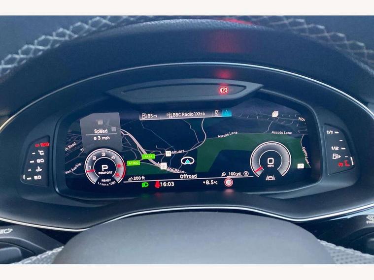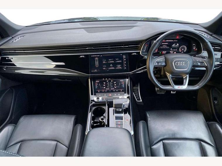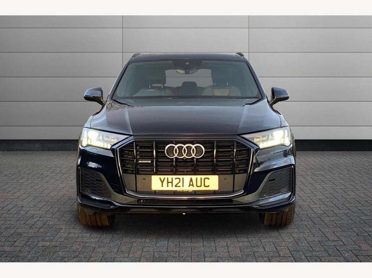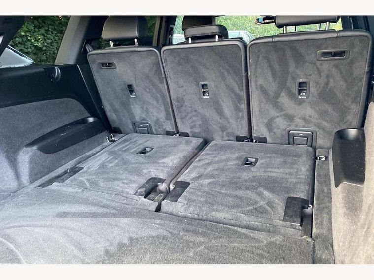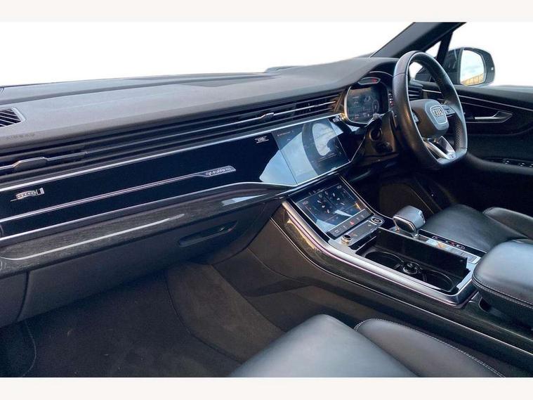 Audi connect safety and service (e-call), Audi drive select (Auto, Comfort, Dynamic, Individual, Off-road and All road), Audi phone box with wireless charging, Audi smartphone interface includes wireless Apple carplay/Android Auto, Camera based traffic sign recognition, Electromechanical steering, MMI navigation plus with MMI touch screens includes 10.1" and 8.6" screens with haptic feedback, Natural voice recognition, Parking system plus - front + rear sensors, Power operated tailgate, Rear view camera, Start/stop system, 48V Mild hybrid technology, Adaptive air sports suspension, Quattro all wheel drive with self locking centre differential, Audi music interface - front 2 USB-C ports with charger and data functions, Audi sound system with 6 channel amplifier, 180 watt amplifying capacity and 10 loudspeakers including subwoofer, DAB digital radio module, Audi matrix LED headlights with dynamic front and rear indicators, Auto dimming frameless rear view mirror, Black roof rails, Bumpers in contrast paint scandium grey finish includes door trim and wheel arch trim strips, inlays in door strip contain quattro embossing, Electrically adj heated/folding + automatically dimming exterior mirrors with memory + automatic kerb side function for passenger side exterior mirror, Heat insulating glass in windshield, Integrated LED indications in door mirrors, LED daytime running lights, LED rear tail lights, Privacy glass - dark tinted rear and rear side windows from B-pillar backwards, 4 zone deluxe automatic climate control, 7 seat layout with ISOFIX points for the front passenger seat and rear passenger seat, Black cloth headlining, Comfort front centre armrest, Folding rear seats, Front head restraints, Front/rear floor mats, Heated front seats, LED interior ambient lighting, Luggage compartment cover, Luggage compartment sill protection in stainless steel, Rear head restraints, Stainless steel pedals, Sunvisors with illuminated vanity mirrors, Tool kit, Titanium black styling pack - Q7/SQ7, 3 point seatbelts on all rear seats, Audi pre sense front, Driver and front passenger, front side and curtain airbags, Electromechanical parking brake, Electronic Stabilisation Control (ESC) including ABS, ASR and EDL, Extended pedestrian protection measures, Hill hold assist, Seatbelt monitoring, Tyre pressure loss indicator, Warning triangle and first aid kit, Anti theft alarm, Anti-theft wheel bolts and wheel loosening detection, Keyless go with remote central locking, Polished oak trim with grey finished, Tyre repair kit,