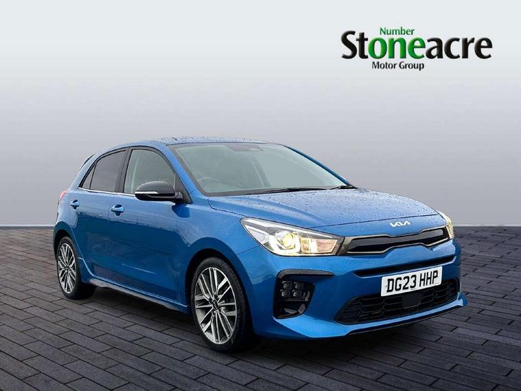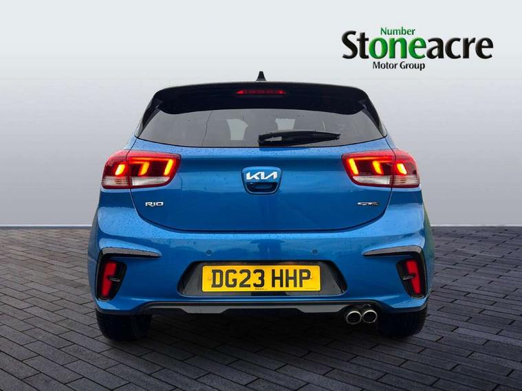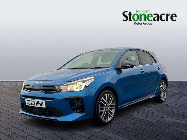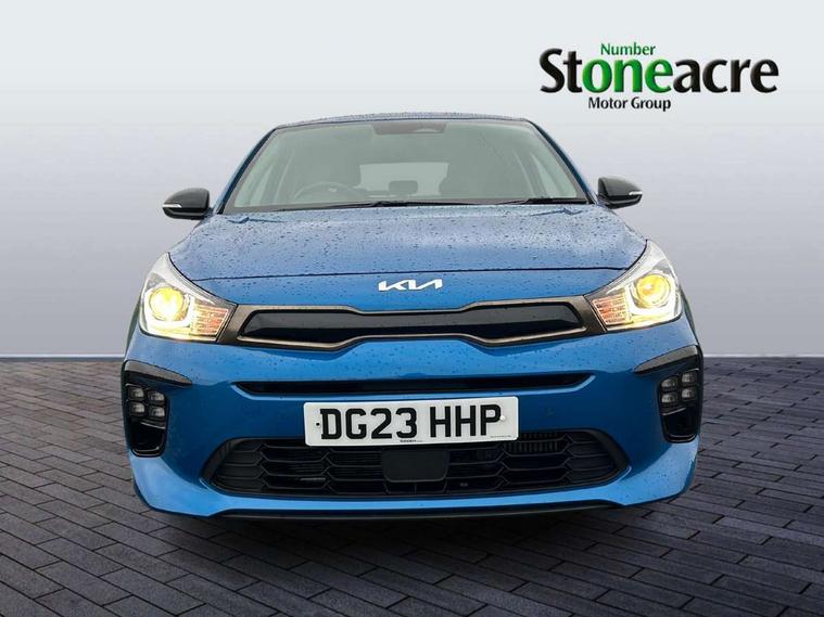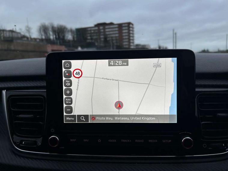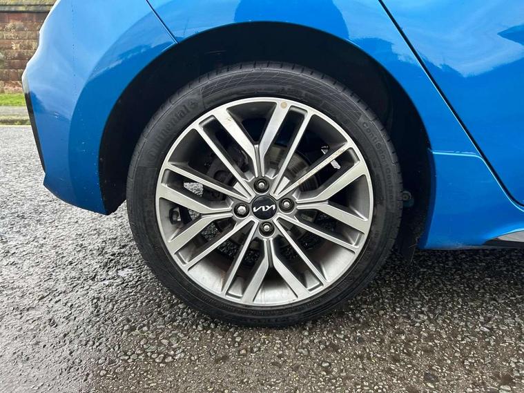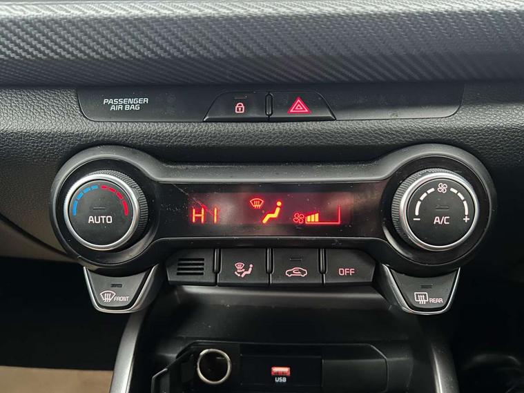 8" touchscreen navigation, Apple car play/Android Auto, Blind spot collision warning, Cruise control + speed limiter, Digital clock, Drive mode selector, Electric power steering, Emergency call service, Emergency stop signalling system, Front parking sensor, Gear selection indicator, Kia Connect (UVO), Manual speed limit assist (MLSA), Outside temperature display, Rear parking sensor, Reversing camera system with dynamic guidelines (Integrated into centre fascia screen), Tachometer, Tailgate, Trip computer, Voice control system, Windscreen washer level indicator, Intelligent Stop and Go, 6 speakers, Bluetooth connectivity including audio streaming, DAB Digital radio, Front USB port for media connection, Rear USB port, Steering wheel mounted audio controls, Aeroblade-type front wipers, Auto dimming rear view mirror, Automatic defog system, Automatic lighting control, Bi-function projection headlights, Body colour door handles, Chrome side window trim, Cornering light, Electric adjustable/heated/folding door mirrors, Front electric windows with driver's auto up/down function, Gloss black and dark chrome surround radiator grille, Headlamp levelling, Heated rear window, High gloss black door mirrors, High Gloss Black rear spoiler, LED "Ice-Cube" Front Fog Lights, LED daytime running lights, LED indicators in door mirrors, LED rear fog light, LED third brake light, Privacy glass (Rear Windows and Tailgate), Rain sensing front wipers, Rear electric windows, Rear side wing doors, Rear wash/wipe, Speed variable front wipers, Sports front bumper, Sports rear bumper, Tinted glass, Twin exhaust pipes, Welcome home function, 3 passenger assist grips, 3 seat bench in 2nd row, 60/40 split/folding 2nd row of seats, All round height adjustable headrests, Automatic air conditioning, Centre Console with Storage Box and Sliding Armrest, Cloth/faux leather upholstery with grey stitching, Dash illumination dimmer switch, Driver's seat height adjuster, Driver/passenger sunvisors and illuminated vanity mirrors, Front and rear door map pockets with bottle holder, Front passenger seatback pockets, Front USB charger port and 12V socket, Heated front seats, Heated steering wheel, ISOFIX top tethers and lower anchor points, Leather D cut steering wheel, Leather trimmed gearshift, Load area light, Luggage area parcel shelf, Luggage hooks, Metal pedals, Overhead console with sunglasses holder, Satin chrome interior door handles, Single front passenger seat, Tilt/telescopic adjustable steering wheel, Advanced driving assistance pack - Rio, 3-point front seatbelts, 3x3 point rear seatbelts, ABS with Electronic Brakeforce Distribution (EBD) and Brake Assist System (BAS), Automatic unlocking of doors in case of impact, Cornering brake control (CBC) and Straight line stability (SLS), Electronic stability control (ESC) and vehicle stability management (VSM), Front seatbelt pretensioners + load limiters, Height adjustable front seatbelt anchors, Hill start assist control (HAC), Passenger airbag deactivate switch, Rear child proof door locks, Seatbelt warning, Traction control, Twin curtain airbags, Twin front airbags, Twin front side airbags, Tyre pressure monitoring system, Anti theft alarm, Deadlocking system, Engine immobiliser, Locking wheel nuts, Smart key with engine start/stop button, Speed sensitive auto door locking, Visible vehicle identification number, Carbon Fascia Trim, 17" Alloy wheels, Tyre mobility system,