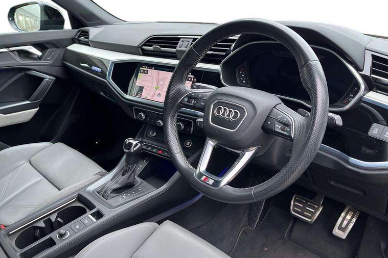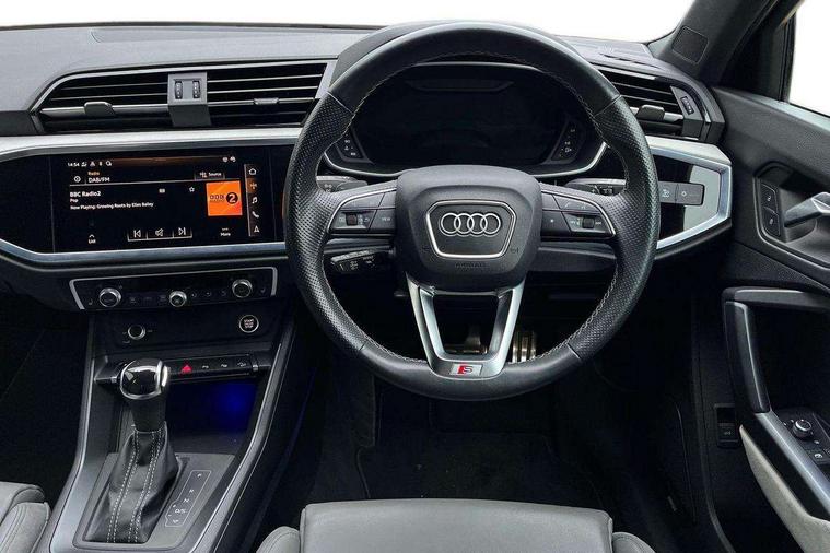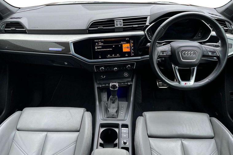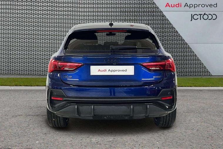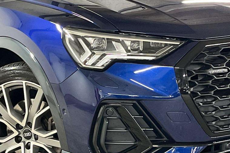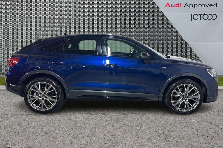 360 degree parking camera, Audi connect safety and service (e-call), Audi drive select, Audi lane departure warning, Audi phone box with wireless charging, Audi virtual cockpit plus, Bluetooth interface, Camera based traffic sign recognition, MMI Navigation Plus with high resolution 10.1 inch touchscreen colour display, Power operated tailgate, Progressive steering, Rear cross traffic assist, Service interval indicator, Smartphone interface includes wireless Apple carplay/Android Auto, Start stop system with recuperation, Voice control system with natural language interaction, Adaptive suspension with damping control, 2 USB-C ports with charge and data functions, DAB digital radio module, SONOS premium sound system, Acoustic windscreen, Audi Beam uses LEDs to project Vorsprung logo, Auto dimming door mirrors, Auto dimming frameless rear view mirror, Bumpers and underbody protection in contrasting manhattan grey paint finish, Diffuser grille in grained matt black, Diffuser trim in selenite silver, Electrically folding, adjustable and heated door mirrors with integrated LED side indicators and kerb view function for passenger side, Front and rear electric windows, Front fog lights, Front side air inlets in selenite silver, Headlight washers, High gloss black finish B and C pillars, LED daytime running lights, Matrix LED headlights with LED rear lights and dynamic front and rear indicator, Panoramic opening glass sunroof, Privacy glass dark tinted rear and rear-side windows (from B-pillar backwards), Rain and light sensors, Rear side wing doors, Rear underbody protection in matt black, Rear wiper, Third brake light, 12V socket in rear centre console, 3 seat bench in 2nd row, 4 way electric lumbar support for driver and front passenger, 40:20:40 folding with manual adjustment for 60:40 forwards/backwards position and backrest angle, Adjustable rear seat bench/backrest with centre armrest and cupholder, Black cloth headlining, Dual zone electronic climate control, Electrically adjustable front seats, Front and rear black floor mats with contrast stitching, Front and rear headrests, Front and rear roof module including reading lights, Front centre armrest, Glove compartment lighting, Heated front seats, Height and reach adjustable steering wheel, Illuminated door sill trims with S logo, ISOFIX child seat mounting for front passenger with airbag deactivation and outer rear seat including top tether attachment point for outer rear seats, Leather steering wheel in 3-spoke design with multifunction plus and shift paddles, Luggage compartment light, Perforated leather gearknob, Single front passenger seat, Stainless steel luggage compartment sill finisher, Stainless steel pedals, Black styling pack - Q3 Sportback Vorsprung, Driver Assistance Pack - Q3, Multi coloured extended ambient interior lighting pack - Q3, Non smoking pack - Q3, 3x3 point rear seatbelts, 6 airbags - Driver, front passenger, curtain and side windows, Audi pre-sense front with pedestrain and cyclist recognition, Electrically operated child locks on rear doors, Electromechanical parking brake, Electronic stabilisation control including ABS, ASR and EDL, Hill descent control, Hill hold assist, Pre sense basic, Seatbelt monitoring, Tyre pressure warning, Warning triangle and first aid kit, Advanced key, Anti theft alarm, Anti theft wheel bolts, Remote central locking, Black dashboard, Detail dashboard around MMI touch colour display in glass look, black with surround in aluminium look, Leatherette door armrest,