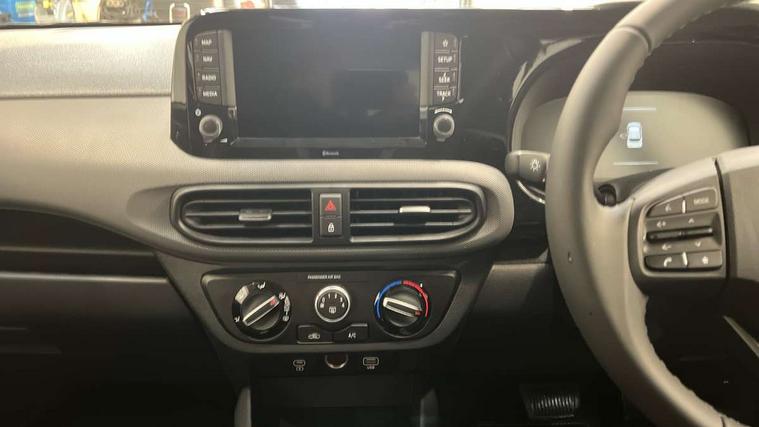 8" Touchscreen satellite navigation including mapcare and LIVE services, Apple car play/Android Auto, Bluelink mobile remote connectivity, Bluetooth connectivity with voice recognition, Cruise control, Driver attention alert system, eCall emergency call system, Forward Collision-Avoidance Assist (FCA) - Pedestrian/Cyclist, Full-width 4.2" LCD instrument cluster, Intelligent speed limit assist, Lane departure warning system with lane keep assist - LKAS, Lane follow assist, PAS, Rear parking sensors, Rear view camera with guidelines, Roadside assistance, Start/Stop function, Tailgate, Trip computer, 2 front/2 rear speakers, Front and rear USB-C ports, Front USB connection, Leading vehicle alert (LVA), Steering wheel audio, phone and cruise controls, 1 speed non intermittent rear windscreen wiper, Black finish on B pillars, Body colour door handles, Body coloured bumpers, Body coloured door mirrors, Electric front windows, Electric rear windows, Electrically adjustable and heated door mirrors, Flat metal emblem, Front grille in matte black, Front intermittent wipers, Halogen headlights, Headlights inner with Black Blade design, Heated rear window, High beam assist, Indicator light on door mirrors, LED daytime running lights, Rear roof spoiler with integrated LED brake light, Rear side wing doors, 12v power outlet - front, 3 seat bench in 2nd row, 60/40 split folding flat to floor rear seats, Auto light control, Bottle holders in front/rear doors + front centre console, Cabin and luggage compartment interior lighting, Cloth upholstery, Driver + passenger vanity mirrors, Driver's seat height adjustment, Driver/passenger sunvisors with ticket holders, Floor mats, Front door pockets, Front Head Restraints - Vertical and Horizontal Adjustment, Glove compartment, Height adjustable steering column, Isofix child seat preparation, Leather wrapped steering wheel and gear knob, Manual air conditioning, Rear door pockets, Single front passenger seat, Vertical adjustment rear head restraints, 3x3 point rear seatbelts, Airbags - front, front side and curtain airbags, Anti-lock brake system (ABS), Autonomous emergency braking (AEB) with forward collision warning system, Brake assist function, Childproof rear door locks, Electronic stability control, Front and rear seatbelt reminder, Front seatbelt pretensioners, Hill start assist control (HAC), Passenger airbag deactivate switch, Traction control, Tyre pressure monitoring system, Immobiliser, Perimeter alarm, Rear occupant alert, Remote central locking, Second remote key, Speed sensitive auto door locking, 15" Alloy wheels, Temporary mobility kit (TMK),
