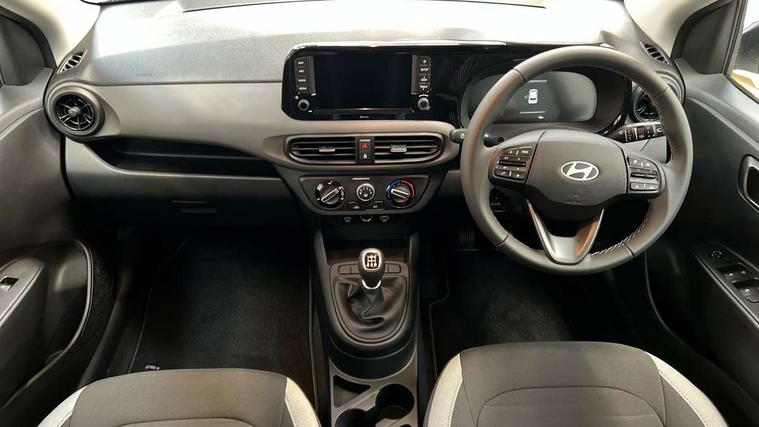8" Touchscreen satellite navigation including mapcare and LIVE services, Apple car play/Android Auto, Bluelink mobile remote connectivity, Bluetooth connectivity with voice recognition, Cruise control, Driver attention alert system, eCall emergency call system, Forward Collision-Avoidance Assist (FCA) - Pedestrian/Cyclist, Full-width 4.2" LCD instrument cluster, Intelligent speed limit assist, Lane departure warning system with lane keep assist - LKAS, Lane follow assist, PAS, Rear parking sensors, Rear view camera with guidelines, Roadside assistance, Start/Stop function, Tailgate, Trip computer, 2 front/2 rear speakers, Front and rear USB-C ports, Front USB connection, Leading vehicle alert (LVA), Steering wheel audio, phone and cruise controls, 1 speed non intermittent rear windscreen wiper, Black finish on B pillars, Body colour door handles, Body coloured bumpers, Body coloured door mirrors, Electric front windows, Electric rear windows, Electrically adjustable and heated door mirrors, Flat metal emblem, Front grille in matte black, Front intermittent wipers, Halogen headlights, Headlights inner with Black Blade design, Heated rear window, High beam assist, Indicator light on door mirrors, LED daytime running lights, Rear roof spoiler with integrated LED brake light, Rear side wing doors, 12v power outlet - front, 3 seat bench in 2nd row, 60/40 split folding flat to floor rear seats, Auto light control, Bottle holders in front/rear doors + front centre console, Cabin and luggage compartment interior lighting, Cloth upholstery, Driver + passenger vanity mirrors, Driver's seat height adjustment, Driver/passenger sunvisors with ticket holders, Floor mats, Front door pockets, Front Head Restraints - Vertical and Horizontal Adjustment, Glove compartment, Height adjustable steering column, Isofix child seat preparation, Leather wrapped steering wheel and gear knob, Manual air conditioning, Rear door pockets, Single front passenger seat, Vertical adjustment rear head restraints, 3x3 point rear seatbelts, Airbags - front, front side and curtain airbags, Anti-lock brake system (ABS), Autonomous emergency braking (AEB) with forward collision warning system, Brake assist function, Childproof rear door locks, Electronic stability control, Front and rear seatbelt reminder, Front seatbelt pretensioners, Hill start assist control (HAC), Passenger airbag deactivate switch, Traction control, Tyre pressure monitoring system, Immobiliser, Perimeter alarm, Rear occupant alert, Remote central locking, Second remote key, Speed sensitive auto door locking, 15" Alloy wheels, Temporary mobility kit (TMK),