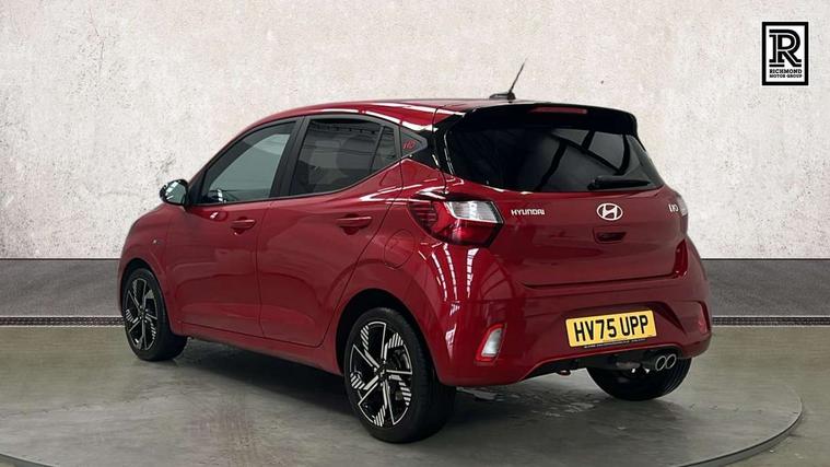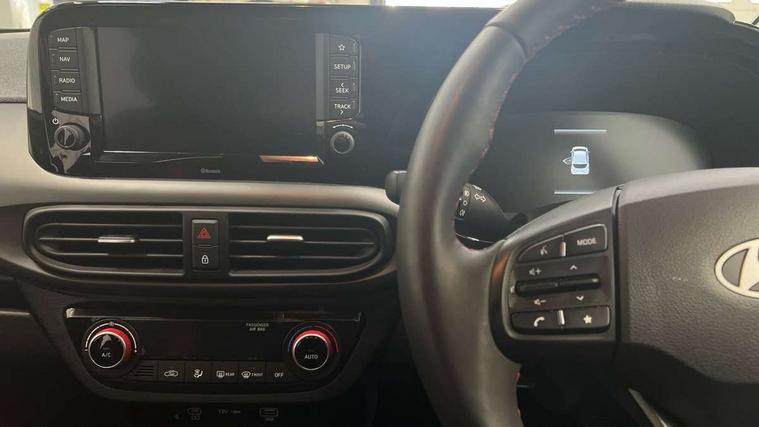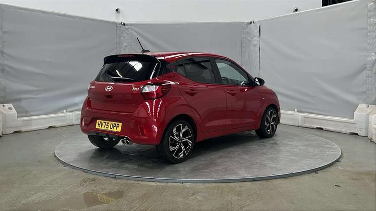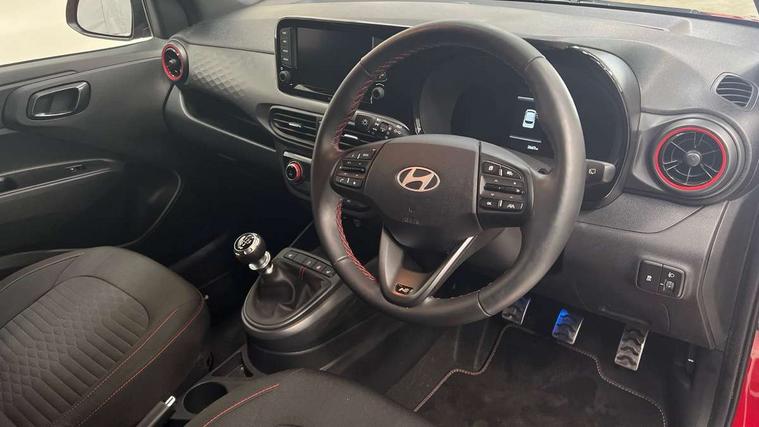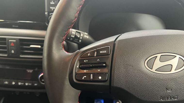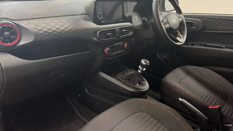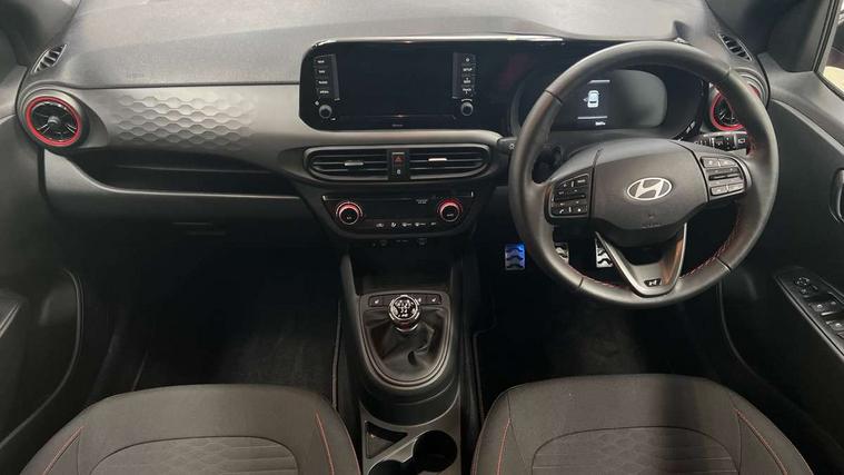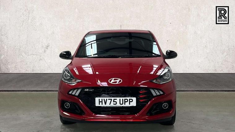 8" Touchscreen satellite navigation including mapcare and LIVE services, Apple car play/Android Auto, Bluelink mobile remote connectivity, Bluetooth connectivity with voice recognition, Cruise control, Driver attention alert system, eCall emergency call system, Forward Collision-Avoidance Assist (FCA) - Pedestrian/Cyclist, Full-width 4.2" LCD instrument cluster, Intelligent speed limit assist, Lane departure warning system with lane keep assist - LKAS, Lane follow assist, PAS, Rear parking sensors, Rear view camera with guidelines, Roadside assistance, Tailgate, Trip computer, Wireless charging pad, 2 front/2 rear speakers, Front and rear USB-C ports, Front USB connection, Leading vehicle alert (LVA), Steering wheel audio, phone and cruise controls, 1 speed non intermittent rear windscreen wiper, Black finish on B pillars, Body colour door handles, Body coloured bumpers, Electric folding door mirrors, Electric front windows, Electric rear windows, Electrically adjustable and heated door mirrors, Flat metal emblem, Front fog lights, Front intermittent wipers, Glossy black door mirrors, Halogen bi-function headlights, Headlights inner with Blade design, Heated rear window, High beam assist, Indicator light on door mirrors, LED daytime running lights, N Line Badging, N Line design front grille, Privacy glass for rear window, Rear LED combination lamps in H pattern, Rear roof spoiler with integrated LED brake light, Rear side wing doors, 12v power outlet - front, 3 seat bench in 2nd row, 60/40 split folding flat to floor rear seats, Air conditioning climate control, Auto light control, Bottle holders in front/rear doors + front centre console, Cabin and luggage compartment interior lighting, Cloth upholstery, Dashboard finisher in Dark Grey Metal with Flame Red air surrounds, Driver + passenger vanity mirrors, Driver's seat height adjustment, Driver/passenger sunvisors with ticket holders, Floor mats, Front door pockets, Front Head Restraints - Vertical and Horizontal Adjustment, Front LED blue mood lighting, Glove compartment, Heated front seats, Heated steering wheel, Height adjustable steering column, Isofix child seat preparation, Leather wrapped steering wheel and gear knob, N Line branded leather gear stick, N Line branded leather steering wheel, Rear door pockets, Single front passenger seat, Vertical adjustment rear head restraints, 13" Rear brake discs, 3x3 point rear seatbelts, Airbags - front, front side and curtain airbags, Anti-lock brake system (ABS), Autonomous emergency braking (AEB) with forward collision warning system, Brake assist function, Childproof rear door locks, Electronic stability control, Front and rear seatbelt reminder, Front seatbelt pretensioners, Hill start assist control (HAC), Passenger airbag deactivate switch, Traction control, Tyre pressure monitoring system, Immobiliser, Perimeter alarm, Rear occupant alert, Remote central locking, Second remote key, Smart key with keyless entry and engine start/stop button, Speed sensitive auto door locking, 16" alloy wheels, N logo centre caps, Temporary mobility kit (TMK),