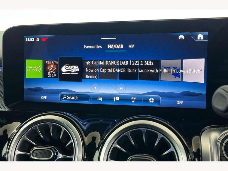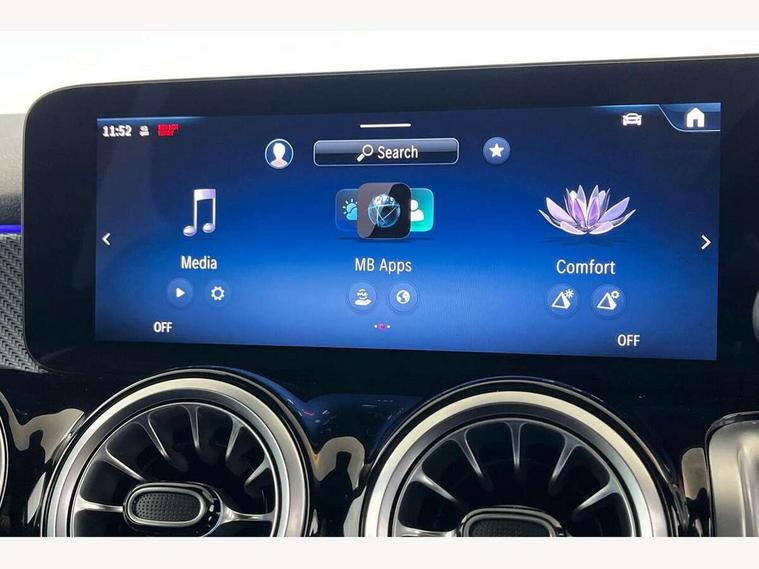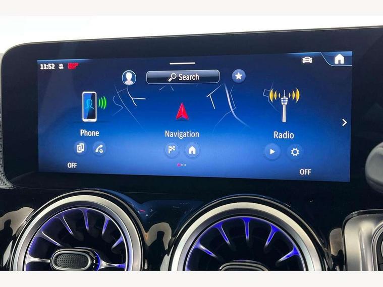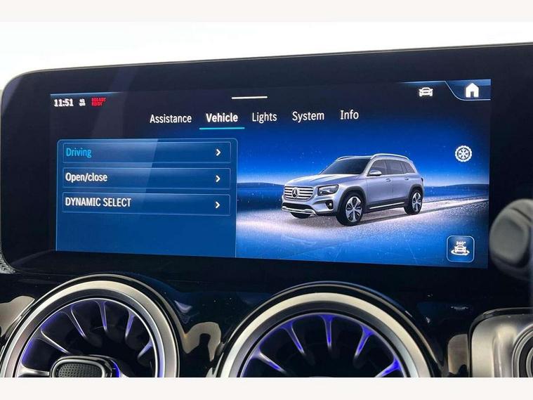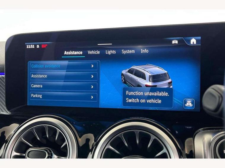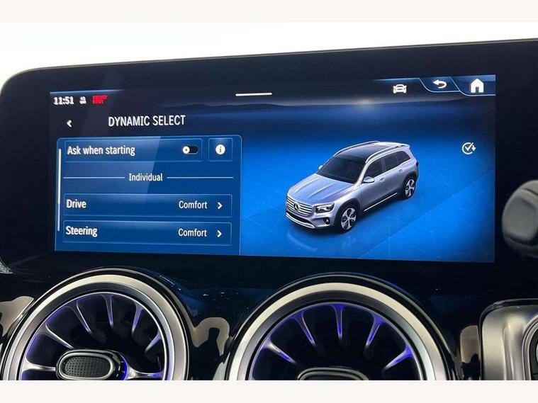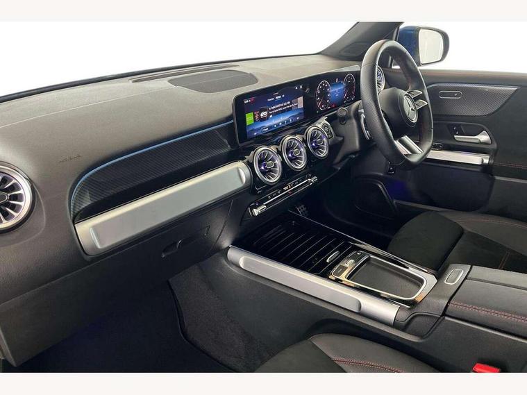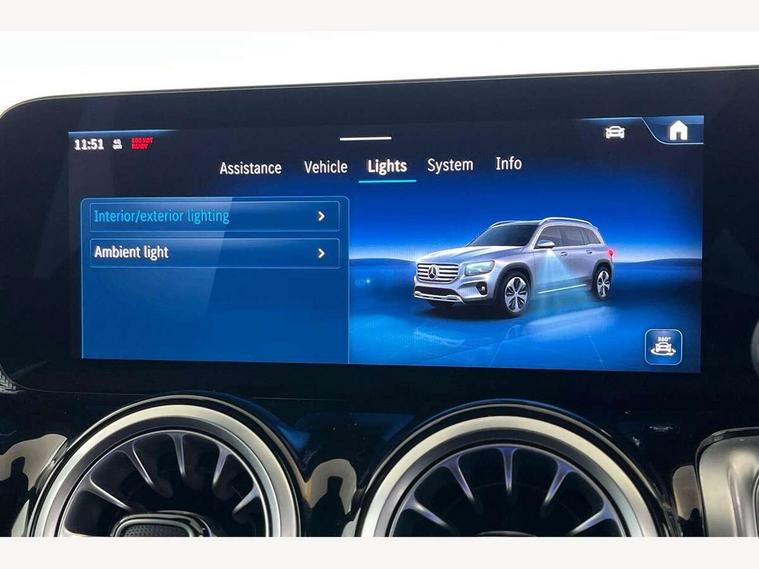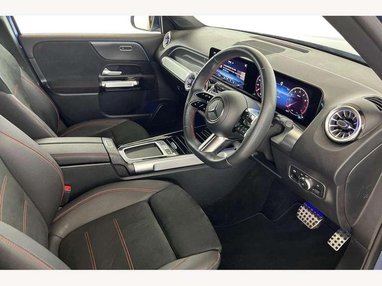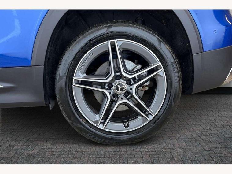 10.25 inch touchscreen central media display, 10.25" Digital instrument cluster display screen, Attention assist - Monitors steering behaviour and long journey fatigue, Blind spot assist, Bluetooth connection, Brake pad wear indicator warning light, Car wash mode, Direct steering, DYNAMIC SELECT with a choice of driving modes (ECO, Comfort, Sport and Individual), ECO start/stop function, Exit warning function, Fingerprint scanner, Fluid level warning indicator for fuel, oil, coolant and washer fluid, Hard disk navigation, Hey Mercedes Voice activation, Lamp failure indicator, Lane keep assist, MBUX navigation premium, Mercedes me connect including emergency call system, accident recovery, breakdown and maintenance management, Mercedes me remote services, Outside temperature gauge, Owners manual and service booklet in English, Pre-installation of private car share, Preinstallation for parking damage notification, Radio aerial integrated into front and rear windshields, Service indicator (ASSYST), Smartphone integration with Apple CarPlay and Android auto, Speed limit assist, Tailgate, Trip computer in multifunction display with current consumption indicator, Wireless charging, Comfort suspension with ride height lowering, Rear axle multi-link, DAB digital radio tuner, MBUX multimedia system, Mercedes Benz sound system (100 W) with 6 speakers, Pre installation for Mercedes Benz Link, Adaptive brake lights, Adaptive high beam assist, AMG front apron with front splitter in the colour of the vehicle with chrome trim element, AMG rear apron with visible tailpipe trim and chrome trim element, AMG specific/dual flow exhaust pipes in chrome (non-functional), Beltline trim and window line trim strip in high gloss aluminium, Black grained side sill trim with chrome inlay, Body coloured door handles, Electric adjustable and heated door mirrors with integrated LED side indicators, Front and rear electric windows, Headlamp assist automatic headlamp activation, Heat insulating dark tinted glass for rear side windows and rear window, Heated glass rear windscreen + timer control, High level LED third brake light, Interior mirror with black reading lamps and frameless, LED high performance headlamps with integrated LED daytime running lights, LED tail lamp, Polished aluminium roof rails, Radiator grille as a diamond grille with chrome pins and central Mercedes star, Rain sensor windscreen wipers with two sensitivity stages, Rear fog lamp, Rear side wing doors, Rear wiper, Single louvre in matt grey with chrome inserts and black highlights, Two visible tailpipe trim elements exhaust, Wheel arch liners in the colour of the vehicle, 3 seat bench in 2nd row, 3 twin spoke flattened multifunction steering wheel in nappa leather - horizontal twin spoke in high gloss black, vertical twin spoke in silver chrome, 4 way adjustable lumbar support, 40:20:40 split folding rear seats, Air vents with silver chrome surrounds, AMG floor mats, AMG sports pedals with brushed stainless steel surfaces and black rubber studs, Artico man-made leather/Microcut microfibre upholstery, Automatic child seat recognition sensor, Black roof lining, Fluorescent jacket, Front and rear headrests, Front centre armrest with stowage, Galvanised steering wheel gearshift paddles in silver chrome, Heated front seats, Height adjustable head restraints, Height/reach adjustable steering column, Interior lighting - 64 colour Ambient lighting, Luggage net on driver/front passenger seat backrest, Single front passenger seat, Sports seats, Stowage compartment in centre console with retractable cover and double cupholder and 12 V socket, Sun visors with illuminated vanity mirrors, THERMATIC automatic climate control, Third row of seats for two people on rear seat, Twin front cup holders, Two outer rear seat isofix and top tether child seat fixing points, Easy pack tailgate, Interior lighting with light and sight pack - GLB, KEYLESS-GO Comfort package - GLB, Mirror package - GLB, Parking Package with reversing camera - GLB, Seat comfort package - GLB, USB package plus - GLB, 3 rear 3 point seatbelts, Active bonnet pedestrain safety measure which detects an impact and raises bonnet by 65mm, Active brake assist includes forward collision warning system with autonomous braking, Adaptive brake assist with hold function and hill start assist, Airbags - kneebag for driver, Anti-lock braking system (ABS) with brake assist, Black seatbelts, Bonnet with power domes, Childproof locks manually operated for rear doors and electrically operated for rear power windows, Crash responsive emergency lighting, Curve dynamic assist, Driver and front passenger head and sidebags, Driver and front passenger windowbags, Dual stage driver and front passenger airbags, Electric parking brake, Electronic stability programme with acceleration skid control, Front and rear seatbelt reminder, Front brake callipers with Mercedes Benz lettering, Front passenger seat occupancy sensor, Perforated front brake discs, Tyre pressure monitoring system, Warning triangle and first aid kit, Guard 360 degree vehicle protection - Anti theft alarm system, tow away protection with visual, acoustic warning and alarm, Interior monitoring system, KEYLESS-GO starting function, Remote central locking and crash sensor with emergency opening function, Thatcham category 1 alarm system with immobiliser and interior protection, Carbon structure trim, 19" AMG 5 twin spoke light alloy wheels aerodynamically optimised, painted in high-gloss black and with a high-sheen finish RTG, Summer tyres, Tirefit tyre sealant kit,