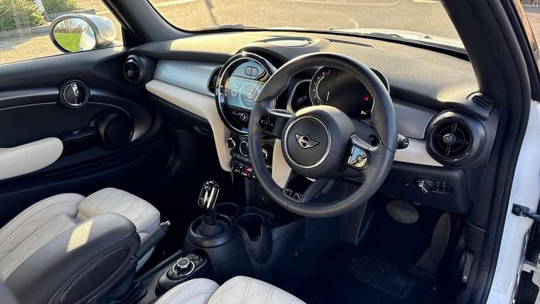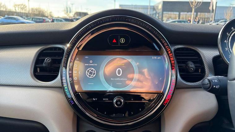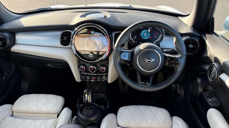 Apple CarPlay, Automatic start/stop function with brake energy recuperation, Compatible mobile phone bluetooth with audio streaming, Cruise control with brake assist, Electro-mechanical speed dependant steering assistance, Flexible car sharing preparation, Instrument cluster, MINI Driving Modes - centre toggle switch to control driving setting (sport, mid and green), Mini E-call, MINI TeleServices, On board computer, Rear park distance control, Service interval indicator, Double Vanos system, Fully variable valve control, High precision injection, Performance Control, Steptronic transmission with double clutch, 8.8" touchscreen with LED ring, FM tuner and DAB digital radio, 3rd brake light, Automatic headlight activation switch, Body colour fuel filler cap, Chrome line exterior - radiator grille bars, tailgate handle, lower front grille grating and rear central fog-light, Dynamic brake lights, Electric front windows, Heated rear window, Heated windscreen washer jets, LED headlight with closed ring and daytime driving lights, Metal door sill strips with MINI imprint, Model logo Cooper on right of tailgate, Rain sensor window wipers, Rear fog lights, Rear LED lights with union jack design, Rear window wiper, Side scuttle panel with integrated indicator, Sun/heat protection glass, White indicator lenses, 12V Accessory socket in centre console, 2 seat bench in 2nd row, 4 lashing eyes in luggage compartment, 60/40 split folding rear seat, Carbon black colour line - Knee roll and door armrest, Chrome interior highlights, Chrome line interior - air vents, gear lever base, door handles and speakers in doors, Cupholders, Front and rear head restraints, Front and rear isofix with front passenger airbag deactivation, Front floor mats in velour, Glove compartment, Height and length steering column adjustment, Interior lighting with 12 different colours across the dashboard, underneath door bezel with illuminated laser-engraved design on central display, Leatherette gearshift lever and handbrake gaiters, LED reading lights, vanity mirror lights, front foot well light and spotlight on front seats, Manual air conditioning, Mechanical seat adjustment - forward/back & backrest for front seats and driver seat height adjust, MINI yours badge on exterior pillar, Multifunction steering wheel, Passenger seat height adjuster, Satellite grey headlining including grab handles and clothes hooks, Single front passenger seat, Storage compartments in doors, Sunvisors with vanity mirrors, Walknappa leather steering wheel with grey seam and MINI Yours badge on Piano Black lower steering wheel spoke, 3 point seatbelts on all four seats, 6 Airbags - front, side, head and seat belt tensioners, Anti-lock braking system (ABS), DSC - Dynamic Stability Control, Front and rear disc brakes, Single tone fanfare horn, Tyre pressure monitoring system, Alarm system with tilt sensor, monitoring doors, bonnet interior and tailgate, Electronic vehicle immobiliser, Start/stop toggle with keyless go, Tool kit,