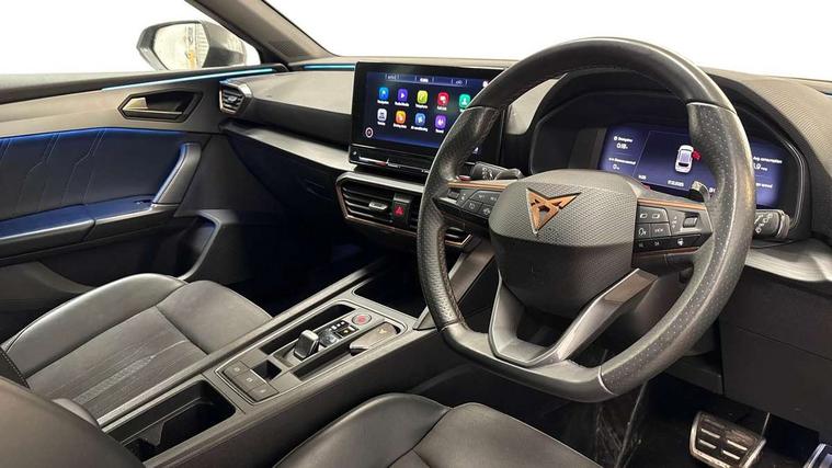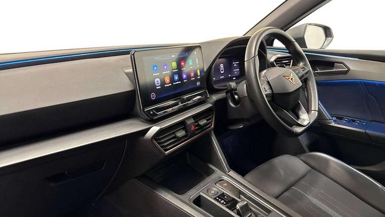 CUPRA drive profile selection with 4 modes (Comfort/Cupra/Sport/Individual), throttle response and gearshift mode, Digital cockpit, Front assist with forward collision warning braking reaction to vehicles, pedestrians and cyclists, Full link smartphone integration with Mirror Link, wireless Apple CarPlay and wired Google Android Auto, Lane assist, Lockable tailgate, Park assist (inc front/rear parking sensors), Rear view camera, RPM, trip computer, outside temp gauge, instrument light brightness, low fuel warning light, lights on reminder, gearshift indicator, Service interval indicator, Start/stop system with regenerative braking, Standard suspension, XDS electronic differential lock and dynamic traction support, 7 speakers, Auxiliary input socket, Auto dimming rear view mirror, Body colour door handles, Body coloured bumpers, Cupra sports bumpers, Dark tinted rear windows, Electric front/rear windows, Electrically adjustable, heated and folding door mirrors, LED front fog lamps with cornering function, LED headlights and tail lights with dynamic turn signals, welcome light silhouette from exterior mirrors and dynamic headlight range control, LED rear fog lamp, Rain sensing wipers, Rear coast to coast lighting, Rear diffuser with splitter and oval quad exhaust pipes, Rear wash/wipe, Separate daytime running light with automatic headlight control and coming home feature, 12v power supply in centre console, 5 headrests, 60/40 split rear bench seat with armrest, Ambient lighting (glovebox, footwell, ambient lighting multicoloured), Black headlining, CUPRA Leather flat bottomed, heated, perforated steering and gearshift paddles, Cupra sports pedals, Driver/passenger manual seat height adjustment, Dust/pollen filter, Folding boot cover, Four x USB Type C ports, Front and rear reading lights X 4, Front centre armrest, Front seats manual lumbar adjustment, Height/reach adjust steering wheel, Illuminated interior front door sills, Interior wraparound lighting, ISOFIX points in outer rear seats with top tether anchorage points, Jack and tool kit, Luggage tie-down hooks, PVC/Cloth upholstery with copper stitching + Cupra embossed logo on headrest, Sports bucket seats, Storage pockets on rear of front seats, Sunvisors with illuminated mirror, Three zone climate control, Dynamic and comfort pack - Leon Cupra, Media system plus with navigation pack - Leon Cupra, 3 point seatbelts on all rear seats, ABS, Brake control system - ESC and brake booster, Child proof door locks, Cupra black brake calipers, Driver and front passenger airbags with front passenger airbag de-activation, front side and curtain airbags, Electronic parking brake, Extended safety system - seat belt tensioner, window closure and hazard lights, Hill hold control, Rear disc brakes, Seat belt reminder for front and rear seats, Tiredness recognition system, Tyre pressure monitoring system, Anti theft alarm system with interior monitoring in cab, backup horn and towing protection, KESSY Advanced - Keyless start, keyless entry, Locking wheel bolts, Chrome and copper interior detailing, 19" Machined black and silver alloy wheels with 91Y tyres, Space saver spare wheel,