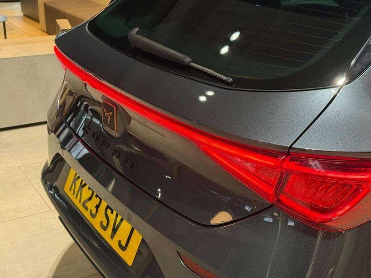 CUPRA drive profile selection with 4 modes (Comfort/Cupra/Sport/Individual), throttle response and gearshift mode, Digital cockpit, E-call, Electro mechanical speed sensitive power steering, Front assist with forward collision warning braking reaction to vehicles, pedestrians and cyclists, Full link smartphone integration with Mirror Link, wireless Apple CarPlay and wired Google Android Auto, Lane assist, Lockable tailgate, Park assist (inc front/rear parking sensors), Rear view camera, RPM, trip computer, outside temp gauge, instrument light brightness, low fuel warning light, lights on reminder, gearshift indicator, Service interval indicator, Start/stop system with regenerative braking, Sports suspension, XDS electronic differential lock and dynamic traction support, 7 speakers, Auxiliary input socket, Auto dimming rear view mirror, Body colour door handles, Body coloured bumpers, Cupra sports bumpers, Dark tinted rear windows, Electric front/rear windows, Electrically adjustable, heated and folding door mirrors, LED front fog lamps with cornering function, LED headlights with dynamic turn signals, tail lights, rear fog lights with rear coast to coast lighting, Rain sensing wipers, Rear diffuser with twin exhaust pipe on each side, Rear side wing doors, Rear wash/wipe, Separate daytime running light with automatic headlight control and coming home feature, Third brake light, 12v power supply in centre console, 3 seat bench in 2nd row, 5 headrests, 60/40 split rear bench seat with armrest, Ambient lighting (glovebox, footwell, ambient lighting multicoloured), Black headlining, CUPRA Leather flat bottomed, heated, perforated steering and gearshift paddles, Cupra sports pedals, Driver/passenger manual seat height adjustment, Dust/pollen filter, Folding boot cover, Four x USB Type C ports, Front and rear reading lights X 4, Front centre armrest, Front seats manual lumbar adjustment, Height/reach adjust steering wheel, Illuminated interior front door sills, Interior wraparound lighting, ISOFIX points in outer rear seats with top tether anchorage points, Jack and tool kit, Luggage tie-down hooks, PVC/Cloth upholstery with copper stitching + Cupra embossed logo on headrest, Single front passenger seat, Sports bucket seats, Storage pockets on rear of front seats, Sunvisors with illuminated mirror, Three zone climate control, Media system plus with navigation pack - Leon Cupra, 3 point seatbelts on all rear seats, ABS, Brake control system - ESC and brake booster, Child proof door locks, Cupra black brake calipers, Driver and front passenger airbags with front passenger airbag de-activation, front side and curtain airbags, Electronic parking brake, Extended safety system - seat belt tensioner, window closure and hazard lights, Hill hold control, Rear disc brakes, Seat belt reminder for front and rear seats, Tiredness recognition system, Tyre pressure monitoring system, Anti theft alarm system with interior monitoring in cab, backup horn and towing protection, KESSY Advanced - Keyless start, keyless entry, Locking wheel bolts, Chrome and copper interior detailing, 18" Machined sport black and silver alloy wheels with 92Y tyres, Space saver spare wheel,