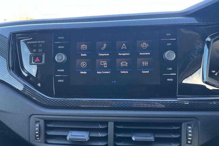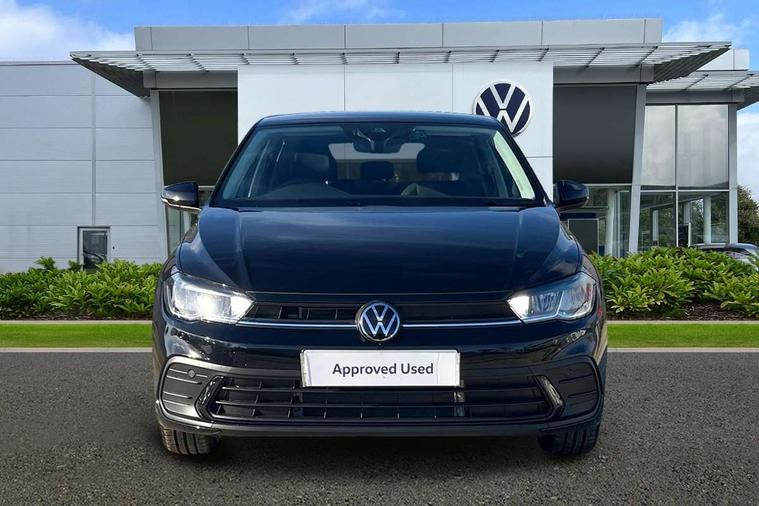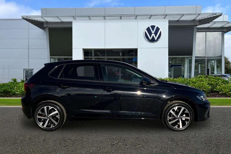 Advanced driver attention and drowsiness monitor, Bluetooth mobile phone interface, Dynamic road sign display, Emergency call service, Mobile phone preparation with inductive charging function, Multifunction front facing camera for distance control, Power assisted speed sensitive steering, Predictive adaptive cruise control without follow-to-stop and speed limiter, Preparation for navigation system with media and internet package, Preparation for We connect and We connect plus, Rear view camera, Speedo and rev counter, electronic odometer, trip, service interval display and exterior temperature gauge, Standard rear axle, Travel Assist - Lane keeping system and traffic jam assist, Travel assist including emergency assist, Trip computer, Warning signal and warning light for front and rear seatbelts not fastened, Washer fluid level indicator, Wireless app connect, Front wheel drive, Rear shock absorpion, Start-stop system with battery regeneration (recuperation - energy recovery during braking), DAB Digital radio, Diversity antenna for FM reception, Automatic dimming interior rear view mirror, Automatic headlight control with LED separate daytime running lights with coming/leaving home function, Body colour bumpers with chrome inserts, Body colour door handles, Body colour door mirrors, Electric front windows, Engine badge deletion, Headlight range adjustment, Heat insulating and laminated safety glass windshield, LED Headlights, LED rear combination lamps, Power folding adjustable/heated exterior mirrors and front passenger exterior mirror lowering function, Rain sensor, Rear electric windows, Rear fog light, Rear side wing doors, Rear tinted glass from B-pillar backwards approx 65% tinted, Rear windscreen washer and wiper with interval delay, Third brake light, 12V power socket in centre console, 2 front and 2 rear reading lights with switch off delay and dimmer, 2 USB-C ports in the front, 2 USB-C charging sockets on the center console in the rear, 3 rear head restraints, 60/40 split folding rear seat and rear seat bench not split, Carpet mats, front and rear, Ceramique roof lining, Chrome plated radiator grille inserts, air vent surrounds and light switch surrounds, Door and side trim panel, Driver and front passenger seat height adjustment, Driver/passenger sunvisors with illuminated vanity mirrors, Front centre armrest, Front seat backrest storage pockets, Front standard seats, Handbrake lever handle in leather, Hartley/Thomas cloth upholstery, Headliner in recycled material, Isofix child seat preparation easy-fit (for two outer rear seats, and front passenger seat) compatible with I-size, Leather trimmed gear knob, Luggage compartment cover, Luggage compartment lighting, Removable luggage compartment floor, Single front passenger seat, Standard climatic zones, Standard pedal cluster, Three spoke leather wrapped multifunction steering wheel with shifting paddles, Light and vision pack - Polo, 3 point height adj front seatbelts + pretensioners, 3 point seat belt for centre rear seat, 3 point seatbelts, outer rear with ECE lable, ABS, Driver and front passenger airbag with front passenger airbag deactivation, Drivers and front passengers safety optimised head restraints, ESC (Electronic stability control) + EDL (Electronic Differntial lock) and ASR (Traction control), Extended and predictive pedestrian/ cyclist protection, Front assist with autonomous emergency braking (for Adaptive Cruise Control ACC up to 130 mph), Front curtain and side airbags with center airbag, Front disc brakes, Hill hold control, Manual child lock in rear doors, Rear drum brakes, Single tone horn, Tyre pressure loss indicator, Alarm with interior protection, Anti-theft alarm system with interior monitoring, backup horn, and towing protection, Anti-theft wheel bolts, Electronic engine immobiliser, Lava stone black gloss/matt decorative inserts in dash and front door panels, 16" Torsby alloy wheels, Low rolling resistance tyres,
