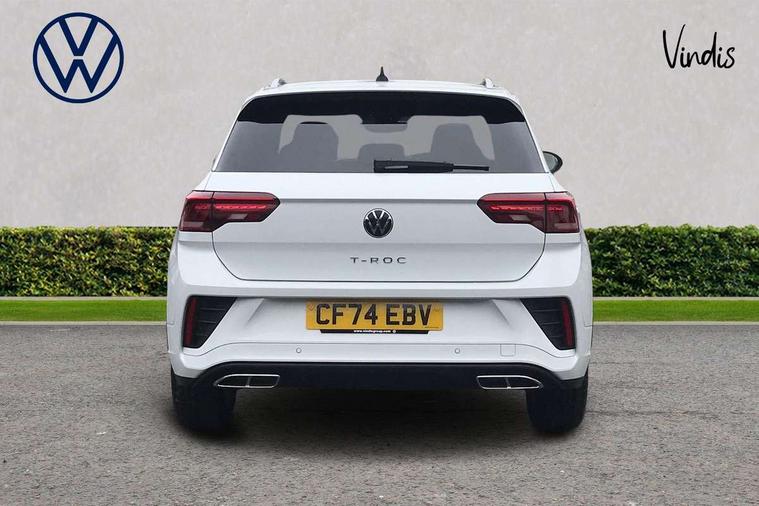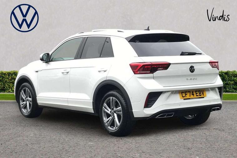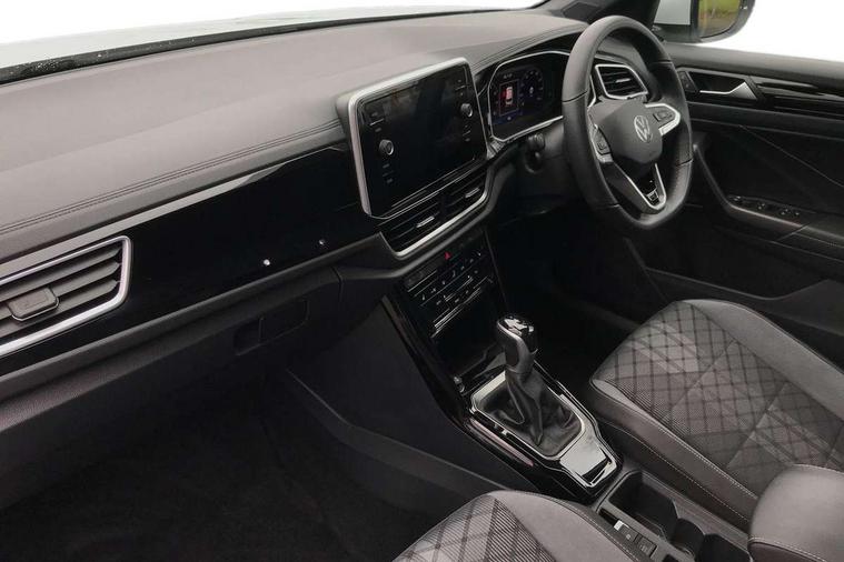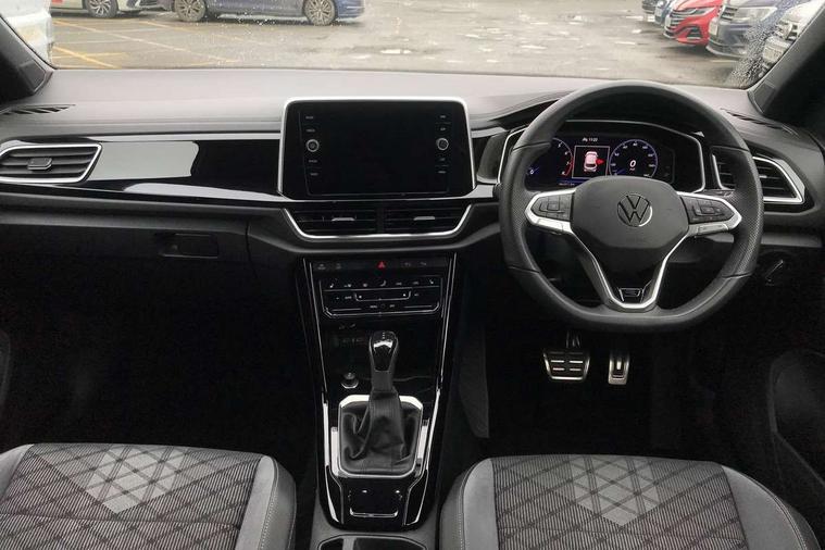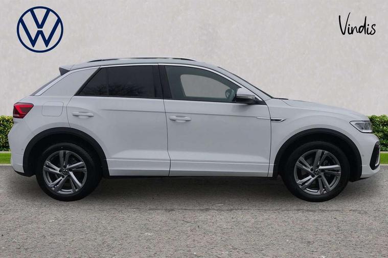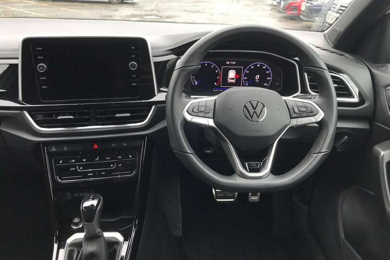 10.25" Digital cockpit pro, Advanced driver attention and drowsiness monitor, Emergency call service, Lane keeping system Lane Assist, Mobile phone interface, Modified key software - reduce switch off time for key status change to Long no motion, Online services, Park assist including front and rear parking sensors, Service interval indicator, Tailgate/trunk lid release from outside, Think blue trainer driver tips and journey analysis, Warning sound and light for front seatbelts unfastened, Wireless app connect, Battery regeneration during braking, Start/stop function with battery regeneration, DAB Digital radio, Diversity antenna for FM reception, Front and rear 6 speakers, Music playback - MP3, WMA and AAC files, Premium USB cable in choice of either Apple or Android smartphone compatibility, SD card slot, Simultaneous pairing of 2 compatible mobile devices, Title and cover art display, We Connect and We Connect Plus functionality, Auto dimming interior rear view mirror, Automatic hazard lights activation under emergency braking, Automatic headlight control with LED separate daytime running lights with coming/leaving home function, Body coloured exterior mirror housings and door handles, Electrically adjustable and heated door mirrors, Extended roof spoiler, Exterior mirrors aspherical on driver side, convex on front passenger side, External USB type C socket and charging sockets, Front windscreen wiper with intermittent wipe and 4 position delay, Heated rear window, LED 3rd brake light, LED rear combination lamps, LED rear number plate lights, Power windows with comfort operation and circuit breaker, Privacy glass for rear side windows and rear window, R-Line design body coloured bumpers, Rain sensor, Rear exhaust tailpipe, Rear fog light on one side and reversing lights on both sides, Rear side wing doors, Rear wash/wipe with intermittent wipe setting, Remote electrically foldable door mirrors, puddle lights and reverse activated passenger's door mirror, 12V power socket in centre console, 3 rear head restraints, 3 seat bench in 2nd row, 4 load lashing points in luggage compartment, Air care climatronic air conditoning system with active combination filter and 2-zone temperature control, Black roof lining, Chrome plated decorative trims, Chrome plated radiator grille inserts, air vent surrounds and light switch surrounds, Door and side trim panel with leatherette insert, Front + rear carpet mats, Front centre armrest, Front cupholders x 2, Front footwell illumination, Front reading light, Front scuff plates with R Line logo, Front seat back storage pockets, Glove compartment door with light, Instrument lighting, white adjustable panel illumination, Interior ambient lighting and surround lighting, Interior light delay, Isofix child seat preparation, Leather gearshift handle, Load-through provision with cup holder when folded down ('Unsplit rear seat bench, split folding backrest, with centre armrest), Luggage compartment lighting, Single front passenger seat, Stainless steel pedals, Storage compartment in left and right luggage area, Storage compartment in rear doors, Storage compartments in driver and front passenger doors, Sunvisors with illuminated vanity mirrors, Variable boot floor, height adjustable and removable, Driver assistance pack without proactive passenger protection - T-Roc, 3 point height adj front seatbelts + pretensioners, 3 point seatbelts in outer rear with ECE label, ABS, Child locks on rear doors, City emergency braking and pedestrian monitoring, Driver and front passenger airbag with front passenger airbag deactivation, Driver and front passenger safety-optimised head restraints, Drivers seatbelt reminder, Electronic parking brake, Electronic Stability Control (ESC) inc EDL (Electronic Differential Lock) and ASR (Traction Control), Front and rear passengers curtain airbag system including front side airbags, Hill start assist, Predictive pedestrian protection, Rear disc brakes, Two tone horn, Tyre pressure loss indicator, Volkswagen roadside assistance, Piano black decorative inserts in dashboard and front door trim panels, Trims for alloy wheels,