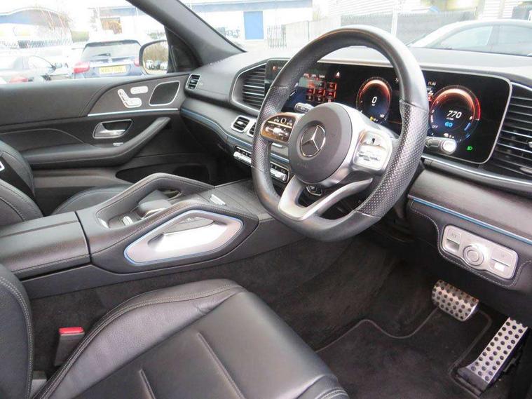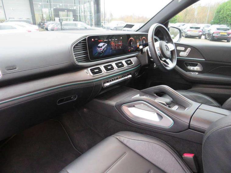 12.3 High resolution wide screen cockpit display with choice of three display styles Classic, Progressive or Sport and unique ambient lighting setting, Attention assist, Blind spot assist, Brake wear warning display, Cruise control with variable speed limiter, Direct steer speed sensitive steering, DYNAMIC SELECT with a choice of driving modes (ECO, Comfort, Sport and Individual), Easy-pack tailgate - Powered opening/closing automatically, ECO start/stop function, Geofencing, Hard-disk navigation, Hey Mercedes Voice activation, High resolution 12.3" multimedia colour display, Lane keeping assistant (LKA), Mercedes me connect including emergency call system, accident recovery, breakdown and maintenance management, Outside temperature display, Remote boot release, Reversing camera, Service indicator (ASSYST), Smartphone integration, Speed limit assist, Status display for rear seat belts in instrument cluster, Traffic Sign Assist, Traffic sign recognition including wrong way warning function and display of posted speed limits in the instrument cluster, Trip computer in multifunction display showing current fuel consumption, 3.7 kW monophase on board charger, 85 litre fuel tank, 9G TRONIC 9 speed automatic transmission, Diesel particulate filter (DPF), Incorrect fuelling protection, Lowered comfort suspension with steel springs and selective adaptive dampening with lowering by up to -15mm, Plug-in Hybrid specifics with 7.4kW AC, 60kW DC charging, Household and public charging cables, Acoustic ambient protection, Pre-entry climate control, Additional USB connection, DAB Digital radio, Dual bluetooth interface, 2 USB ports (type C), MBUX multimedia system, Adaptive brake lights, Adaptive high beam assist, Aerial for GPS, Aluminium look, illuminated running boards with rubber studs, AMG bodystyling front and rear aprons and side skirts in polished aluminium, Body colour door mirrors, Body coloured bumpers, Electric windows with one touch opening/closing and obstruction sensors, Exterior mirrors heated and electronically adjustable, Front green tinted glass, LED high performance headlamps, LED rear lights, Privacy glass - heat insulating dark tinted glass, Radiator grille with integrated star and single louvre in matt iridium silver with chrome trim, Radio aerial integrated into rear window, Rain sensing windscreen wipers, Rear wiper, Roof rail system, Top surround of side windows in polished aluminium, Visible twin pipe exhaust system integrated into bumper, Waistline in polished aluminium, 3 spoke AMG multifunction steering wheel with touch control buttons, trimmed in black nappa leather with flattened bottom section, 4 way adjustable front head restraints and 2 way rear head restraints, 4 way lumbar support, 40:20:40 split folding rear seats, AMG brushed stainless steel sports pedals with rubber studs, AMG floor mats with AMG lettering, Artico man-made leather upper dashboard with contrast topstitching, Automatic child seat recognition sensor, Black roof liner, Central stowage compartment with 12 V socket in centre console, Chrome door pins, Courtesy lights in rear grab handles with reading light functionality, Electric height/reach adjustable steering column, Front centre armrest with stowage compartment and illuminated grab handles, Gearshift paddles on steering wheel, Glove compartment - lockable, air conditioned and illuminated, Heated front seats, Interior lighting - 64 colour Ambient lighting, Seat occupancy sensor for front passenger seat, Second row three seats, Sports steering wheel, Sunvisors with illuminated vanity mirrors, Touchpad, Two zone automatic climate control, Anti theft Protection package - GLE, Memory package - GLE, Mirror package - GLE, Parking package - GLE, Active bonnet, Active braking assist, Adaptive brake system with HOLD function and brake drying in the wet, Airbags - driver and front passenger, with extended adaptivity for front passenger airbag, Airbags - sidebag for driver and front passenger with combined thorax/pelvis bag, Airbags - windowbags, Anti-lock braking system (ABS), Childproof locks manually operated for rear doors and electrically operated for rear power windows, Drivers knee airbag, Electronic parking brake, Electronic Stability Programme (ESP), ISOFIX child seat attachment points two outer rear seats, Perforated front brake discs and brake calipers with Mercedes-Benz lettering, Pre-Safe anticipatory safety system, Three point rear seat belts, Tyre pressure monitoring system and loss warning system, Warning triangle and first aid kit, Alarm system/interior protection/immobiliser, Central locking with interior switch, automatic locking and crash sensor with emergency opening function, Chrome surround in electric key, Keyless Go starting function, Dashboard and door, anthracite open pore oak wood trim, Trim - Centre console, anthracite open pore oak wood trim, 20" AMG 5 twin spoke light alloy wheels, Summer tyres with noise reducing absorber, TIREFIT with tyre inflation compressor,