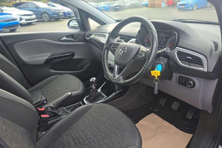 Apple car play/Android Auto, Bluetooth system, Cruise control + speed limiter, Exterior temperature gauge, Front and rear parking sensors, Lights on warning, Low fuel level warning light, Multi function display, Multi function trip computer, Rev counter, Service indicator, Speed sensitive power steering, Speed warning indicator, 6 speakers, Bluetooth audio streaming, DAB digital radio module, USB connection, Body colour bumpers, Body colour door handles, Body coloured door mirrors, Chrome effect window surrounds, Chrome front grille, Coming home function, Electric adjustable door mirrors, Electric front windows/one touch facility, Fog lights with chrome surround, Headlamp levelling, Heated door mirrors, Heated rear window, Heated windscreen, Laminated windscreen, LED daytime running lights, Rear wiper, Two speed windscreen wipers, 12V power outlet, 2 height adjustable rear headrests, 60/40 split folding rear seat, Air recirculation system, Centre console with cupholders, Chrome gear knob, Chrome interior door handles, Cloth/morrocana upholstery, Delay courtesy light function, Driver/passenger reading lights, Driver/passenger sunvisors and vanity mirrors, Electric reach + rake adjustable steering column, Front door pockets, Front seat belt pre-tensioners with load limiters, Glovebox, Grab handles, Height adjustable driver's seat, Height adjustable front headrests, Illuminated luggage compartment, ISOFIX on outer rear seats, Load restraining lashing points, Luggage compartment cover, Morrocana cloth upholstery, Multi function steering wheel, Pollen filter, Rear door pockets, Rear reading lights, Reclining front seats, Seatback map pocket, Winter pack - Corsa, ABS + EBD + EBA, Brake assist function, Child proof door locks, Driver/passenger 2 stage auto adaptive airbags, ESP + traction control, Front and rear curtain airbags, Front and rear seatbelt reminder, Front seat side impact airbags, Height adjustable front seatbelts, Hill start assist, Manual passenger airbag deactivation function, Side impact protection beams, Three 3 point rear seatbelts, Tyre pressure monitoring system, Deadlocks, Immobiliser, Key left in ignition audible warning, Locking wheel bolts, Radio frequency remote central locking,