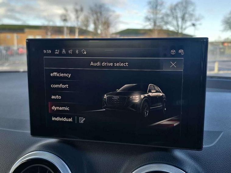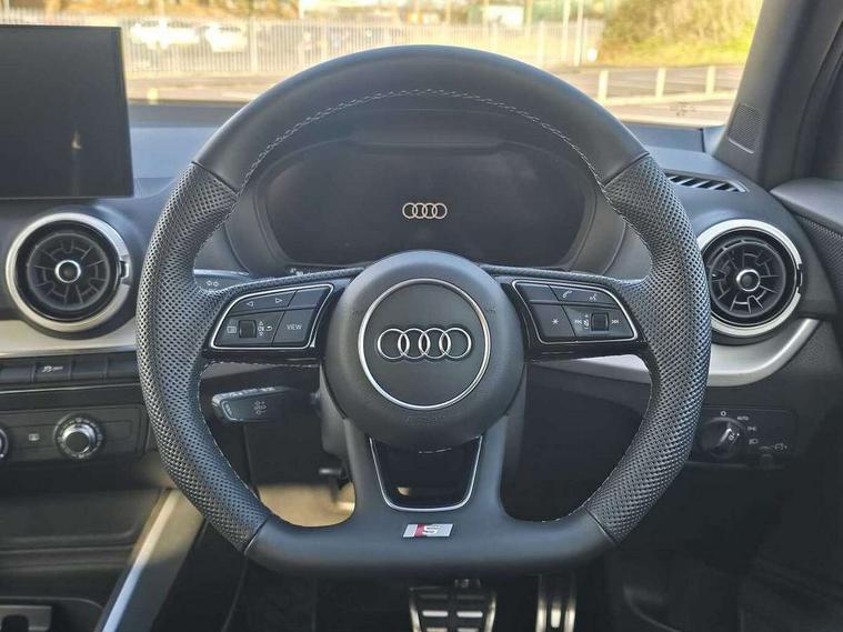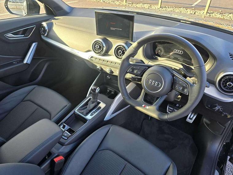 3D map display, Audi connect navigation and infotainment includes innovative services, Audi connect remote and control connects your vehicle to your smartphone, Audi drive select: S tronic - power steering assistance + engine + gearshift (modes: comfort, auto, dynamic, efficiency, individual), Audi smartphone interface - Apple carplay/Android Auto, USB connect, 2xSDXC card readers, voice control for navi, telephone, music and 3rd party apps, Audi virtual cockpit, Automatic start/stop system with recuperation, Bluetooth interface includes bluetooth audio streaming, Camera based traffic sign recognition, Cruise control, Distraction and Fatigue warning, E-call, Jukebox hard drive memory for music (10GB), Lane departure warning, MMI navigation plus with 8.8" touchscreen, Natural voice recognition, Power operated tailgate, Progressive steering, Rear parking sensors, Sport suspension, 6 passive loudspeakers, DAB Digital radio, USB type C port, Audi beam, Auto dimming rear view mirror, Black window trims, Bumper in full body colour paint finish, Electrically adjustable, folding, auto dimming and heated door mirrors with integrated LED side indicators, Front windscreen with grey tinted sunband, LED daytime running lights, LED headlights with dipped beam, high beam, position lights, indicators, LED rear lights, LED third brake light, Privacy glass - dark tinted rear and rear side windows from B-pillar backwards, Rear side wing doors, Rear wiper, Variable front intermittent wipers, Wheel arch trims in manhattan grey, 12V socket in front, 3 seat bench in 2nd row, 3 spoke flat bottomed multi-function leather sport steering wheel with gear shift paddles, 4-way electric lumbar support for front seats including manual seat height adjustment for both front seats, 60/40 split folding rear seat bench, Black carpets, Black cloth headlining, Front and rear head restraints, Front centre armrest, Front sport seats, Front/rear floor mats, Height/reach adjust steering wheel, Illuminated door sill trims with S logo, ISOFIX child seat mounting in front passenger and rear outer seats, Manual air conditioning, Single front passenger seat, Stainless steel pedals, Black styling pack - Q2, 3x3 point rear seatbelts, 6 airbags - Front, curtain and front side airbags, Electromechanical parking brake, Electronic stabilisation control including ABS, ASR and EDL, Front passenger airbag deactivation, Hill hold assist, Pre-sense front with pedestrian recognition, Seatbelt monitoring, Tyre pressure warning light with visual and acoustic warning, Warning triangle and first aid kit, Anti theft wheel bolts, Electronically operated child locks, Remote central door locking, Thatcham category 1 alarm, Aluminium interior element, Black dashboard, Gloss black centre console, Matt brushed aluminium trim inlays, Tool kit,