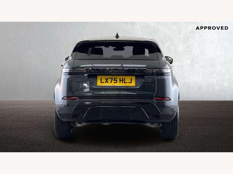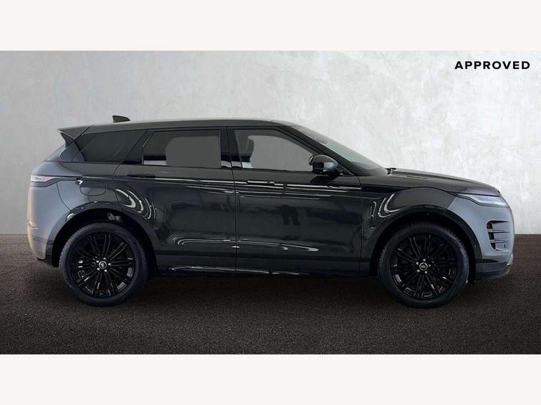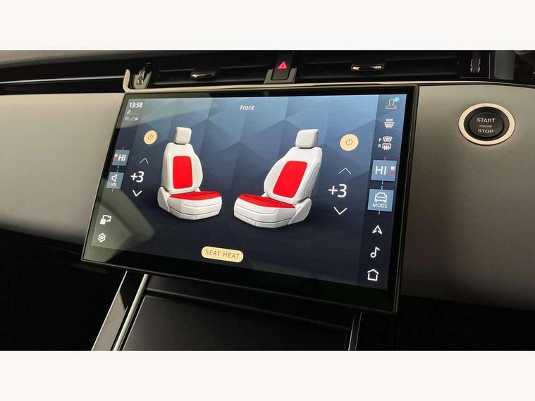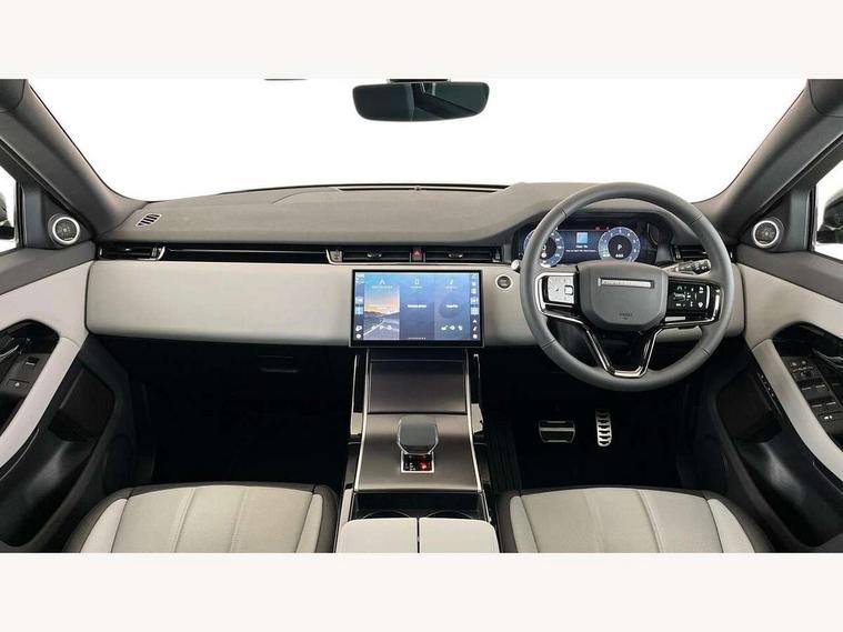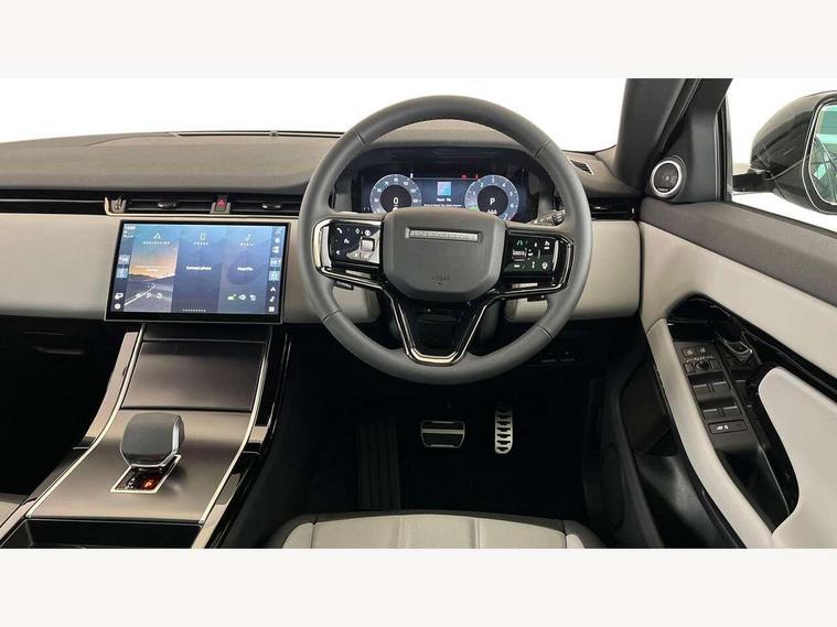 11.4" touch screen, 3D 360 degree surround camera with wade sensing, Adaptive cruise control, Android Auto, Apple car play, Blind spot assist, Bluetooth connectivity, Brake pad wear indicator warning light, Driver condition monitor, eCall emergency system, Eco mode, Electronic power assisted steering (EPAS), Front and rear parking sensors with auto brake, InControl remote, Interactive driver display, Land Rover InControl apps, Lane keep assist, Pivi pro connected includes diamond pivi variant, smart settings, connected navigation pro, nuance speech licence, Powered tailgate/boot lid, Rear collision monitor, Rear traffic monitor, Tailgate, Traffic sign recognition with adaptive speed limiter, Voice control system, Wireless device charging, All terrain progress control, Electric rear axle drive, Large fuel tank, Passive suspension, Public charging cable, Terrain Response 2, Digital Audio Broadcast radio-DAB, Steering wheel mounted controls, Acoustic laminated windscreen, Auto headlights, Auto high beam assist, Automatic headlight levelling, Electric windows with one touch open/close and anti trap, Flush deployable exterior door handles, Front and rear recovery eyes, Heated rear window with timer, Heated washer jets, Heated windscreen, LED headlights with signature DRL and LED tail Lights, Power fold, auto-dimming, heated door mirrors with approach lights and auto dimming driver side, Rain sensing windscreen wipers, Rear animated directional indicators, Rear fog lights, Rear side wing doors, Rear wiper, Tailgate spoiler, Third brake light, Winter wiper park position, 12 way driver memory and 10 way passenger electric front seats with 2 way manual headrest + 4 way lumbar support, 40:20:40 split folding rear seats with centre headrest and armrest, Bright metal pedals, Carpet mats, Chrome tread plates with range rover branding Includes stainless steel loadspace scuff plate with etched graphic, Customer configurable single point entry, Front and rear cupholders, Heated front seats, Heated steering wheel, Isofix system on outer rear seats, Manually adjustable steering column, Overhead lighting console, Overhead stowage for sunglasses, Passive front head restraints, Rear air vents, Rear head restraints, Satin chrome gearshift paddles, SE Grained leather upholstery, Single passenger seat, Standard steering wheel with Moonlight Bezel, Sunvisors with illuminated vanity mirrors, Twin sliding front centre armrest, Power socket pack 2 - Evoque, 3 rear 3 point seatbelts, Anti-lock braking system (ABS), Brake hold function, Customer configurable autolock, DSC - Dynamic Stability Control, Electronic brake force distribution, Electronic parking brake, Electronic traction control, Emergency braking, Front and rear seatbelt reminder, Hill descent control, Hill launch assist, Low traction launch, Occupant protection assist, Passenger seat occupant detector, Power operated child locks, Roll stability control, Six airbags - Driver and passenger airbags/driver knee airbag/front side airbag and curtain airbags, Torque vectoring brake, Tyre pressure monitoring system, Alarm, Immobiliser, Intrusion sensor, Keyless entry, Locking wheel nuts, All season tyres,