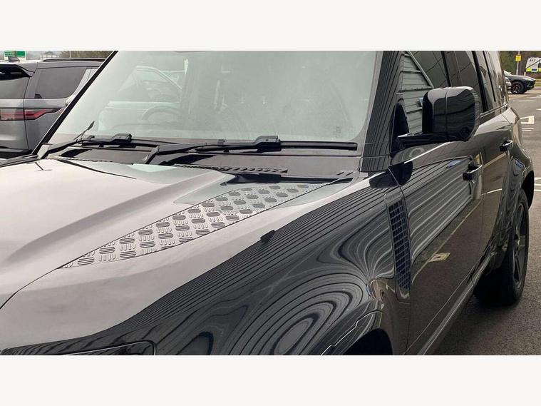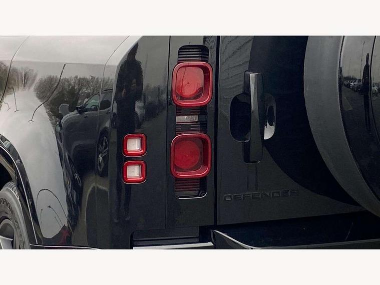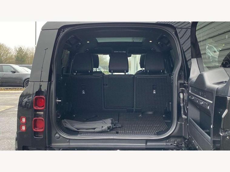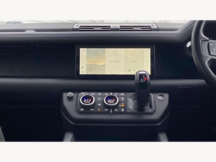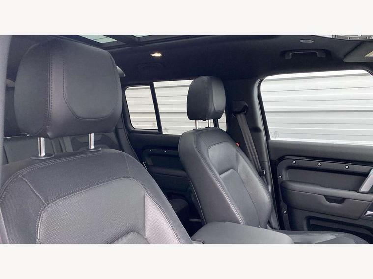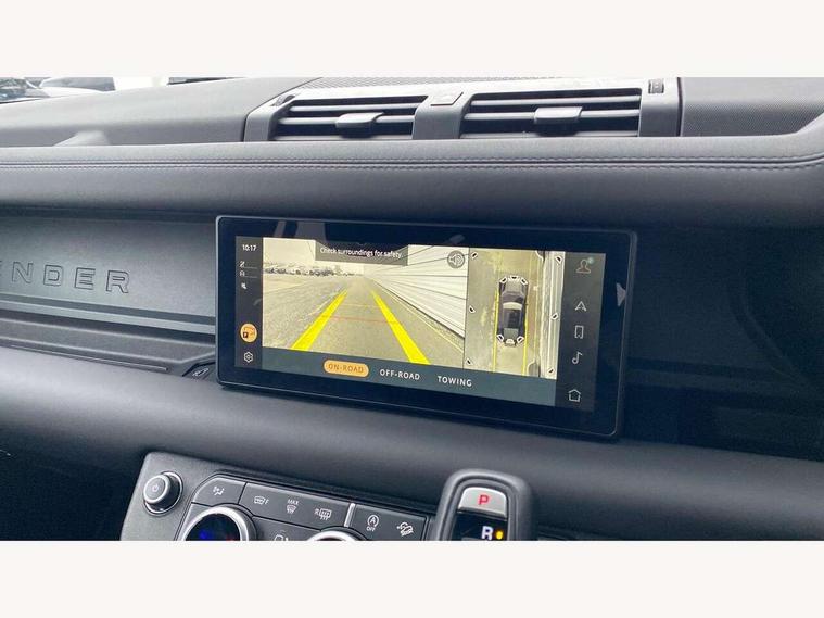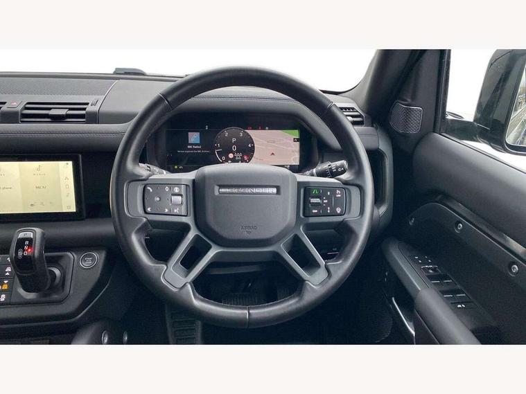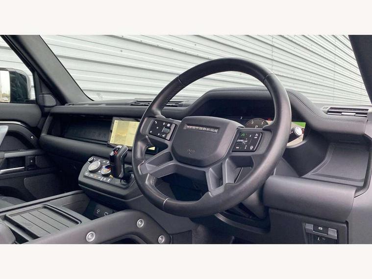 360 degree parking aid, 3D Surround Camera with 360 View, 180 Rear View, Front Traffic Detection, Forward Vehicle Guidance, Tow Hitch Assist and clear sight Ground View, Adaptive cruise control, Android Auto, Apple CarPlay, Assisted tailgate with soft close, Blind spot assist, Bluetooth system, Brake pad wear indicator, Clear exit monitor, Connected navigation pro, Driver condition monitor, Electric power assisted steering (EPAS), Interactive driver display, Lane keep assist, Push button start, Rear traffic monitor, Traffic sign recognition with adaptive speed limiter, Trip computer, Wade Sensing, 8 speed automatic transmission, Adaptive dynamics, All wheel drive system, Twin speed transfer box, DAB Radio (Digital Audio Broadcasting), Meridian 400w sound audio system with 11 speakers and subwoofer, Pivi pro connected, Automatic headlight levelling, Automatic headlights, Black exposed rear recovery eyes, Centre high mounted stop light, Electric heated/power fold door mirrors with approach lights and auto dimming driver side, Electric windows with one touch open/close and anti-trap, Follow me home lighting, Heated rear window with timer, Heated windscreen, LED tail lights, Privacy glass, Puddle lights, Rain sensing windscreen wipers, Rear fog lights, Rear side wing doors, Rear wiper, Side hinged tailgate, Trailer stability assist, X-Dynamic badge, 12V power socket in loadspace, 2 seat bench in 3rd row, 3 seat bench in 2nd row, Alpine lights, Configurable cabin lighting, Durable rubber cabin flooring, Durable rubber loadspace flooring, Footwell lights, Front passenger isofix child seat attachment, Loadspace cover, Loadspace Hook, Multifunction steering wheel, Overhead stowage for sunglasses, Premium cabin lighting, Rear headrests, Rear ISOFIX, Rear reading lights, Single front passenger seat, Storage glovebox, Sunvisors with illuminated vanity mirrors, Online pack with data plan - Defender, 7 three point seatbelts, ABS, Brake hold function, Cornering brake control (CBC), Customer configurable autolock, DSC - Dynamic Stability Control, EBD - Electronic brakeforce distribution, Electric parking brake (EPB), Emergency brake assist, Emergency braking, ESP + traction control, Front airbags with passenger seat occupant detector, HDC - Hill descent control, Hill launch assist, Low traction launch, Power operated child locks, Remote for (e-Call, Optimised assistance call, InControl app, Climate, beep and flash and door), RSC - Roll stability control, Seat belt reminder, TPMS (Tyre pressure monitoring system), Alarm, Immobiliser, Intrusion sensor, Keyless entry, Locking wheel nuts,
