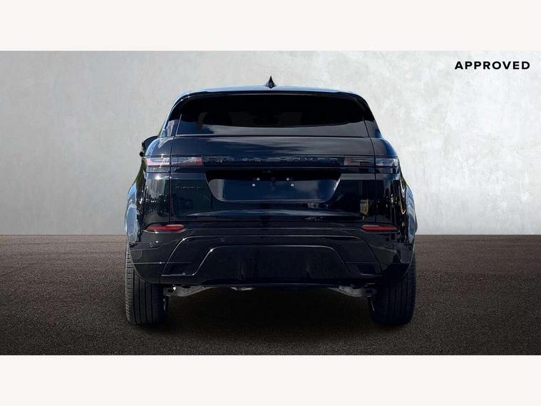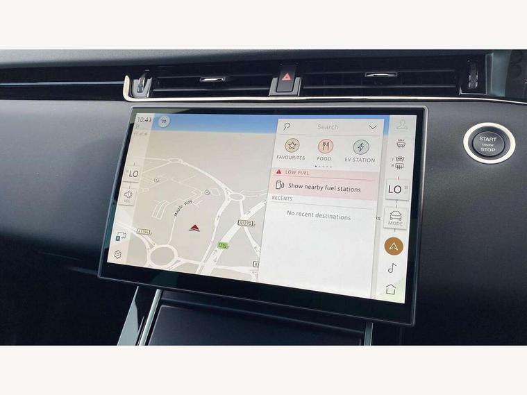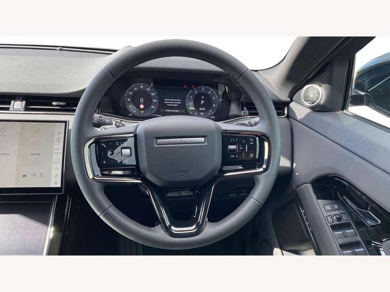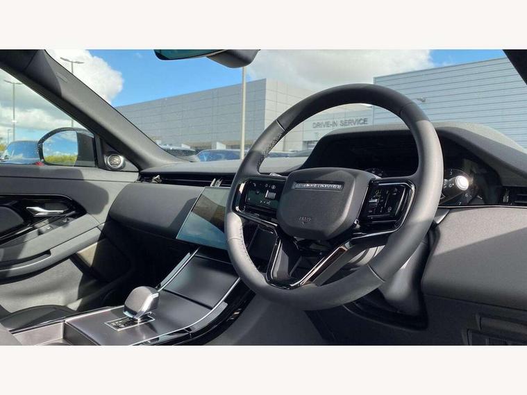 11.4" touch screen, 3D 360 degree surround camera with wade sensing, Adaptive cruise control, Android Auto, Apple car play, Blind spot assist, Bluetooth connectivity, Brake pad wear indicator warning light, Driver condition monitor, eCall emergency system, Eco mode, Electronic power assisted steering (EPAS), Front and rear parking sensors with auto brake, InControl remote, Interactive driver display, Land Rover InControl apps, Lane keep assist, Pivi pro connected includes diamond pivi variant, smart settings, connected navigation pro, nuance speech licence, Powered tailgate/boot lid, Rear collision monitor, Rear traffic monitor, Tailgate, Traffic sign recognition with adaptive speed limiter, Voice control system, Wireless device charging, All terrain progress control, Electric rear axle drive, Large fuel tank, Passive suspension, Public charging cable, Terrain Response 2, Digital Audio Broadcast radio-DAB, Steering wheel mounted controls, Acoustic laminated windscreen, Auto headlights, Auto high beam assist, Automatic headlight levelling, Electric windows with one touch open/close and anti trap, Flush deployable exterior door handles, Front and rear recovery eyes, Heated rear window with timer, Heated washer jets, Heated windscreen, LED headlights with signature DRL and LED tail Lights, Power fold, auto-dimming, heated door mirrors with approach lights and auto dimming driver side, Rain sensing windscreen wipers, Rear animated directional indicators, Rear fog lights, Rear side wing doors, Rear wiper, Tailgate spoiler, Third brake light, Winter wiper park position, 12 way driver memory and 10 way passenger electric front seats with 2 way manual headrest + 4 way lumbar support, 40:20:40 split folding rear seats with centre headrest and armrest, Bright metal pedals, Carpet mats, Chrome tread plates with range rover branding Includes stainless steel loadspace scuff plate with etched graphic, Customer configurable single point entry, Front and rear cupholders, Heated front seats, Heated steering wheel, Isofix system on outer rear seats, Manually adjustable steering column, Overhead lighting console, Overhead stowage for sunglasses, Passive front head restraints, Rear air vents, Rear head restraints, Satin chrome gearshift paddles, SE Grained leather upholstery, Single passenger seat, Standard steering wheel with Moonlight Bezel, Sunvisors with illuminated vanity mirrors, Twin sliding front centre armrest, Power socket pack 2 - Evoque, 3 rear 3 point seatbelts, Anti-lock braking system (ABS), Brake hold function, Customer configurable autolock, DSC - Dynamic Stability Control, Electronic brake force distribution, Electronic parking brake, Electronic traction control, Emergency braking, Front and rear seatbelt reminder, Hill descent control, Hill launch assist, Low traction launch, Occupant protection assist, Passenger seat occupant detector, Power operated child locks, Roll stability control, Six airbags - Driver and passenger airbags/driver knee airbag/front side airbag and curtain airbags, Torque vectoring brake, Tyre pressure monitoring system, Alarm, Immobiliser, Intrusion sensor, Keyless entry, Locking wheel nuts, All season tyres,