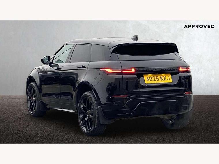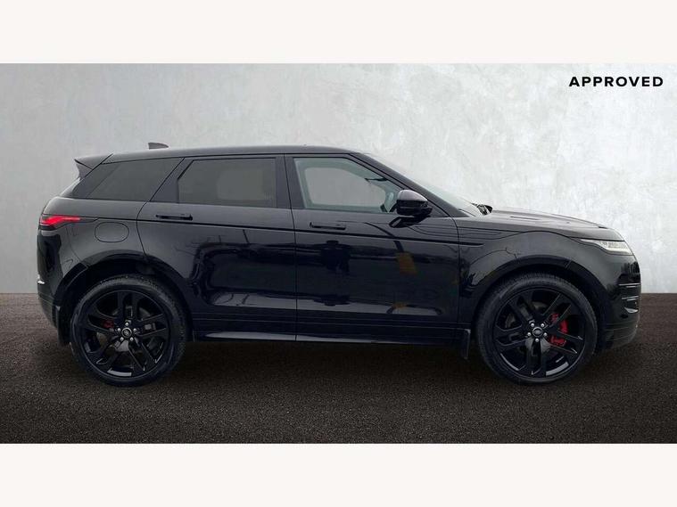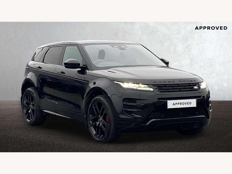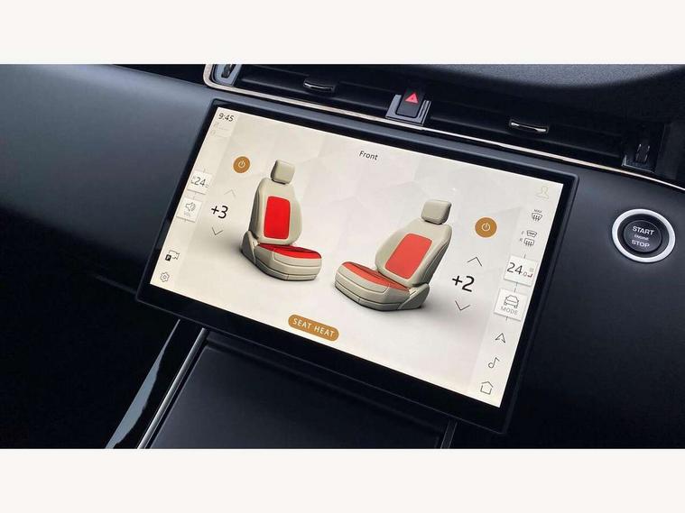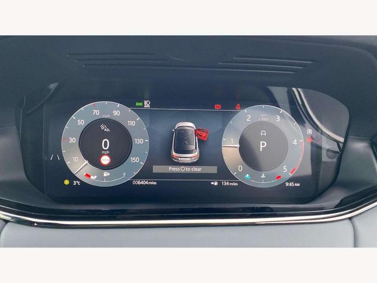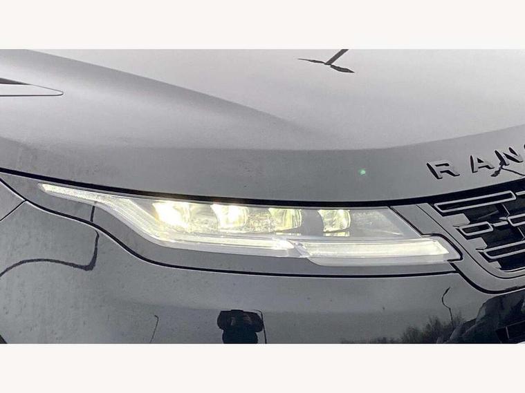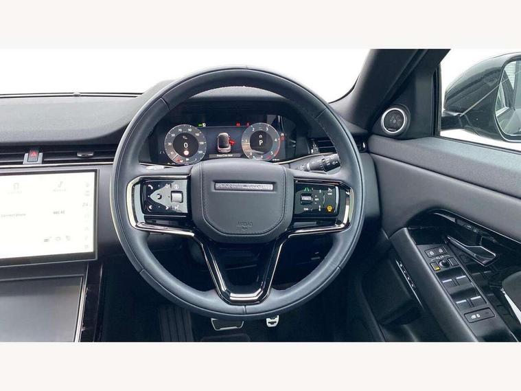 11.4" touch screen, Adaptive cruise control, Android Auto, Apple car play, Blind spot assist, Bluetooth connectivity, Brake pad wear indicator warning light, Driver condition monitor, eCall emergency system, Eco mode, Electronic power assisted steering (EPAS), Front and rear parking aid, InControl remote, Interactive driver display, Land Rover InControl apps, Lane keep assist, Pivi pro connected includes diamond pivi variant, smart settings, connected navigation pro, nuance speech licence, Powered tailgate/boot lid, Rear collision monitor, Rear traffic monitor, Traffic sign recognition with adaptive speed limiter, Voice control system, Wireless device charging, All terrain progress control, Diesel exhaust fluid (DEF) large tank, Efficient Driveline, Large fuel tank, Passive suspension, Terrain Response 2, Digital Audio Broadcast radio-DAB, Steering wheel mounted controls, Acoustic laminated windscreen, Auto headlights, Automatic headlight levelling, Electric windows with one touch open/close and anti trap, Flush deployable exterior door handles, Front and rear recovery eyes, Heated rear window with timer, Heated washer jets, Heated windscreen, Pixel LED headlights with signature DRL and LED tail Lights, Power fold, auto-dimming, heated door mirrors with approach lights and auto dimming driver side, Rain sensing windscreen wipers, Rear animated directional indicators, Rear fog lights, Rear side wing doors, Rear wiper, Side repeater indicators in mirror, Tailgate spoiler, Third brake light, Winter wiper park position, 14 way driver memory electric front seats with 2 way manual headrests + 4 way lumbar support, bolsters, 40:20:40 split folding rear seats with centre headrest and armrest, Ambient interior lighting, Bright metal pedals, Carpet mats, Chrome tread plates with range rover branding Includes stainless steel loadspace scuff plate with etched graphic, Customer configurable single point entry, Electrically adjustable steering column with memory function and easy entry/exit, Front and rear cupholders, Heated steering wheel, Isofix system on outer rear seats, Overhead lighting console, Overhead stowage for sunglasses, Passive front head restraints, Rear air vents, Rear head restraints, Satin chrome gearshift paddles, Single passenger seat, Sunvisors with illuminated vanity mirrors, Twin sliding front centre armrest, Online pack with data plan - Evoque, Power socket pack 2 - Evoque, 3 rear 3 point seatbelts, Anti-lock braking system (ABS), Brake hold function, Customer configurable autolock, DSC - Dynamic Stability Control, Electronic brake force distribution, Electronic parking brake, Electronic traction control, Emergency braking, Front and rear seatbelt reminder, Hill descent control, Hill launch assist, Low traction launch, Occupant protection assist, Passenger seat occupant detector, Power operated child locks, Roll stability control, Six airbags - Driver and passenger airbags/driver knee airbag/front side airbag and curtain airbags, Torque vectoring brake, Tyre pressure monitoring system, Alarm, Immobiliser, Intrusion sensor, Keyless entry, Locking wheel nuts,