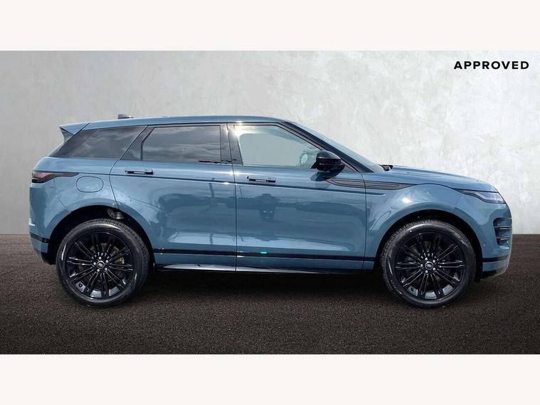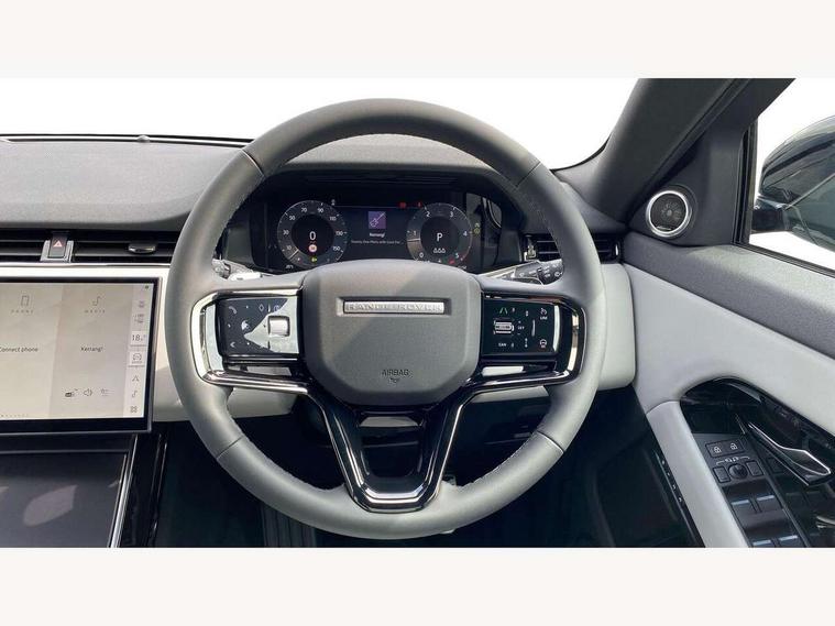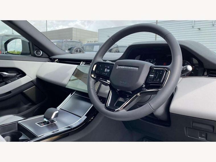 11.4" touch screen, 3D 360 degree surround camera with wade sensing, Adaptive cruise control, Android Auto, Apple car play, Blind spot assist, Bluetooth connectivity, Brake pad wear indicator warning light, Driver condition monitor, eCall emergency system, Eco mode, Electronic power assisted steering (EPAS), Front and rear parking sensors with auto brake, InControl remote, Interactive driver display, Land Rover InControl apps, Lane keep assist, Pivi pro connected includes diamond pivi variant, smart settings, connected navigation pro, nuance speech licence, Powered tailgate/boot lid, Rear collision monitor, Rear traffic monitor, Tailgate, Traffic sign recognition with adaptive speed limiter, Voice control system, Wireless device charging, All terrain progress control, Diesel exhaust fluid (DEF) large tank, Efficient Driveline, Large fuel tank, Terrain Response 2, Digital Audio Broadcast radio-DAB, Steering wheel mounted controls, Acoustic laminated windscreen, Auto headlights, Auto high beam assist, Automatic headlight levelling, Electric windows with one touch open/close and anti trap, Flush deployable exterior door handles, Front and rear recovery eyes, Heated rear window with timer, Heated washer jets, Heated windscreen, LED headlights with signature DRL and LED tail Lights, Power fold, auto-dimming, heated door mirrors with approach lights and auto dimming driver side, Rain sensing windscreen wipers, Rear animated directional indicators, Rear fog lights, Rear side wing doors, Rear wiper, Side repeater indicators in mirror, Tailgate spoiler, Third brake light, Winter wiper park position, 12 way driver memory and 10 way passenger electric front seats with 2 way manual headrest + 4 way lumbar support, 40:20:40 split folding rear seats with centre headrest and armrest, Ambient interior lighting, Bright metal pedals, Carpet mats, Chrome tread plates with range rover branding Includes stainless steel loadspace scuff plate with etched graphic, Customer configurable single point entry, Front and rear cupholders, Heated front seats, Heated steering wheel, Isofix system on outer rear seats, Manually adjustable steering column, Overhead lighting console, Overhead stowage for sunglasses, Passive front head restraints, Rear air vents, Rear head restraints, Satin chrome gearshift paddles, SE Grained leather upholstery, Single passenger seat, Standard steering wheel with Moonlight Bezel, Sunvisors with illuminated vanity mirrors, Twin sliding front centre armrest, Power socket pack 2 - Evoque, 3 rear 3 point seatbelts, Anti-lock braking system (ABS), Brake hold function, Customer configurable autolock, DSC - Dynamic Stability Control, Electronic brake force distribution, Electronic parking brake, Electronic traction control, Emergency braking, Front and rear seatbelt reminder, Hill descent control, Hill launch assist, Low traction launch, Occupant protection assist, Passenger seat occupant detector, Power operated child locks, Roll stability control, Six airbags - Driver and passenger airbags/driver knee airbag/front side airbag and curtain airbags, Torque vectoring brake, Tyre pressure monitoring system, Alarm, Immobiliser, Intrusion sensor, Keyless entry, Locking wheel nuts, All season tyres,