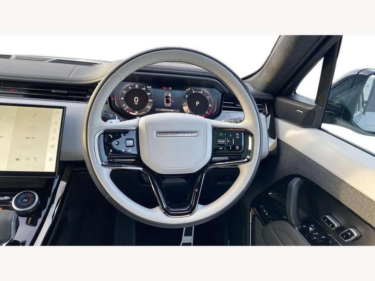 13.1" Touchscreen, 3D 360 degree surround camera with wade sensing, Adaptive cruise control with steering assist, Android Auto, Apple car play, Blind spot assist, Bluetooth connectivity streaming, Driver condition response, Eco mode, Electric power assisted steering (EPAS), Front and rear parking aid, Head up Display, Interactive Driver display instrument cluster, Lane departure warning system, Lane keep assist, Occupant protection assist, Park assist, Push button start, Rear collision monitor, Rear traffic monitor, Remote, Traffic sign recognition with adaptive speed limiter, Trip computer, Wireless device charging with phone signal booster, 8 speed automatic transmission, Adaptive dynamics, All wheel drive system, Automatic access height, Terrain Response 2, DAB Radio (Digital Audio Broadcasting), Incontrol protect - SOS emergency call with automatic collision detection, optimised assistance call and Incontrol remote app essential, Meridian sound system, Pivi pro connected, USB/aux input socket, Adaptive brake lights, Automatic headlight levelling, Automatic headlights, Centre high mounted stop light, ClearSight interior rear view mirror, Digital LED headlights with signature DRL and image projection, Electric heated/power fold memory door mirrors with approach lights and auto dimming driver side, Electric windows with one touch open/close and anti trap, Flush deployable exterior door handles, Follow me home lighting, Front and rear recovery eyes, Headlight power wash, Heated rear window, Heated washer jets, Heated windscreen, Illuminated metal tread plates with Autobiography script, Integrated twin tailpipes, LED tail lights, Metal load space scuff plates, Rain sensing windscreen wipers, Rear animated directional indicators, Rear fog lights, Rear side wing doors, Rear wash/wipe, Remote window closing, Side repeater indicators in mirror, Sliding panoramic roof with electric sunblind, Trailer stability assist, Winter wiper park position, 22 way heated and ventilated front and power recline rear seats, massage electric memory front seats and front and rear winged headrests, 3 seat bench in 2nd row, 60:40 seats with power recline and loadthrough, Air quality sensor, Auto air recirculation, Bright metal foot pedals, Centre console with armrest, Customer configurable single point entry, Driver's footrest, Easy boot loading, Ebony console door armrests and seatbelts, Electric adjustable steering column, Four zone climate control, Front and rear cupholders, Front door storage space, Front map lights, Front seat back map pockets, Front stowage pocket, Front/rear passenger grab handles, Gearshift paddles, Heated steering wheel, Isofix child seat preparation, Loadspace cover, Loadspace floor partition, Loadspace Hook, Loadspace light, Loadspace mounting provisions, Lockable glovebox, Luggage tie-downs in loadspace, Multifunction steering wheel, Pollen filter, Power socket, Premium cabin lighting, Rear centre armrest, Rear ISOFIX, Single front passenger seat, Soft close doors, SV bespoke carpet mats, Three 12V accessory power outlets, Twin blade sunvisors with Illuminated vanity mirrors, Upper secondary glovebox, Online pack with data plan - Range Rover Sport, 3 point seatbelts on all seats, Anti-lock braking system (ABS), Brake pre-fill technology, Configurable autolock, Cornering brake control (CBC), DSC - Dynamic Stability Control, EBD - Electronic brakeforce distribution, Electric parking brake, Electronic traction control, Emergency braking, Front seatbelt pretensioners, Front side airbags, Height adjustable front seatbelts, Hill descent control, Hill launch assist, Illuminated seat belt buckles, Low traction launch, Passenger seat occupant detector with front airbags, Power operated child locks, Roll stability control, Seatbelt warning, TPMS (Tyre pressure monitoring system), Immobiliser, Intrusion sensor, Keyless entry, Locking wheel nuts, Perimetric and volumetric anti theft alarm, Remote locking, Moonlight noble chrome interior finishers,