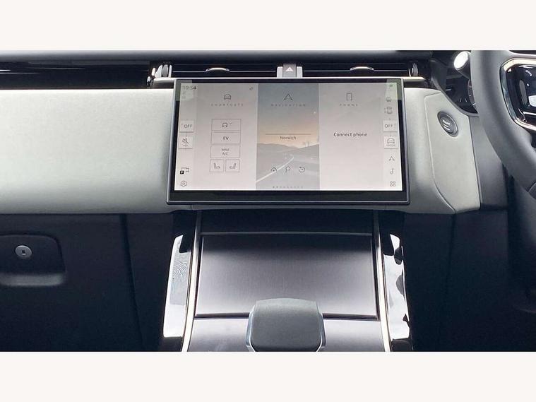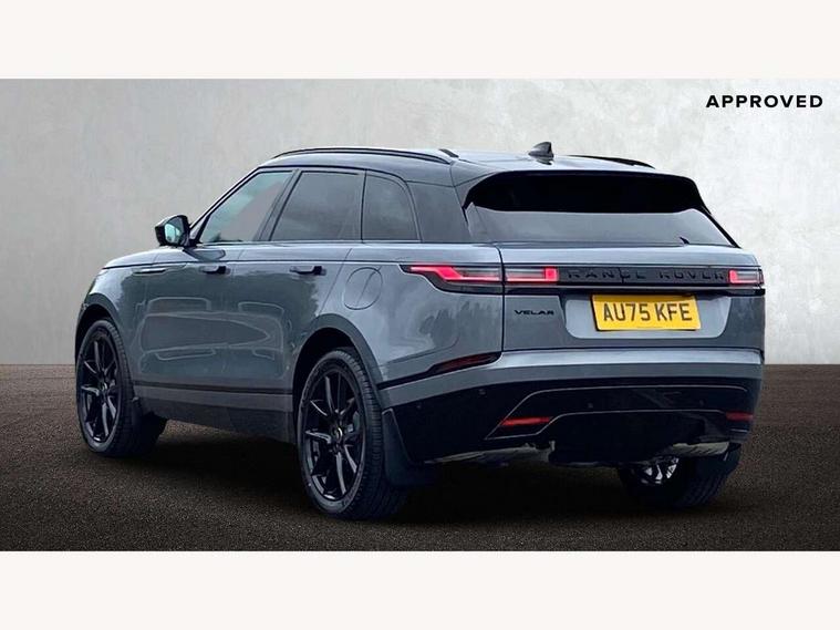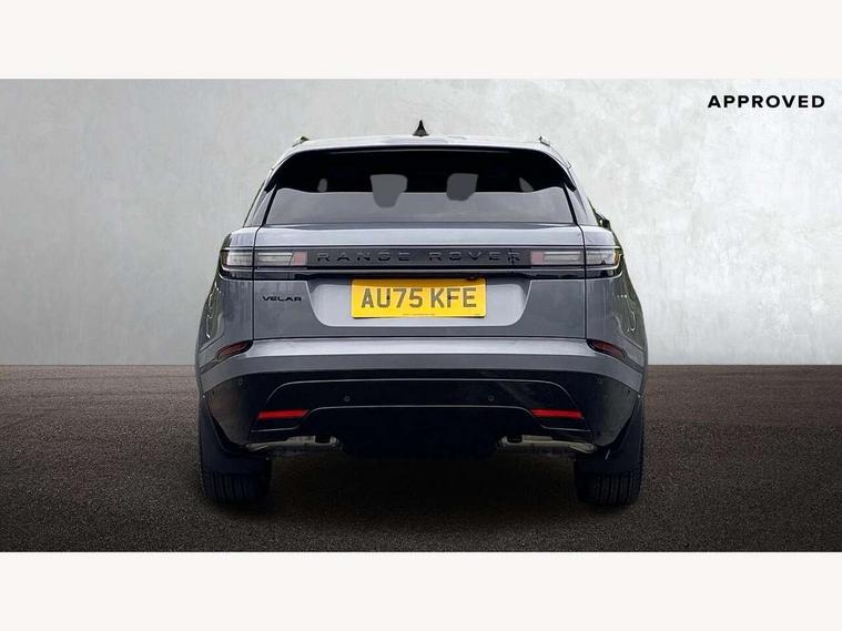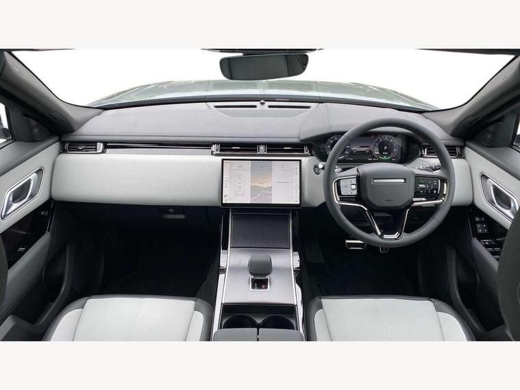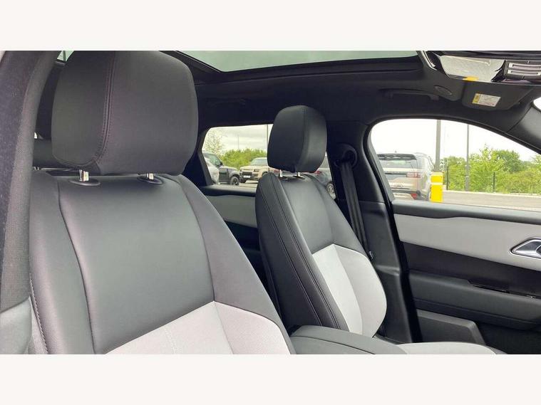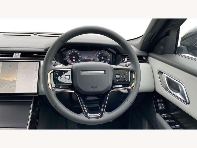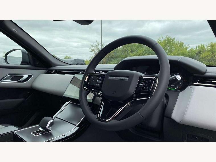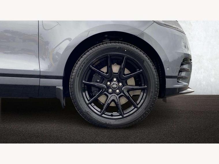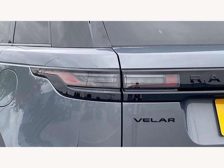 3D surround camera includes forward traffic detection and vehicle guidance, Android Auto, Apple CarPlay, Blind spot assist, Bluetooth connectivity, Brake pad wear indicator warning light, Driver condition monitor, eCall emergency call system, Front and rear parking aid, InControl remote, Land Rover InControl apps, Lane keep assist, Pivi pro with connected navigation, Rear traffic monitor, Service indicator, Speed proportional electronic power assisted steering (EPAS), Traffic sign recognition with adaptive speed limiter, Trip computer, Voice control system, Wade Sensing, Wireless device charging, 7kw on board charger, 8 speed automatic transmission, AC/DC charging, Adaptive dynamics, All terrain progress control, Coil suspension system, Open differential with torque vectoring by braking, Public charging cable, Single speed transfer box, DAB radio, Steering wheel mounted controls, 3rd brake light, Acoustic laminated windscreen, Auto dimming interior rear view mirror, Auto high beam assist, Automatic headlamp levelling, Automatic headlights, Black roof rails, Body coloured bumpers, Boot protection plate, Electric windows with one touch open/close and anti trap, Flush deployable exterior door handles, Follow me home headlights, Heated rear window with timer, Heated washer jets, Heated windscreen, LED headlights with signature DRL, Metal front tread plates, Metal load space scuff plates, Power fold, auto-dimming, heated door mirrors with memory and approach lights, Rain sensor windscreen wipers, Rear animated directional indicators, Rear fog lights, Rear side wing doors, Rear wash/wipe, Tailgate/boot lid spoiler, Trailer stability assist, Velar badge, 14 way electrically adjustable front seats with driver's memory function, 3 seat bench in 2nd row, Ambient lighting, Bright metal pedals, Carpet mats, Driver/passenger sunvisors with illuminated vanity mirrors, Ebony morzine headlining, Electrically adjustable steering column, Heated steering wheel, Isofix system on outer rear seats, Loadspace cover, Overhead lighting console, Overhead stowage for sunglasses, Passive front headrests, Rear air vents, Rear centre headrest, Single front passenger seat, Twin front cupholders, Twin sliding front centre armrest, Online pack with data plan - Velar, Power socket pack 2 - Velar, 380mm front brakes and 325mm rear brakes, 3x3 point rear seatbelts, Anti-lock braking system (ABS), Cornering brake control, Curtain airbags, Customer configurable autolock, Door side intrusion beams, Driver airbag, DSC - Dynamic Stability Control, Electronic brake force distribution, Electronic parking brake, Electronic traction control, Emergency braking, Front and rear seatbelt reminder, Hill descent control, Hill launch assist, Low traction launch, Passenger airbag, Power operated child locks, Rear airbags, Roll stability control, Side airbags, Tyre pressure monitoring system (TPMS), Global lock and unlock switch on driver door, Immobiliser, Intrusion sensor, Keyless entry, Lock only switch on front passenger door, Locking wheel nuts, Perimetric alarm, Remote central locking, All season tyres,