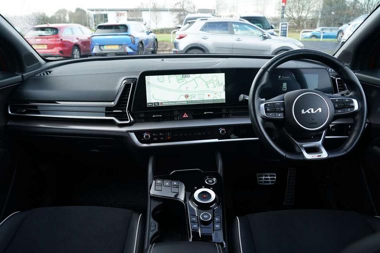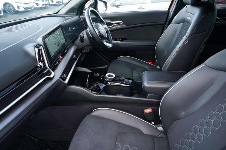 12.3" Display with navigation, 4.2" supervision colour cluster display, Apple car play/Android Auto with voice control, Drive mode selector, E-call, Forward collision avoidance assist (FCA) - city/pedestrian/cyclist/junction covering, Front and rear parking sensors, Highway Driving Assist (HDA), Intelligent speed limit assist, Kia Connect (UVO), Lane Following Assist (LFA), Lane keep assist, Low washer fluid warning, Rear view monitor, Reversing camera system integrated into centre fascia screen, Smart cruise control with stop and go functionality, Speed sensitive power steering, Trip computer, Windscreen washer level indicator, Intelligent Stop and Go, 6 speaker audio system, Bluetooth audio streaming, DAB Radio with MP3, Rear USB port, Steering wheel mounted audio controls, USB C type charging ports on centre console, USB C type charging ports on side of front seats, USB port for connection of a media device, All round electric windows with drivers and front passenger auto up/down function, Automatic headlight control system, Automatic window defogger, Backlite glass heated with timer, Body colour and black bumper with silver accents, Body colour exterior door handles, Body colour radiator upper garnish and door garnish, Electrically adjustable/heated/folding door mirrors with LED indicators, Front and rear chrome skid plates, Gloss black door mirrors, Gloss black radiator grille, Gloss black side sill and wheel arch body mouldings, Glossy black roof rack, High beam assist, Interior electrochromic mirror, LED daytime running lights, LED front fog lamps, LED headlamps (low and high beam - MFR type), LED High mounted stop light, LED rear combination lamp, Rain sensing wipers with aero blades, Rear fog lamp, Rear privacy glass, Rear side wing doors, Rear spoiler, Rear wiper, Satin finished beltline, Silver coloured inserts to bumpers, Tinted rear glass, Trailer stability assist, 12V power socket in front centre fascia and luggage compartment, 2nd row personal lamps, 3 seat bench in 2nd row, 3 x passenger assist grips, 40/20/40 split folding rear seat, All-round height adjustable headrests, Black headlining, Centre console storage box, Cupholders in rear armrest, D-Shaped sports leather steering wheel and perforated inserts with GT-Line logo, Door courtesy lamps, Drink holder at centre armrest, Driver and front passenger side sunvisors with illuminated vanity mirrors, Driver's seat manual height adjust, Drivers seat power lumbar support, Front and rear door storage, Front seat and rear pockets, Front/rear centre armrests, Gear shift indicator, Glovebox illumination, Heated front seats, Heated steering wheel, Interior door lock/unlock function, ISOFIX Child seat top tethers and anchor fixings outer rear seats, Luggage area light, Luggage area load cover, Luggage net with hooks, Metal paint interior door handles, Overhead console lamp, Paddle shift controls, Rear cabin light, Rear coat hooks, Single front passenger seat, Sports pedals, Suede leather upholstery, Three zone climate control, Tilt/telescopic adjustable steering wheel, Ventilation ducts to rear compartment, Active front headrests, All round 3-point seatbelts, Anti-lock braking system (ABS), Dual front side airbags, Dual horn, Electronic parking brake, Electronic stability control with downhill brake control, Front passenger airbag cut-off switch, Front seatbelt pretensioners + load limiters, Height adjustable front seatbelts, Hill start assist control (HAC), Impact sensing auto door unlocking, Multi collision brake assist, Rear door child safety locks, Rear seat alert system, Traction control, Twin curtain airbags, Twin front airbags, Tyre pressure monitoring system, Advanced anti-theft system including immobiliser and alarm, Door deadlocks, Engine Start/Stop Button with Smart Entry System, Locking wheel nuts, Speed sensitive auto door locking, Visible vehicle identification number, Aluminium pattern finish centre fascia and door garnish, 18" GT-Line alloy wheels, Tyre mobility kit,