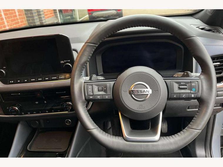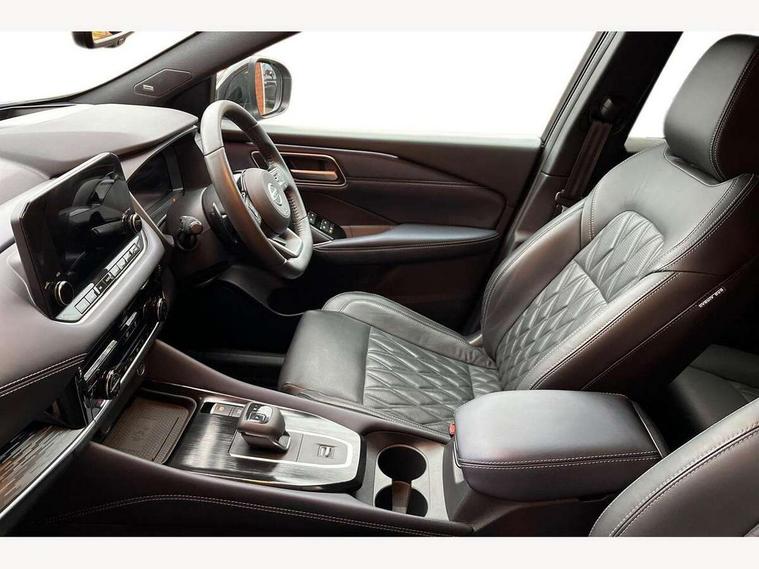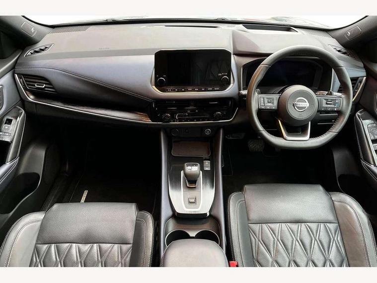 Blind spot warning, Drive modes (sport, normal, eco), Electric speed sensitive power steering, Emergency and breakdown call, Front and rear parking sensors, Full Digital 12.3" TFT Digital Combimeter, Hands free power tailgate, Idle stop/start system, Intelligent Cruise control (ICC), Intelligent driver alert system, Intelligent forward collision warning, Intelligent lane intervention, Lane departure prevention, Lane departure warning system, Moving object detection, Push button starter, Rear cross traffic alert, Traffic sign recognition with legal speed adjustment, Trip computer, 10 Bose speakers - 2 tweeters, 6 high and medium frequency door speakers and 2 in subwoofer, AM/FM audio system with DAB, Bluetooth audio streaming, Bose acoustimass bass box, Digital amplifier, Front USB connections (Type-A and Type-C), Rear USB charging only ports (Type-A and Type-C), Auto dimming rear view mirror, Auto rear wiper when reversing, Body colour mirror caps, Body coloured door handles, Bodyside mouldings, Chrome side window finisher, Door mirror memory, Electric auto folding door mirrors, Electrically adjustable and heated door mirrors with LED turn indicator, Fixed panoramic glass roof with electric sunshade, Follow me home headlights, Intelligent auto headlights, LED daytime running lights, LED signature rear lights, One touch front and rear electric windows with remote opening and closing, Privacy glass, Rear roof spoiler, Rear styling plate, Reverse tilting door mirrors, Roof rails, Shark fin antenna, Splash free rain sensing wipers, Super UV and infrared cut glass, Three blink turn signal, 12v power socket in dashboard and luggage, 2x Rear coat hooks, 3 rear headrests, 4 grab handles, 6 Luggage hooks - 4 on floor, 2 on side, 60/40 split folding rear seat, 8 way electric adjustable driver seat with massage and memory function, 8 way electric adjustable passenger seat with massage and memory function, Ambient lighting around centre console, Ambient lighting in front doors, Centre console storage tray, Chrome interior door handles, Dark headlining, Driver and front passenger sunvisors with illuminated vanity mirrors, Driver seat back pocket, Dual zone automatic climate control with pollen filter, Electric 4-way lumbar support for drivers seat, Electric adjustable 4 way lumbar support for passenger seat, Front centre console and armrest, Front cupholder, Front door with bottle holders, Glovebox with light, Hard trunk cover, Height adjustable front headrests, Leather steering wheel, Luggage board system, Luggage space lighting, Multifunction steering wheel, Passenger seat back pocket, Quilted premium leather upholstery, Rear armrest with 2 cupholders, Rear door bottle holders, Soft PVC kneepad, Steering wheel gearshift paddles, Steering wheel switches, Tilt/telescopic adjustable steering wheel, Two rear isofix child seat anchorage points with top tether, Welcome light and doors with console tray ambient lighting, Connectivity Pack - Qashqai, Heat pack - Qashqai, Tech Pack (ProPILOT + HUD), 3x3 point rear seatbelt pretensioners + load limiters, ABS, ESP, EBD and brake assist, Active brake limited slip, Auto hold function, Child locks on rear doors, Curtain and front side, far side airbags, Driver and passenger airbags, Driver, passenger and 2nd row rear seat belt reminder, Electronic parking brake, Front seatbelt pretensioners + load limiters, Height adjustable front seatbelts, Hill start assist, Intelligent blind spot intervention, Intelligent front emergency braking with pedestrian, cyclist recognition and junction assist, Intelligent rear automatic braking, Tyre pressure monitoring system, Vehicle dynamic control, Advance intelligent key with driver memory storage (seats, mirrors, audio), Engine immobiliser, Remote central door locking with deadlocking, Thatcham Cat.1 alarm, 20" Alloy wheels,