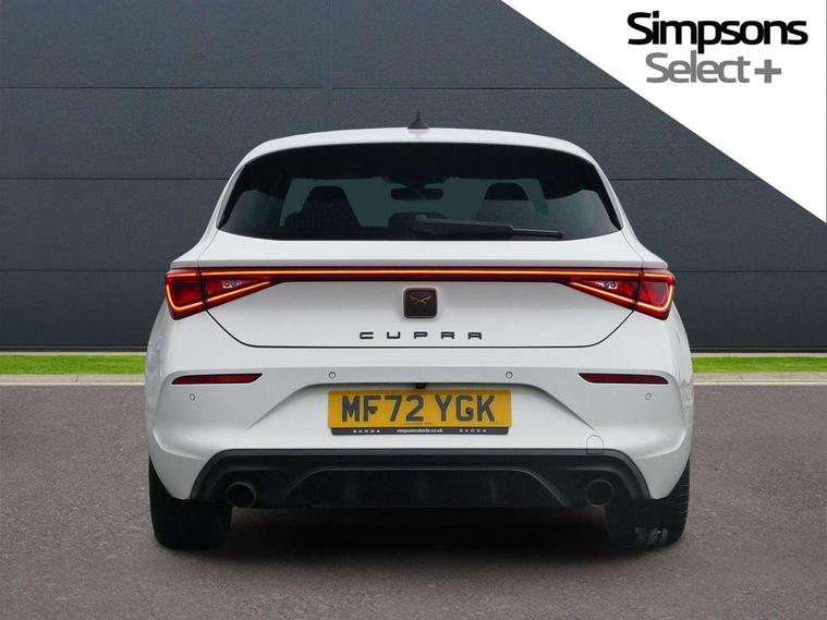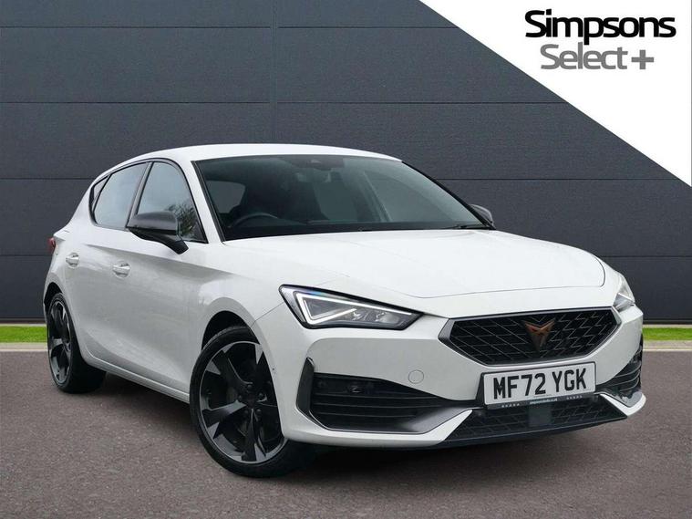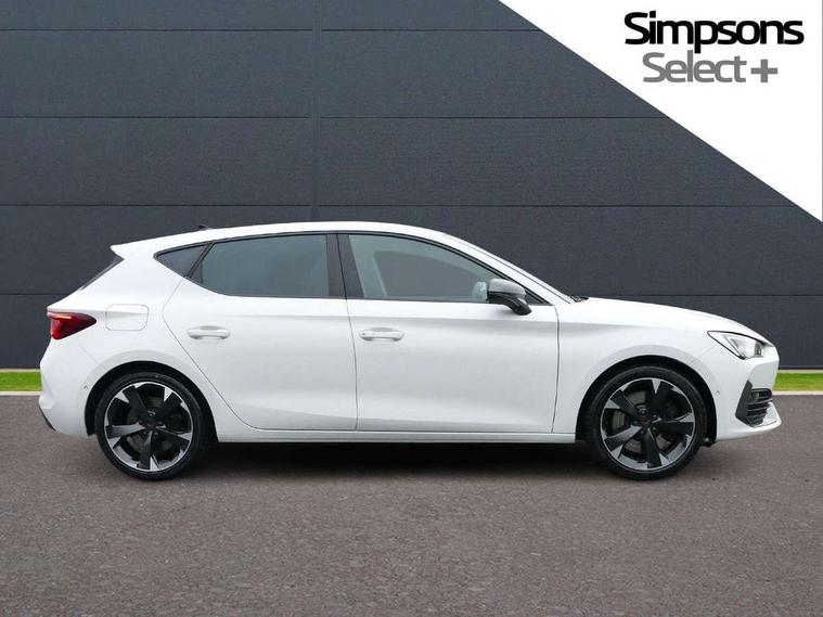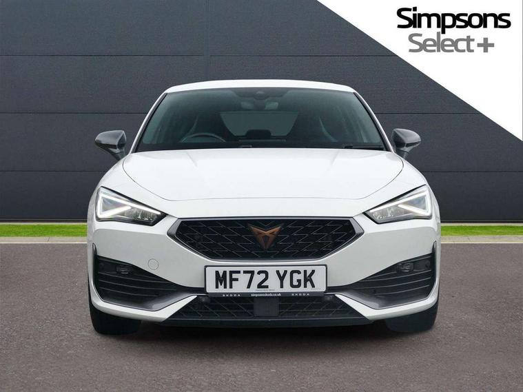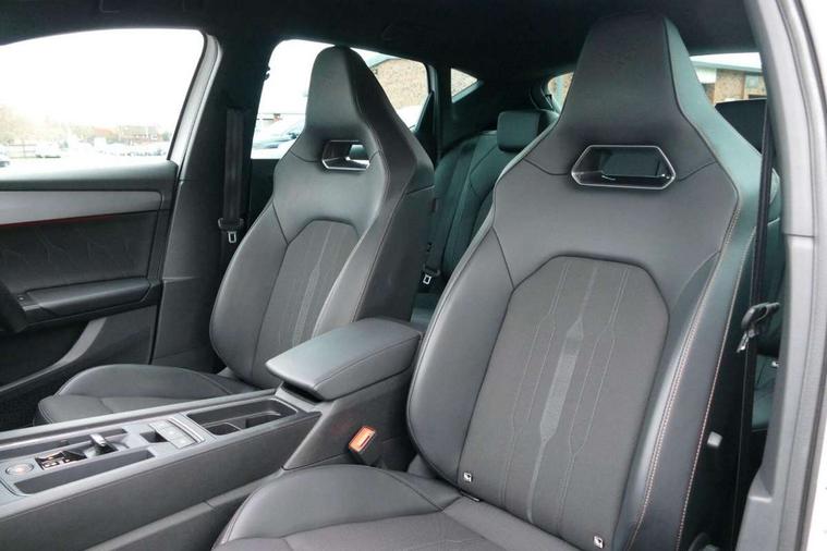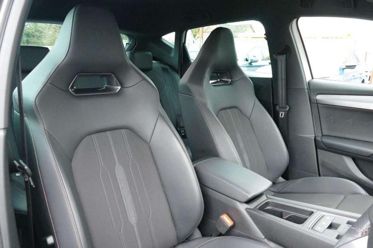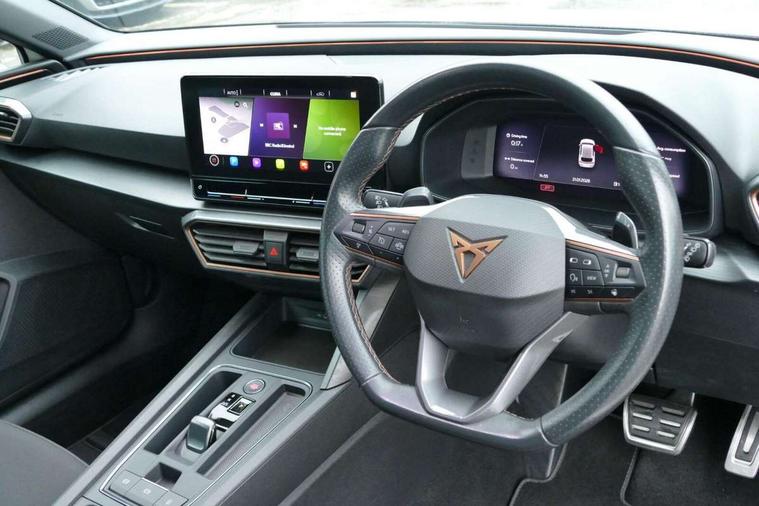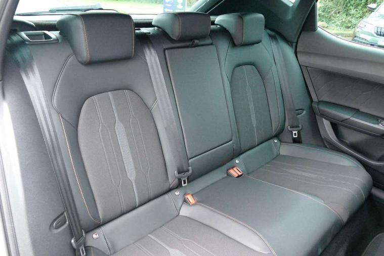 CUPRA drive profile selection with 4 modes (Comfort/Cupra/Sport/Individual), throttle response and gearshift mode, Digital cockpit, E-call, Electro mechanical speed sensitive power steering, Front assist with forward collision warning braking reaction to vehicles, pedestrians and cyclists, Full link smartphone integration with Mirror Link, wireless Apple CarPlay and wired Google Android Auto, Lane assist, Lockable tailgate, Park assist (inc front/rear parking sensors), Rear view camera, RPM, trip computer, outside temp gauge, instrument light brightness, low fuel warning light, lights on reminder, gearshift indicator, Service interval indicator, Start/stop system with regenerative braking, Sports suspension, XDS electronic differential lock and dynamic traction support, 7 speakers, Auxiliary input socket, Auto dimming rear view mirror, Body colour door handles, Body coloured bumpers, Cupra sports bumpers, Dark tinted rear windows, Electric front/rear windows, Electrically adjustable, heated and folding door mirrors, LED front fog lamps with cornering function, LED headlights with dynamic turn signals, tail lights, rear fog lights with rear coast to coast lighting, Rain sensing wipers, Rear diffuser with twin exhaust pipe on each side, Rear side wing doors, Rear wash/wipe, Separate daytime running light with automatic headlight control and coming home feature, Third brake light, 12v power supply in centre console, 3 seat bench in 2nd row, 5 headrests, 60/40 split rear bench seat with armrest, Ambient lighting (glovebox, footwell, ambient lighting multicoloured), Black headlining, CUPRA Leather flat bottomed, heated, perforated steering and gearshift paddles, Cupra sports pedals, Driver/passenger manual seat height adjustment, Dust/pollen filter, Folding boot cover, Four x USB Type C ports, Front and rear reading lights X 4, Front centre armrest, Front seats manual lumbar adjustment, Height/reach adjust steering wheel, Illuminated interior front door sills, Interior wraparound lighting, ISOFIX points in outer rear seats with top tether anchorage points, Jack and tool kit, Luggage tie-down hooks, PVC/Cloth upholstery with copper stitching + Cupra embossed logo on headrest, Single front passenger seat, Sports bucket seats, Storage pockets on rear of front seats, Sunvisors with illuminated mirror, Three zone climate control, Media system plus with navigation pack - Leon Cupra, 3 point seatbelts on all rear seats, ABS, Brake control system - ESC and brake booster, Child proof door locks, Cupra black brake calipers, Driver and front passenger airbags with front passenger airbag de-activation, front side and curtain airbags, Electronic parking brake, Extended safety system - seat belt tensioner, window closure and hazard lights, Hill hold control, Rear disc brakes, Seat belt reminder for front and rear seats, Tiredness recognition system, Tyre pressure monitoring system, Anti theft alarm system with interior monitoring in cab, backup horn and towing protection, KESSY Advanced - Keyless start, keyless entry, Locking wheel bolts, Chrome and copper interior detailing, 18" Machined sport black and silver alloy wheels with 92Y tyres, Space saver spare wheel,