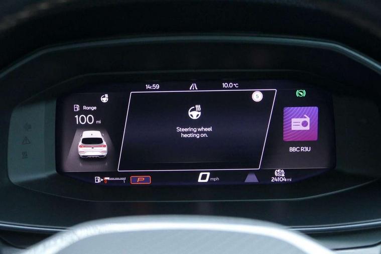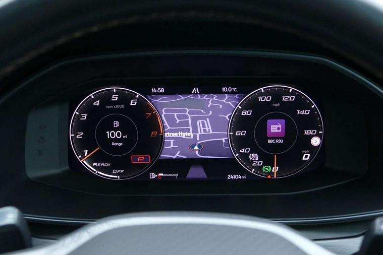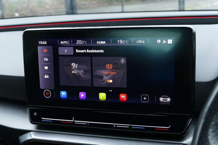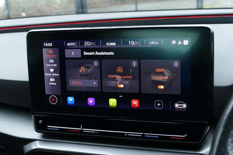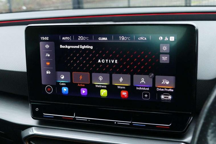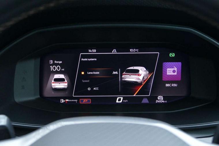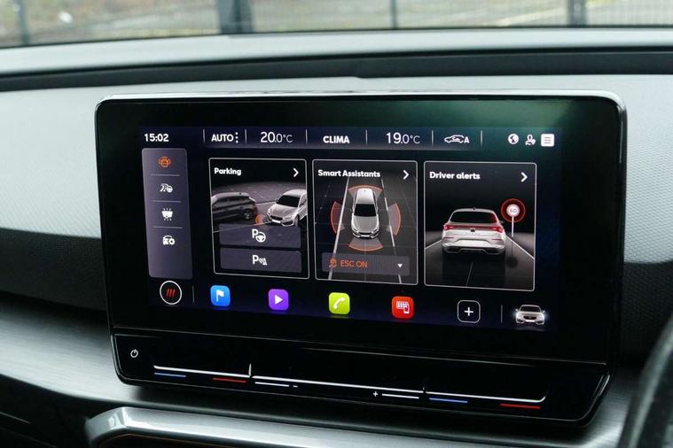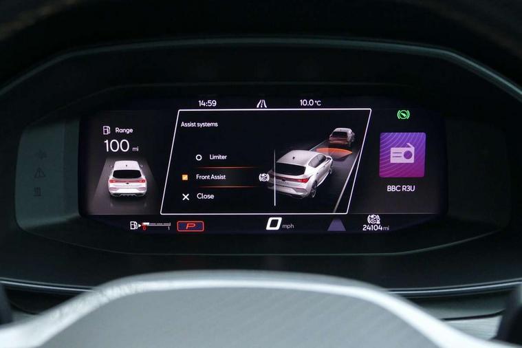 CUPRA drive profile selection with 4 modes (Comfort/Cupra/Sport/Individual), throttle response and gearshift mode, Digital cockpit, E-call, Electro mechanical speed sensitive power steering, Front assist with forward collision warning braking reaction to vehicles, pedestrians and cyclists, Full link smartphone integration with Mirror Link, wireless Apple CarPlay and wired Google Android Auto, Lane assist, Lockable tailgate, Park assist (inc front/rear parking sensors), Rear view camera, RPM, trip computer, outside temp gauge, instrument light brightness, low fuel warning light, lights on reminder, gearshift indicator, Service interval indicator, Start/stop system with regenerative braking, Sports suspension, XDS electronic differential lock and dynamic traction support, 7 speakers, Auxiliary input socket, Auto dimming rear view mirror, Body colour door handles, Body coloured bumpers, Cupra sports bumpers, Dark tinted rear windows, Electric front/rear windows, Electrically adjustable, heated and folding door mirrors, LED front fog lamps with cornering function, LED headlights with dynamic turn signals, tail lights, rear fog lights with rear coast to coast lighting, Rain sensing wipers, Rear diffuser with twin exhaust pipe on each side, Rear side wing doors, Rear wash/wipe, Separate daytime running light with automatic headlight control and coming home feature, Third brake light, 12v power supply in centre console, 3 seat bench in 2nd row, 5 headrests, 60/40 split rear bench seat with armrest, Ambient lighting (glovebox, footwell, ambient lighting multicoloured), Black headlining, CUPRA Leather flat bottomed, heated, perforated steering and gearshift paddles, Cupra sports pedals, Driver/passenger manual seat height adjustment, Dust/pollen filter, Folding boot cover, Four x USB Type C ports, Front and rear reading lights X 4, Front centre armrest, Front seats manual lumbar adjustment, Height/reach adjust steering wheel, Illuminated interior front door sills, Interior wraparound lighting, ISOFIX points in outer rear seats with top tether anchorage points, Jack and tool kit, Luggage tie-down hooks, PVC/Cloth upholstery with copper stitching + Cupra embossed logo on headrest, Single front passenger seat, Sports bucket seats, Storage pockets on rear of front seats, Sunvisors with illuminated mirror, Three zone climate control, Media system plus with navigation pack - Leon Cupra, 3 point seatbelts on all rear seats, ABS, Brake control system - ESC and brake booster, Child proof door locks, Cupra black brake calipers, Driver and front passenger airbags with front passenger airbag de-activation, front side and curtain airbags, Electronic parking brake, Extended safety system - seat belt tensioner, window closure and hazard lights, Hill hold control, Rear disc brakes, Seat belt reminder for front and rear seats, Tiredness recognition system, Tyre pressure monitoring system, Anti theft alarm system with interior monitoring in cab, backup horn and towing protection, KESSY Advanced - Keyless start, keyless entry, Locking wheel bolts, Chrome and copper interior detailing, 18" Machined sport black and silver alloy wheels with 92Y tyres, Space saver spare wheel,