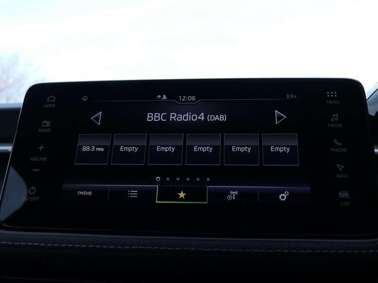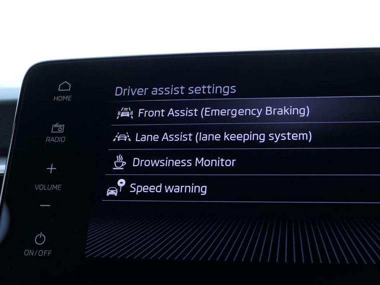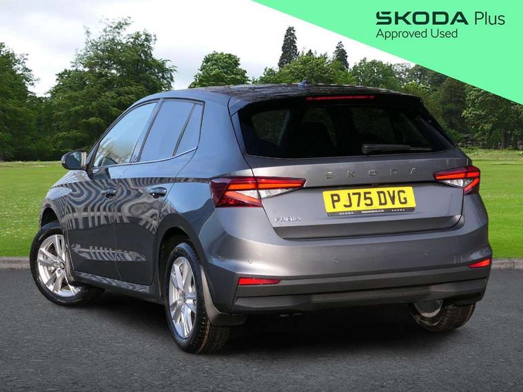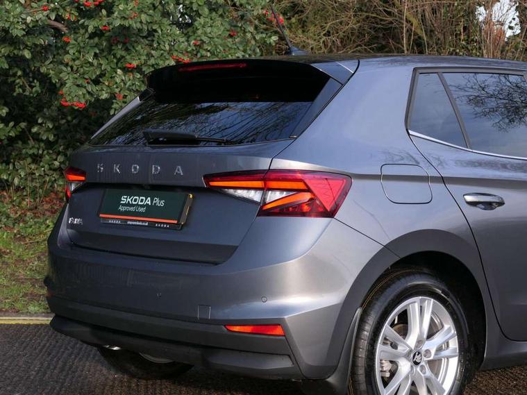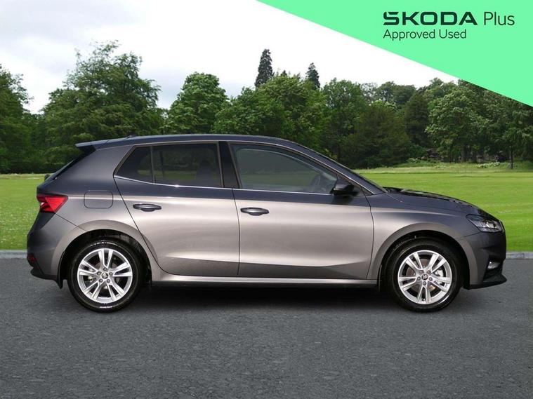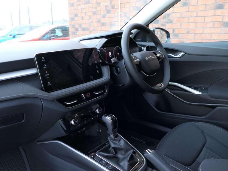 Advanced driver attention and drowsiness monitor, Bluetooth connection, Driver alert system, Electromechanical power steering, Exterior temperature gauge, Service interval indicator, Traffic sign recognition, Virtual cockpit with 10.25" colour display, Wireless SmartLink for Apple CarPlay and Android Auto, 6 Speakers (4 in front and 2 in rear), 9.2" colour display skoda navigation system with voice control and web radio, Auxiliary socket for external MP3 player, DAB digital radio reception, Auto dimming rear view mirror, Body colour door mirrors, Body coloured bumpers, Chrome window surround, Door mirror integrated indicators, Front and rear electric windows, Front window wiper intermittent control, Headlight range control - Automatic, Ice scraper in fuel cap, LED 3rd brake light, LED daytime running lights with coming and leaving home feature, LED rear lights, Privacy glass, Rear LED fog light, Rear side wing doors, Rear window wiper with washing nozzles, Roof mounted spoiler, SKODA tailgate lettering in chrome, Unique dark chrome design logo on alloy wheels, 2 LED reading lights in front and rear, 3 rear headrests, Backrest split and folding, Central console with fixed cup holder and storage box, Chrome handbrake release button, Comfort seats, Door sills with fabia badging, Dual zone air conditioning with climatronic electronic control, Fabric upholstery, Front centre armrest, Gearshift knob/handle in leather, Grain satin black interior door handles, Hand brake lever handle in leather, Height adjustable front headrests, Height adjustable front seats, Height adjustable steering wheel, ISOFIX and TopTether anchorage points to the outer rear seats, ISOFIX and TopTether on the front passenger seat, Luggage compartment lighting, Manually adjustable lumbar support in front seats, Pollen filter, Rear seat bench unsplit, Single front passenger seat, Skoda lettering on steering wheel, Storm grey headlining, Sun visors with mirror and airbag label on passenger side, Textile floor mats, Ticket holder, Ambient lighting pack - Fabia Hatchback, 3-point height adjustable front seats belts with pretensioner and force limiter, Automatic warning lights in case of crash, Driver and passengers airbag with switch off function, e-Call+, ESC including ABS, MSR, ASR, EDS, HBA and XDS, Front and rear seat belt warning, FRONT ASSIST (AEB City and AEB Inter Urban), Front side airbags, Head airbags, Hill hold control, One tone horn, Pedestrian protection, Three rear 3-points safety seat belts with pretensioner and force limiter including stop function for outer rear seat belts, Tyre pressure monitoring system, Anti-theft alarm system including immobiliser, interior monitoring, backup horn, and towing protection, Central locking with radio remote control, interior controls, SAFE function and 2 foldable keys, Chrome edged air vents, Grain satin black central console cover, Metallic grey upper decorative trim, Satin black door and side trim panel in front, Textile microsuede grey lower decorative trim with art grey stitching, Anti-theft wheel bolts protection, Super-low rolling resistance tyres,
