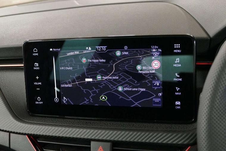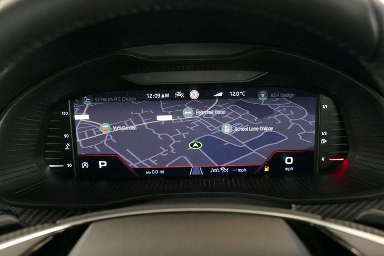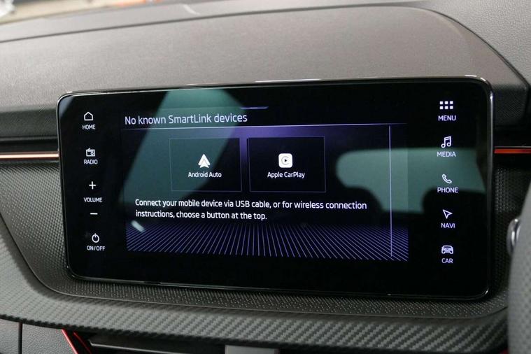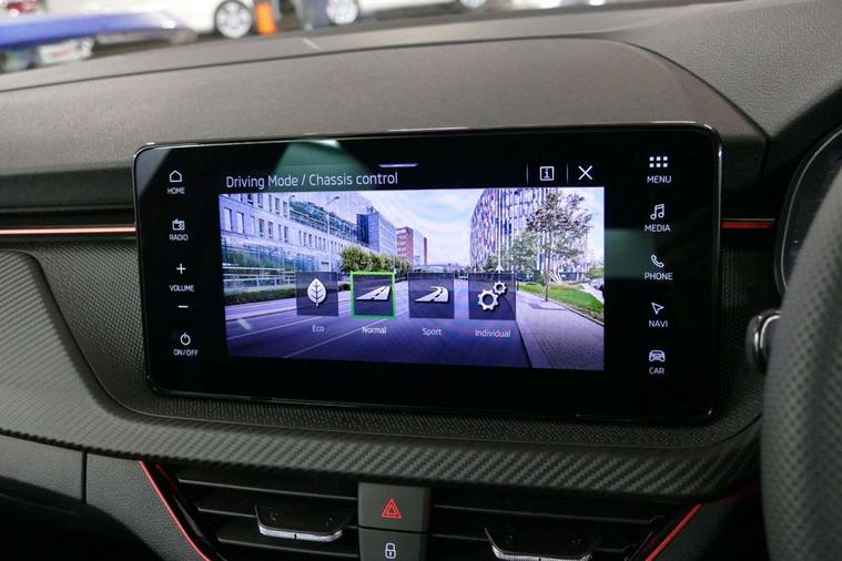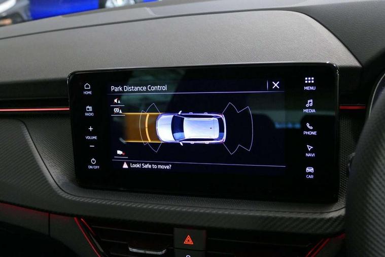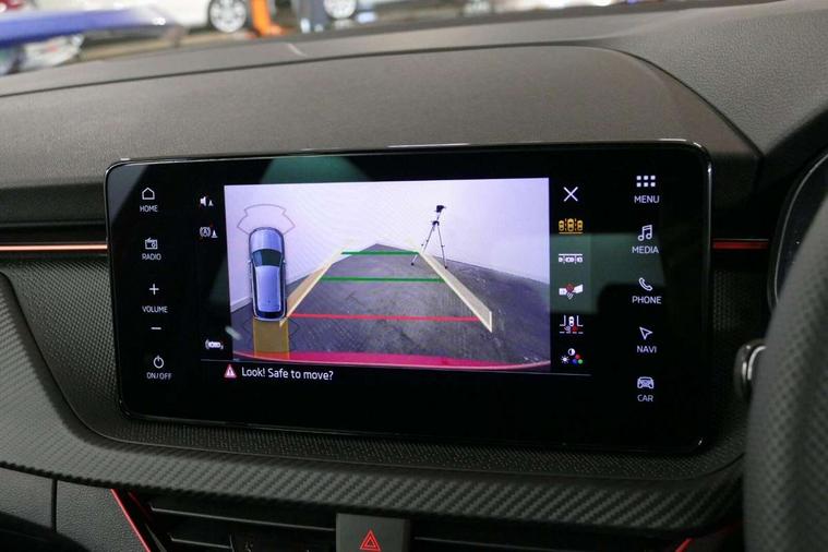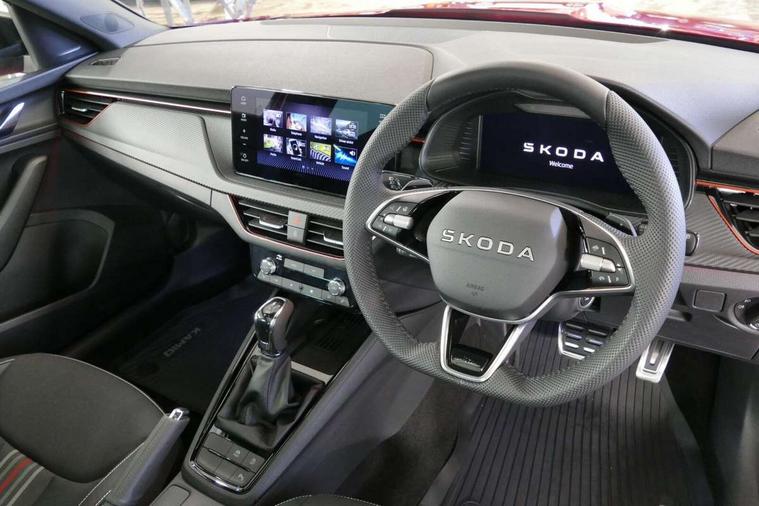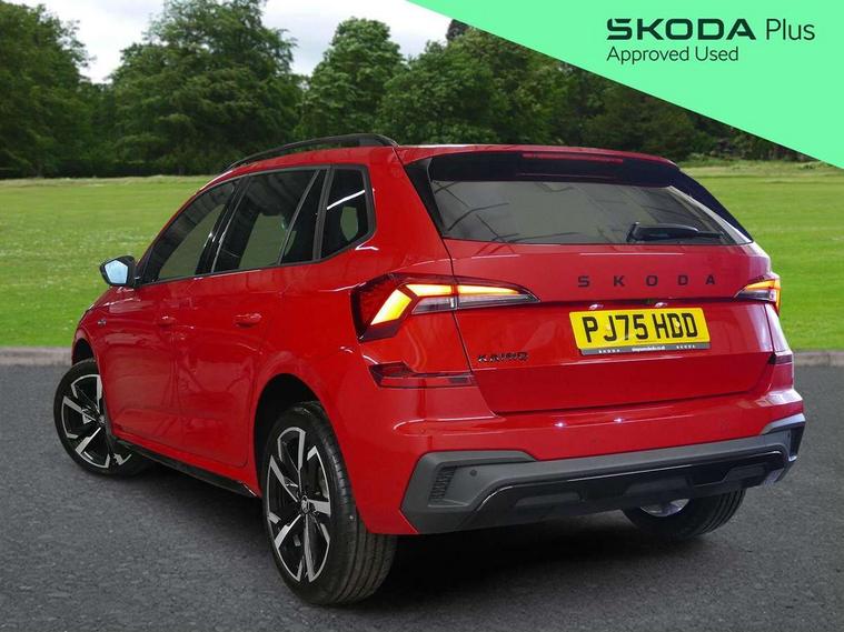 Advanced driver attention and drowsiness monitor, Bluetooth system, E-call, Front assist system, PAS, Rear parking sensors, Rear view camera, Service indicator, Speed limiter, Traffic sign recognition, Virtual cockpit with 10.25" display, Voice control system, Wireless smartlink, 4 USB C ports, 8 Speakers, 9.2" Skoda navigation display, DAB Digital radio, Auto dimming rear view mirror, Automatic headlight control with coming home and leaving home feature, Black door mirrors, Black radiator grille, Black rear diffuser, Black roof spoiler, Body colour bumpers, Body colour door handles, Boot lettering in black, Extended tailgate glass, Fixed panoramic sunroof with black roof rails, Front and rear electric windows, Heated rear window, LED daytime running lights, LED high beam, LED low beam, LED third brake light, Light sensors, Monte carlo plaque, Privacy glass, Rear side wing doors, Rear wiper, Ticket holder inside windscreen, 12V socket in luggage compartment, 3 seat bench in 2nd row, Aluminium pedals, Ambient lighting in white/red, Art leather carbon decor inserts, Art leather carbon door inserts, Black roof lining, Cargo elements, Chrome inner door handles, Driver and passenger sun visors with vanity mirror, Dual zone climate control, Front and rear roof lights, Front centre armrest, Front head restraints, Glove compartment with illumination, Height adjustable driver seat, Height adjustable front passenger seat, Ice scraper, Inner circulation control with pollen filter, ISOFIX on front passenger seat, Isofix preparation for back seats, Leather gearknob and handbrake lever, Manual lumbar support for front seats, Monte Carlo cloth upholstery, Net package and top tether hooks in boot space, Net under rear shelf, Pocket on the back of both front seats include mobile phone pockets, Rake/reach adjustable steering wheel, Reading lights, Rear centre armrests, Red hotstamping, Single front passenger seat, Sports seats, Textile floor mats, Third rear headrest, Top tether for front passenger seat, Umbrella in driver's door, Light and view plus package - Kamiq, 3x3 point rear seatbelts, Airbags - driver and front passenger, Disc brakes, ESP, Extended and predictive pedestrian/cyclist protection, Front passenger airbag deactivation switch, Front side airbags with curtain airbags, Hill hold control, Manual leather parking brake, Manual rear child locks, One tone horn, Seatbelt reminder for driver an co-driver, Traction control, Tyre pressure monitor, Anti-theft alarm system with interior monitoring, backup horn, towing protection and remote central locking with SAFE system, Anti-theft wheel bolts, Electronic engine immobilizer, 18" Ursa black diamond cut alloy wheels,