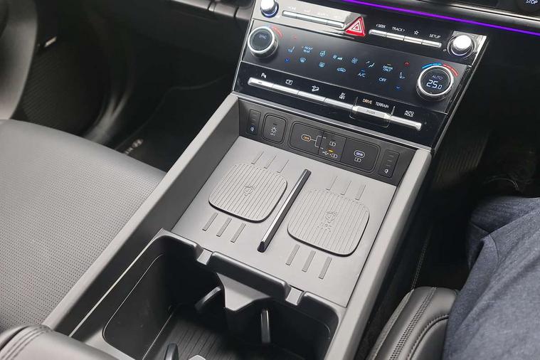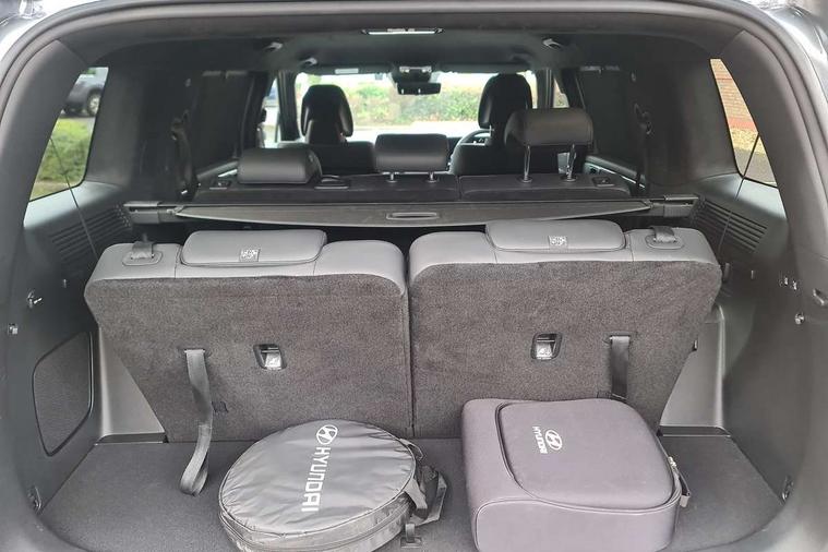 12.3" Drivers supervision instrument cluster with LCD display, 360 degree parking sensors, Blind spot collision avoidance assist (BCA), Blind spot view monitor (BVM), Bluelink and Wireless Apple Carplay/Android Auto, Bluetooth connectivity with voice recognition, Drive mode selector, Driver status monitor (DSM), Dual wireless phone charging pad, Emergency services call system, Forward collision avoidance assist (FCA 2.0), Head up Display, Highway drive assist 2 (HDA 2), Intelligent speed limit assist (ISLA), Lane departure warning system (LDW), Lane Follow Assist 2 (LFA 2), Lane keeping assist (LKA), Low washer fluid warning, Navigation based smart adaptive cruise control with stop and go, Over the air software updates (OTA), Parking Collision Avoidance Assist-Reverse (PCA-R), Power assisted steering, Remote smart parking assist, Safe exist assist (SEA), Smart electric tailgate with hand's free opening function, Surround view monitor, Self levelling suspension, Shift by Wire Gear Selector (SBW), 12.3" Touchscreen display with satellite navigation, 2nd Row USB C Ports x2 Charging, 3rd Row USB C Ports x2 Charging, Front USB C port 1 charging and 1 data/charging, Premium BOSE sound system with 12 speakers and subwoofer, Steering wheel audio, phone and cruise controls, Automatic headlights with dusk sensor, Automatic windscreen wipers with rain sensor, Black Styling (Skid plate, Fender upper garnish, Door side garnish, C/D pillars, Rear bumper moulding, DLO), Body colour bumpers, Digital centre mirror, Dynamic welcome lights, Electric adjustable/heated/auto power folding door mirrors, Front and rear electric windows, Heated rear window, Hidden C pillar assist handle, Hidden rear wiper, High beam assist, LED daytime running lights, LED Headlights, LED indicator lights, LED indicators in door mirrors, LED positioning lights, LED taillights, LED third brake light, Manual rear door blinds, Rear side wing doors, Rear windows and tailgate privacy glass, Roof rails, Solar glass windscreen and front windows, Windscreen acoustic film, Windscreen auto defog function, 2nd and 3rd row center armrest with cupholder, 3rd row head restraints, Centre rear head restraint, Driver and front passenger premium relaxation seats, Dual zone climate control air conditioning, Electrically adjustable front seats with 2 way electric lumbar support, Front head restraints, Front seats with memory, Heated front seats, Heated rear seats, Height and reach electrically adjustable steering column, Leather wrapped heated steering wheel, Luggage cover, Luggage hooks, Luggage net, Multi colour LED ambient lighting, Nappa leather upholstery, Rear head restraints, Single front passenger seat, Split folding (50/50) third row seats, Split folding (60/40), sliding and reclining second row seats, Sun Visors with driver and passenger illuminated vanity mirrors, Two front cup holders, UV-C Tray, Ventilated front seats, Trailer wiring pack - Santa Fe, 3 point seatbelts on all seats, Adjustable regenerative braking paddle shifters, Airbag - Front, front side, curtain and centre front airbags, Anti-lock brake system (ABS), Dynamic brake control, Electric parking brake with auto hold function, Electronic Stability Control (ESC), Hill start assist control (HAC), Manual child lock in rear doors, TSA (Trailer Stability Assist), Tyre pressure monitoring system, Immobiliser, Smart Key - Keyless entry with Power On/Off button, Black ink interior decals, 20" Black calligraphy alloy wheels, Tyre mobility kit,