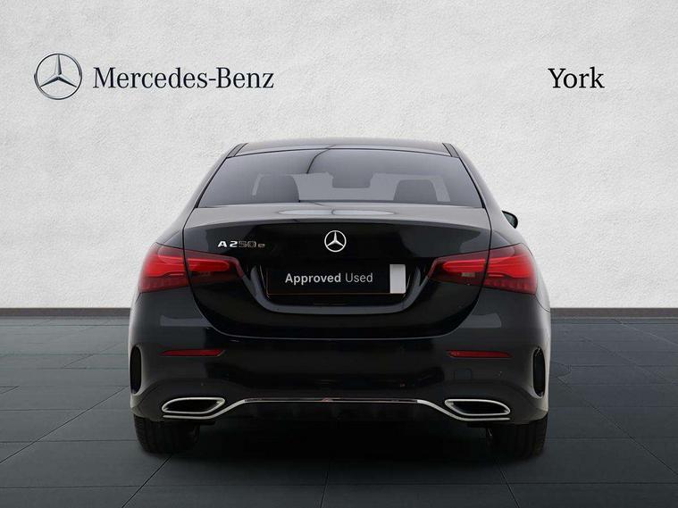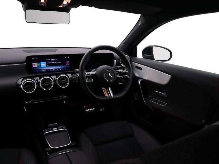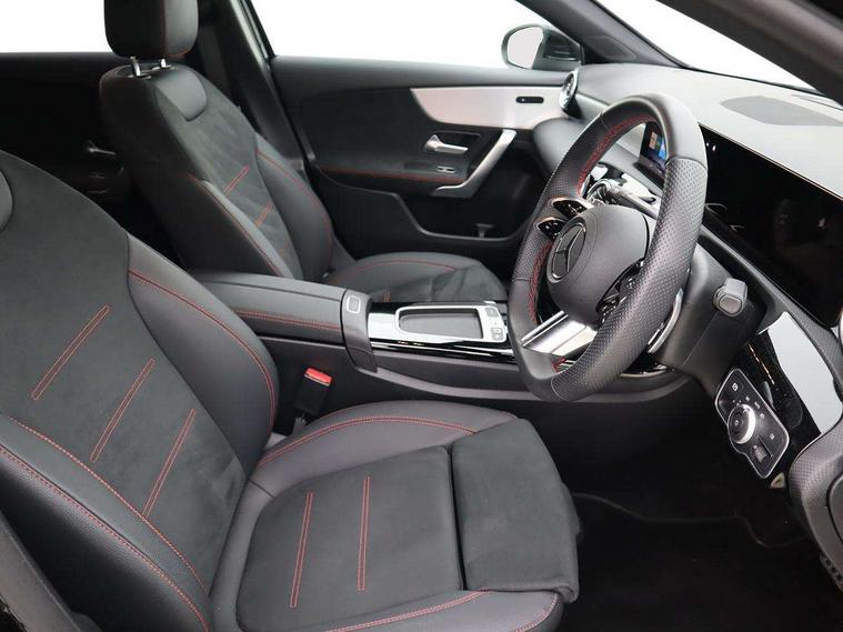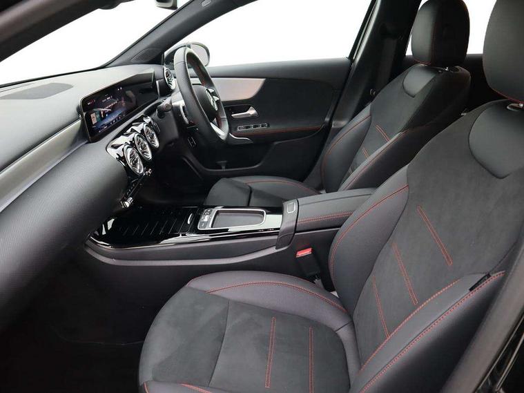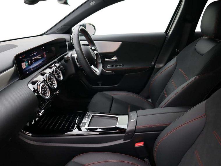 10.25 inch touchscreen central media display, 10.25" Digital instrument cluster display screen, Acoustic ambient protection, Attention assist, Blind spot assist, Brake pad wear indicator warning light, Car wash mode, Cruise control + speed limiter, Direct steering, Direction indicators with lane change function, Dual bluetooth interfaces, DYNAMIC SELECT with a choice of driving modes (ECO, Comfort, Sport and Individual), ECO start/stop function, Engine start/stop button, Fingerprint scanner, Fluid level warning indicator for fuel, oil, coolant and washer fluid, Fluorescent jacket for driver, Hard-disk navigation, Hey Mercedes Voice activation, Lamp failure indicator, Lane keeping system, Mercedes me connect including emergency call system, accident recovery, breakdown and maintenance management, Mercedes me remote services, Outside temperature gauge, Owners manual in English, Pre-installation of private car share, Remote and charging services plus, Remote boot closing, Service indicator (ASSYST), Smartphone integration with Apple CarPlay and Android auto, Speed limit assist, Speed sensitive power steering, Trip computer in multifunction display with current consumption indicator, Wireless charging, Charging system - AC charging system rated at 11kW, Charging system - DC charging system rated at 22 kW, Comfort suspension, Mode 2 charging cable for domestic socket with 5m up to 1.8kW, Mode 3 charging cable for wallbox and public charging stations with 4m upto 22 kW, DAB Digital radio, MBUX multimedia system, Mercedes Benz sound system (100 W) with 6 speakers, 4 Electric Front and Rear windows, Adaptive brake lights, AMG body styling - AMG front apron with front splitter and AMG rear apron and visible exhaust tailpipe trim elements, Body colour bumpers, Body colour door handles with chrome inserts, Body colour side skirt, Chrome beltline strips, Diamond radiator grille with pins in fine star pattern, Electric adjustable and heated door mirrors with integrated LED side indicators, EQ Hybrid badging, Exhaust system with 2 visible tailpipe trim elements and rear apron, Headlamp assist automatic headlamp activation, Heated glass rear windscreen + timer control, LED High Performance headlamps including integral LED daytime running lamps and adaptive highbeam assist, LED tail lamp, Privacy glass, Radio aerial, Rain sensing windscreen wipers with two sensitivity settings, Rear boot, Rear fog lights, Rear side wing doors, Third brake light featuring LED technology, Window line trim strip in chrome, 3 seat bench in 2nd row, 3 Spoke flat bottom leather multi function steering wheel with perforated leather in grip area, 4 way lumbar support, 40:20:40 split folding rear seats, Air conditioning - One zone THERMATIC automatic climate control with automatically controlled air distribution, AMG floor mats, Artico man-made leather/Microcut microfibre upholstery, Automatic child seat recognition sensor, Black air vents with surround in silver chrome, Black roof lining, Brushed stainless steel sports pedals with rubber studs, Charging socket, Front centre armrest with stowage, Front door sills with Mercedes Benz lettering, Front seat backs luggage nets, Front sports seats with adjustable head restraints, Galvanished gear shift paddles on steering wheel, Heated front seats, Height/reach adjustable steering column, Interior lighting - 64 colour Ambient lighting, Interior mirror with reading lamps in black and frameless, Pre-entry climate control, Rear armrest with 2 cupholders, Rear head restraints, Seat occupancy sensor for front passenger seat, Single front passenger seat, Stowage compartment in centre console with retractable cover, Sunvisors with illuminated vanity mirrors, Twin front cupholders, Keyless go comfort pack - A Class, Light and sight package - A Class, Mirror package - A Class, Parking pack with 180 degree view - A Class, Seat comfort pack - A Class, USB pack plus - A Class, 3 rear 3 point seatbelts, ABS with Brake Assist, Active bonnet, Active brake assist includes forward collision warning system with autonomous braking, Adaptive brake assist with hold function and hill start assist, Black seatbelts, Bonnet with power domes, Childproof locks manually operated for rear doors and electrically operated for rear power windows, Crash responsive emergency lighting, Driver and passenger head and side airbags, Drivers knee airbag, Dual stage driver/passenger airbags, Electronic parking brake, ESP curve dynamic assist, ESP with ASR, Front and rear seatbelt reminder, ISOFIX and top tether child seat fixing points in two outer rear seats, Perforated front brake discs, Radar based regeneration, Tyre pressure monitoring system, Warning triangle and first aid kit, Window airbags, Alarm system/interior protection/immobiliser, Guard 360 degree vehicle protection, Remote central locking and crash sensor with emergency opening function, Light longitudinal grain aluminium trim, 18" AMG 5 twin spoke light alloy wheels, aerodynamically optimised, painted in black with high sheen finish, Summer tyres, Tirefit sealant kit,