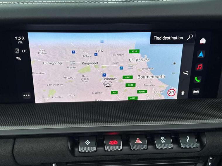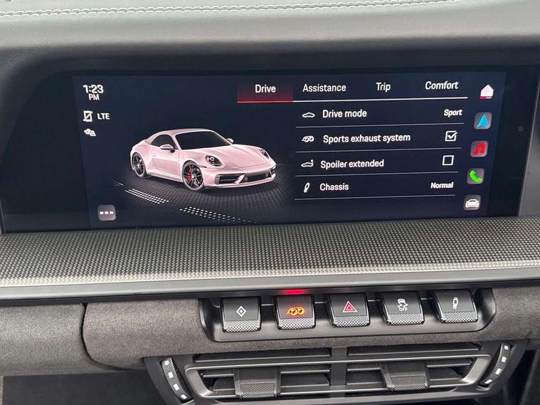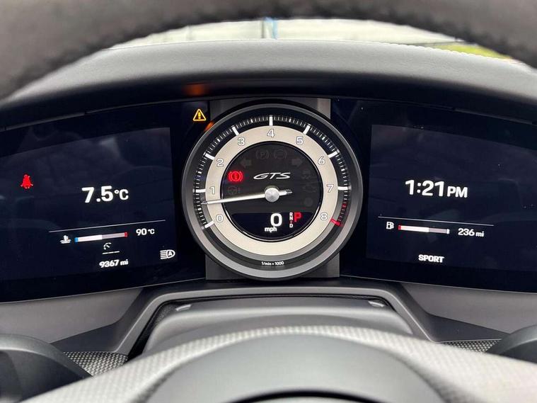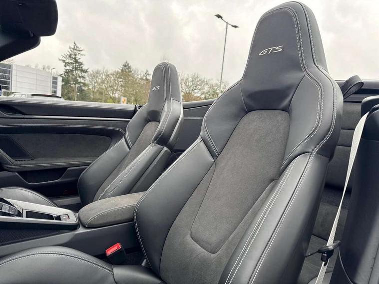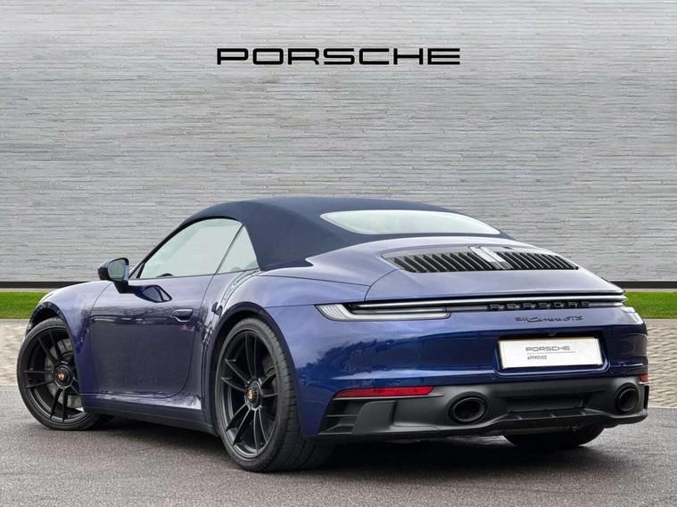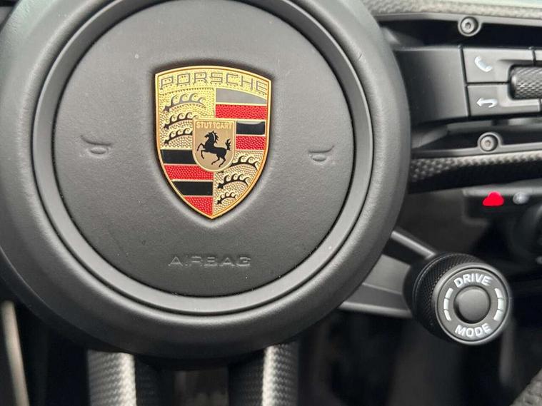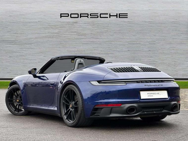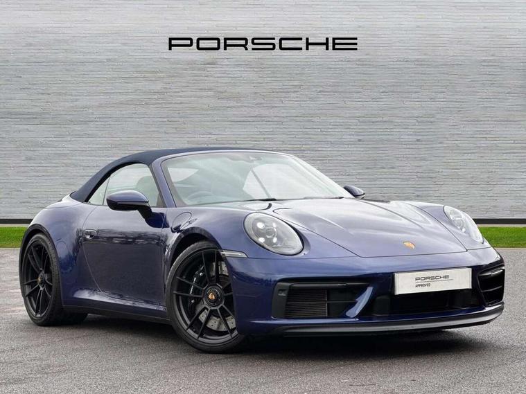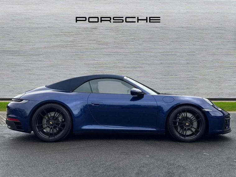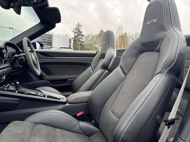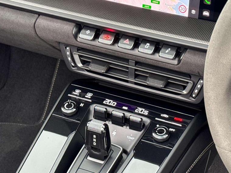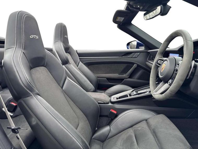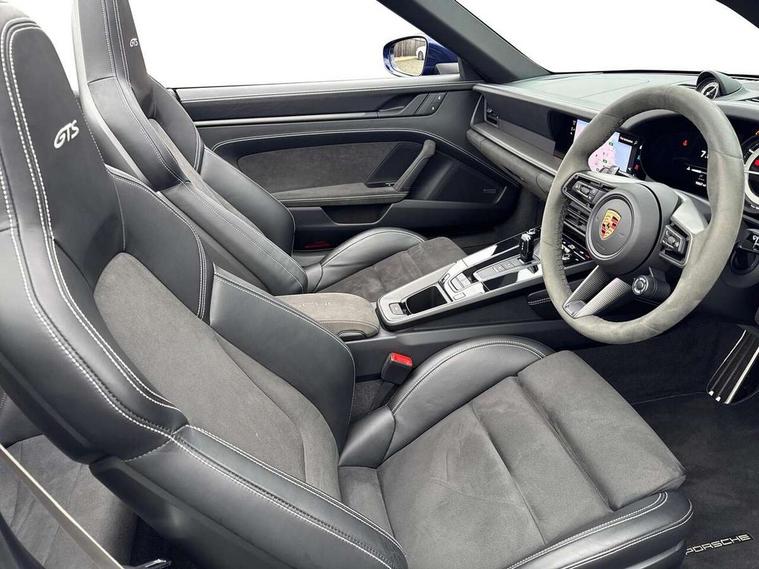 10.9 inch centre display, Automatic start/stop system, eCall emergency system, Gear indicator in rev counter, Instrument cluster with central analogue rev counter and two 7-inch TFT displays, Porsche Communication Management (PCM) including online navigation module, mobile phone preparation, audio interfaces and voice control system, Service indicator, Smartphone integration with Apple CarPlay and Android auto, Stationary management with HOLD function, Trip computer, Warn and brake assist including pedestrian protection, 8 Speed Porsche Doppelkupplung (PDK) with dual mass flywheel, Aluminium block and cylinder heads, Catalytic converters, Direct fuel injection (DFI), Dry sump lubrication, Expansion intake manifold, Four valve per cylinder, McPherson-strut suspension with anti-roll bar at front, Porsche Stability Management (PSM), ABS with extended brake functions, Porsche Torque Vectoring Plus (PTV Plus) inc electronically regulated rear differential lock and fully variable torque distribution, Rear wheel drive, Twin turbocharger intercooled, Two gasoline particulate filter, VarioCam Plus variable valve timing and switchable valve lift, Water-cooled engine with thermal management, 4 valves per cylinder, 2 USB-C connectivity and charge ports in the centre console storage compartment, DAB Digital radio, 3rd brake light, Auto deploying rear spoiler, Automatic headlight activation including welcome home lighting, Automatically dimming interior and exterior mirrors with integrated rain sensor, Body coloured bumpers, Fully automatic fabric hood, electrically operated heatable glass rear screen, operable approx 31mph and convenient operation by key remote, Green tinted heat insulating glass, Heated rear windscreen, Integral electrically powered wind deflector, Intelligent lightweight body in Aluminium/Steel composite construction, LED auxiliary light units in the front end with position lights, direction indicators and side indicators, LED daytime running lights, PORSCHE black lettering integrated in taillight strip, Power rear side windows, Power windows with one touch operation and door seal protection, Rear boot, Rear lid grille with vertical slats in satin black, Side skirts trim in black, Trims on sideskirts in black, Windscreen washer system with aero wiper blades and washer jets, 12V socket in front passenger footwell, 2 individual seats in 2nd row, 2+2 seater with rear engine, Ascending centre console with storage compartment, Black race-tex on steering wheel rim, seat centres, door handles, door panel armrests, gear lever, centre console storage compartment lid partially, Driver and front passenger illuminated vanity mirrors, Front and rear head restraints, Heated front seats, Hood lining in black fabric, ISOFIX child seat mounting points on passenger seat, LED door lights, LED footwell lights, LED glove compartment lighting, LED ignition light, LED luggage compartment lighting, LED orientation light, LED reading lights, Lockable glove compartment, Luggage compartment lid release, Particle/pollen filter with active carbon filter, Single front passenger seat, Split folding rear seats, Storage compartments in each doors, Two individual cupholders 1x as inlet in centre console and 1x passenger side, Two zone auto climate control with separate temperature settings for driver/front passenger, automatic air recirculation mode incl air quality sensor, Sport Design pack - 911 GTS, 6 piston aluminum monobloc fixed front calipers and 4 piston aluminum monobloc fixed rear calipers with cross-drilled, internally vented brake discs, Auto deploying roll over protection system, Electric parking brake, Electromechanical power brake, Full size two stage airbags for driver and front passenger, Pedestrian protection, Porsche side impact protection system (POSIP) includes side impact protection in doors, head/thorax airbags for driver and front passenger, Tyre pressure monitoring system, Dashcam prep, Engine immobiliser with remote central locking and alarm system with ultrasonic sound based interior surveillance, Porsche vehicle tracking system (PVTS Plus), Tyre sealing compound and electric air compressor kit,