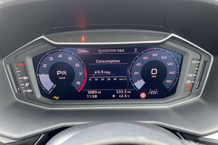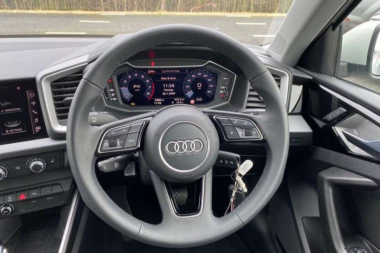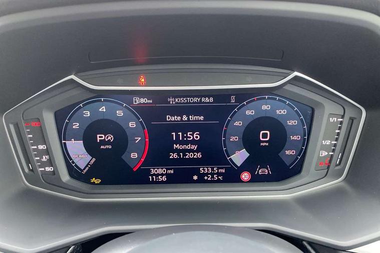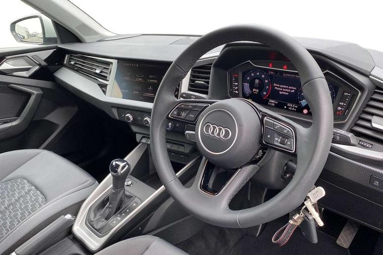 10.25" Digital instrument cluster display screen, Audi connect safety emergency and service including E-call, Audi drive select, Audi smartphone interface, Automatic start/stop system, Bluetooth interface, Driver's information system, Electromechanical power steering, Lane departure warning system, Service interval indicator, Speed limiter, Voice control system, Washer fluid level indicator, Dynamic suspension, 1 x SDXC card reader, 1 x USB type C and 1 USB type A charging points, Audi music interface, Bluetooth audio streaming, DAB Digital radio, MMI radio plus with 8.8" colour MMI display screen and MMI touch, Adaptive brake lights, Auto dimming rear view mirror, Body coloured bumpers, Body coloured door mirrors, Electric front and rear windows, Front side air inlets in grained matt black and C frame in titanium black, Heat insulating glass windscreen and side windows, Heated rear windscreen, LED headlights with LED rear lights + dynamic rear indicators, Radiator grille in matt titanium black, Radiator protective grille frame in matt aluminium silver, Rain and light sensors, Rear fog lights, Rear wiper, Side front spoiler lips in grained matt black, Titanium black matt diffuser, 12V socket in centre console with two cup holders, 3 rear seats, Door sills trims with aluminium inlays, Driver and passenger seat with manual height adjust with forward and backwards adjustment, Front head restraints, Front/rear floor mats, Height and reach adjustable steering wheel, Illuminated glovebox, ISOFIX child seat mounting in front passenger and rear outer seats, Leather gear knob with aluminium trim, Leatherette handbrake grip, Luggage compartment light with front and rear reading lights, Lumbar adjustment for front seats, Novum cloth upholstery with front sport seats, Rear head restraints, Split folding rear seats, Titanium grey cloth headlining, 3x3 point rear seatbelts, Audi pre-sense front with pedestrain and cyclist recognition, Brake assist function, Driver and front passenger airbag with front side and head airbags, Electronic Stability Control including ABS, EBD, ASR and EDL, Front and rear seatbelt reminder, Front passenger airbag deactivation switch, Hill hold assist, Seatbelt height adjustment for front seats, Seatbelt monitoring, Tyre pressure warning light, Warning triangle and first aid kit, Anti theft alarm, Anti theft wheel bolts and loose wheel warning, Immobiliser, Remote central locking with 2 remote folding keys, Aluminium trim for control switches, air vents and digital instrument cluster, Silver grey accent areas including air vents, door handle recesses and centre console in diamond paint finish, Slate grey inlays polygon structure in fine paint finish,