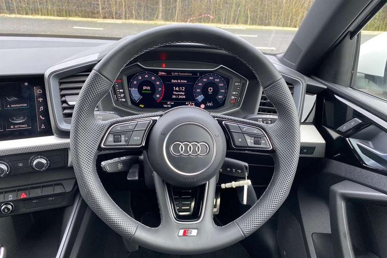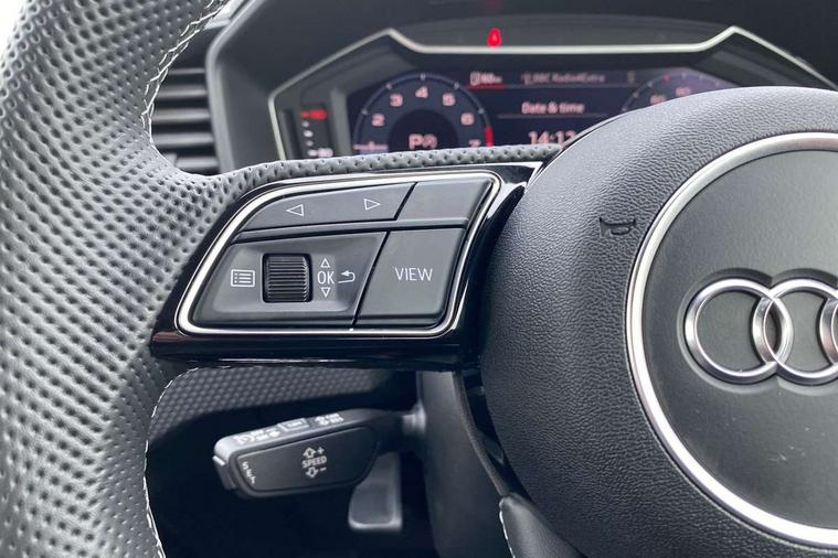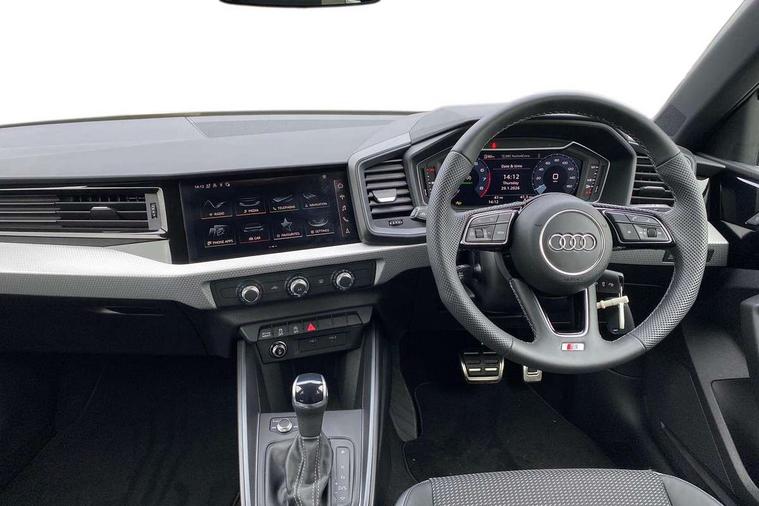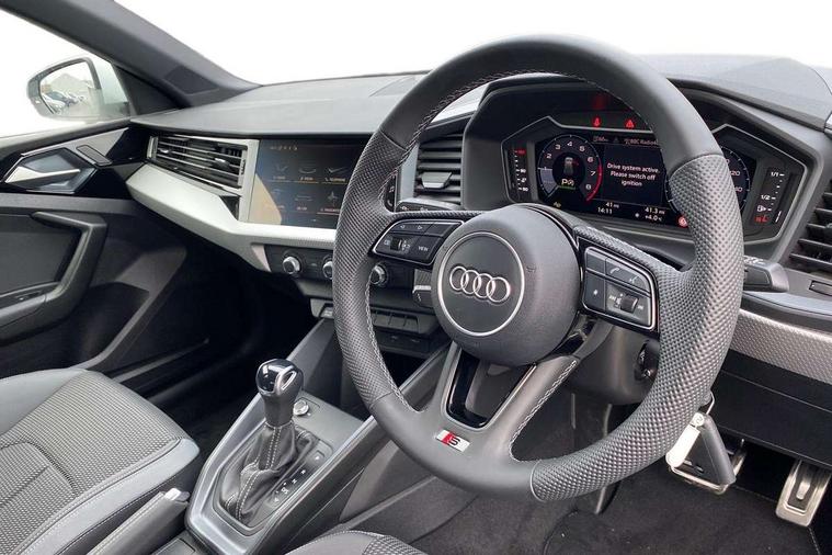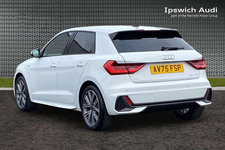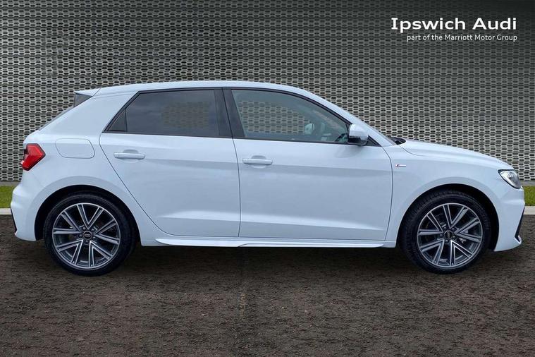 10.25" Digital instrument cluster display classis style instrument dials + speed, odometer, time, outside temperature, telephone menu + fuel level warning, Advanced driver attention and drowsiness monitor, Audi connect emergency call and service, Audi drive select, Audi remote connect and control, Audi smartphone interface, Bluetooth interface, Camera based traffic sign recognition, Cruise control, Driver's information system, Electromechanical power steering, Lane departure warning system, Rear parking sensor, Service interval indicator, Speed limiter, Start stop system with recuperation, Voice control system, Washer fluid level indicator, Sports suspension, 2 x USB type C connection points, 6 loudspeakers, DAB Digital radio, MMI radio plus with 10.1" colour MMI display screen and MMI touch, Auto dimming rear view mirror, Body coloured door mirrors, Door sill trims with aluminium inlays and S line logo in front, Electric front and rear windows, Electrically adjustable, heated, folding door mirrors with integrated LED side indicator, Front side air inlets in grained matt black and C frame in anthracite black, Headlight cleaning system, Heat insulating glass windscreen and side windows, Heated rear windscreen, High level LED brake light, LED daytime running lights, LED headlights with range control LED rear lights + dynamic rear indicators, Light and rain sensors, Privacy glass, Radiator grille and rear diffuser in matt anthracite black, Radiator protective grille frame in matt aluminium silver, Rear fog lights, Rear side wing doors, Rear wiper, S line badges on front wings, Side front spoiler lips in grained matt black, 12V socket in centre console with two cup holders, 3 rear seats with headrests, 3 seat bench in 2nd row, 3 spoke leather multi-function plus steering wheel features S badging and grips in perforated leather with contrast stitching, 40:60 Split folding rear seat or fully collapsed, Black cloth headlining, Front and rear velour black floor mats with contrast stitching in fine silver, Front head restraints, Front passenger seat, Height and reach adjustable steering wheel, Interior lighting includes roof module, front and rear reading lights and right luggage compartment lighting, ISOFIX child seat mounting for front passenger and outer rear seats including top tether attachment point of outer rear seats, Leather gear knob with aluminium trim, Leather handbrake grip, Manual air conditioning, Manual height adjustable for driver and front passenger seat, Manually adjustable lumbar support in front seats, Stainless steel pedals, Ambient lighting package - A1, Luggage compartment pack - A1, S line exterior styling pack - A1 Sportback, 3x3 point rear seatbelts, Audi pre-sense front with pedestrain and cyclist recognition, Brake assist function, Driver and front passenger airbag with front side and head airbags, Electronic Stability Control including ABS, EBD, ASR and EDL, Front passenger airbag deactivation switch, Hill hold assist, Manual rear child locks, Seatbelt height adjustment for front seats, Seatbelt monitoring, Tyre pressure loss indicator, Warning triangle and first aid kit, Anti theft alarm, Anti theft wheel bolts, Immobiliser, Remote control key with safelock, Aluminium trim for control switches, air vents and digital instrument cluster, Black dashboard, Silver grey inlays polygon structure in diamond paint finish, Structured grey accent surfaces insert of air vents, interior door handle recesses and centre console in quartz paint finish,