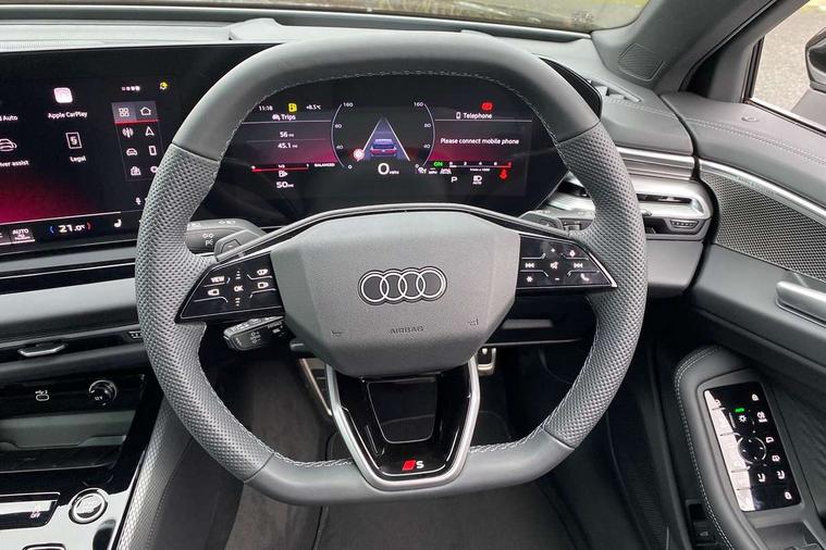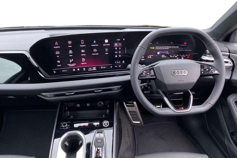 Audi application store, Audi assistant, Audi connect emergency call and service, Audi connect with Amazon Alexa Integration, Audi digital key, Audi drive select, Audi phone box with wireless charging, Audi virtual cockpit, Automatic start/stop system with coasting functionality, Bluetooth interface, Luggage compartment lid with Electric opening / closing, MMI navigation plus with high resolution 14.5" OLED touchscreen colour display, Power assisted steering, Service interval indicator, Smartphone interface includes wireless Apple carplay/Android Auto, Voice control system, Sports suspension, Audi sound system impressive sound with 10 loudspeakers including centre speaker and subwoofer, 6-channel amplifier with a total output of 180 watts, DAB Digital radio, USB ports with charging function, Aluminium roof rails, Audi Matrix LED technology, Auto dimming rear view mirror, Automatic-dynamic headlight range control, Body colour door mirrors, Body coloured door handles, Dipped beam, main beam, position light, dynamic indicator and cornering light, Door mirrors - electrically adjustable, heated, folding and auto dimming on both sides, Dynamic light scenarios of the coming home/leaving home function when stationary, Electric front/rear windows, Frameless auto dimming interior rear view mirror, Front illuminated door sill trims with aluminium inlay, Headlight cleaning system, LED headlights Plus incl. digital daytime running lights, turning light, all-weather light, motorway light, manouevring light and intersection light, LED rear lights pro incl. brake lights, tail lights, rear number plate lights, reversing lights, continuous light strip, LED third brake light, Privacy glass, Rain and light sensors, Rear and side windows with heat insulating glass, Rear side wing doors, Rear wiper, Roof spoiler, S line exterior styling, Sport exterior inc Radiator grille, air inlets and diffuser in scandium grey as well as inlay in diffuser in selenite silver, Towbar preparation, White rhombus logo projection light in exterior mirrors, Window trim strips in aluminium look, Windscreen with heat insulating and acoustic glazing, 3 seat bench in 2nd row, 3-spoke Sport leather steering wheel flat top and bottom with multifunction and shift paddles, 4 way electric lumbar support for driver and front passenger, 4 zone deluxe automatic climate control, 40:20:40 split folding rear seat bench with centre armrest and cup holders, Black front and rear floor mats, Centre armrest, front- adjustable angle with four settings, Electrically adjustable front seats, Front head restraints, Heated front seats, i-Size child seat mounting on the front passenger side and outer rear seats, i-Size and top tether on the outer rear seats, Manual steering wheel adjustment, Net partition, Rear headrests, Single front passenger seat, Sport front seats, Stainless steel pedals and footrest, Steering wheel trim in chrome look, S emblem, steering wheel grips in perforated leather and contrasting stitching, Twin leather/artificial leather upholstery, Ambient lighting package plus - A6, Drive and Park assistance package - A6, Protective warning assistance package - A6, 3x3 point rear seat belts, Black seat belts, Convenience key with safelock, Driver and front passenger airbags, EBD - Electronic brakeforce distribution, Electric rear child safety lock, Electromechanical parking brake, Electronic Stability Control (ESC) including ABS, ASR and EDL, First aid kit with warning triangle and vests, Front passenger airbag deactivation, Seatbelt monitoring, Side airbags front with head airbag system and interaction airbag, Standard 18"steel disc brakes front and rear, Tyre pressure monitoring system, Anti theft alarm, Anti-theft wheel bolts, Immobiliser, Keyless Go, Remote central locking, Inlays in matt brushed aluminium with linear embossing, anthracite, Upper and lower interior elements in leatherette with contrasting stiching, Wraparound interior elements in artificial leather, Tyre repair kit,