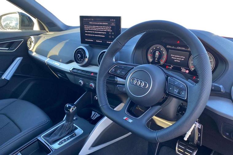 Audi connect navigation and infotainment includes innovative services, Audi connect remote and control connects your vehicle to your smartphone, Audi drive select, Audi smartphone interface, Audi virtual cockpit, Automatic start/stop system with recuperation, Bluetooth interface includes bluetooth audio streaming, Cruise control, MMI navigation plus with MMI touch, Power operated tailgate, Progressive steering, Rear parking sensors, 2 x SDXC card reader, 8 passive loudspeakers, DAB Digital radio, DVD Drive, Auto dimming rear view mirror, Black window trims, Body colour door mirrors, Brilliant black exterior mirror caps, Bumper in full body colour paint finish, Electrically adjustable, auto dimming and heated door mirrors with integrated LED side indicators, Front windscreen with grey tinted sunband, Privacy glass - dark tinted rear and rear side windows from B-pillar backwards, Wheel arch trims in manhattan grey, 3 spoke flat bottomed multi-function leather sport steering wheel with gear shift paddles, 4-way electric lumbar support for front seats including seat height adjustment for both front seat, 60/40 split folding rear seat bench, Black cloth headlining, Electronically operated child locks, Front and rear head restraints, Front centre armrest, Front/rear floor mats, Height/reach adjust steering wheel, Illuminated door sill trims with S logo, ISOFIX child seat mounting for front passenger with airbag deactivation and outer rear seat including top tether attachment point for outer rear seats, Stainless steel pedals, Tool kit, Black styling pack - Q2, 3x3 point rear seatbelts, 6 airbags - Front, curtain and front side airbags, Electromechanical parking brake, Electronic stabilisation control including ABS, ASR and EDL, Hill hold assist, Pre-sense front with pedestrian recognition, Seatbelt monitoring, Tyre pressure warning light, Warning triangle and first aid kit, Anti theft alarm, Anti theft wheel bolts, Aluminium interior element, Matt brushed aluminium trim inlays,
