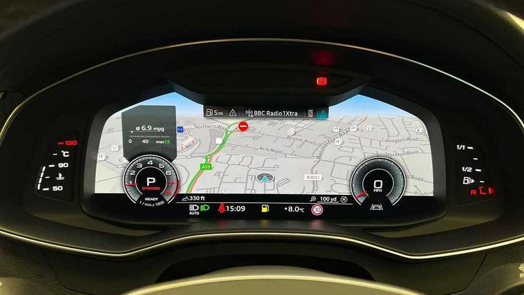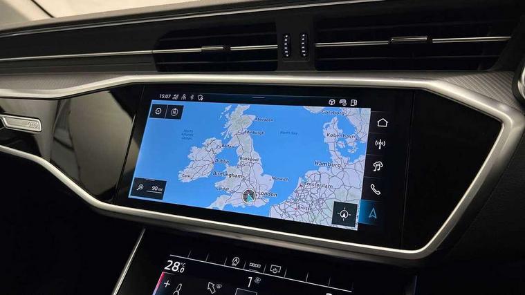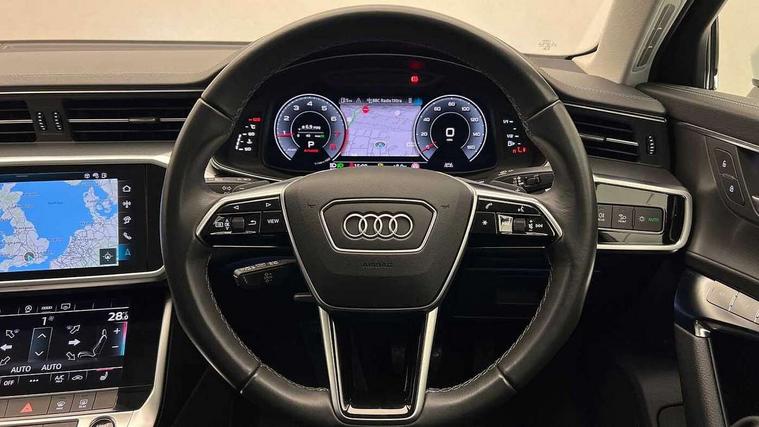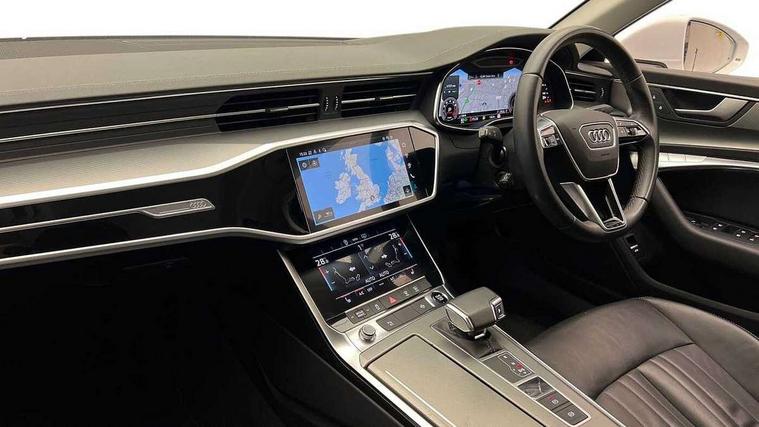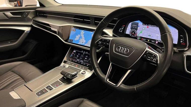 Audi connect safety and service (e-call), Audi connect with Amazon Alexa Integration, Audi drive select, Audi parking system plus - acoustic and visual park assist system for front and rear, Audi virtual cockpit, Automatic start/stop system with coasting functionality, Bluetooth interface, Camera based traffic sign recognition, Cruise control + speed limiter, Electric boot lid release, Lane departure warning system, MMI navigation plus with 10.1" and 8.6" touch screens, Progressive steering, Rear view camera, Service interval indicator, Smartphone interface includes wireless Apple carplay/Android Auto, Voice control system, Standard suspension, Audi front music interface, Audi sound system, Auxiliary input socket, DAB Digital radio, USB connection, Body coloured door mirrors, Daytime running lights, Electric front/rear windows, Electrically adjustable heated and folding + automatically dimming exterior mirrors with memory function, Frameless auto dimming interior rear view mirror, Front intermittent wipers, Heat insulating darkened glass in side and rear windows, Heat insulating glass in windshield, LED rear lights with dynamic indicators, LED third brake light, Matrix LED headlights, Matt black rear diffuser with diffuser strip and tailpipes in chrome, Matt black side air intake grille with inlay in matt aluminium, Privacy glass, Radiator grille in anthracite black matt, single frame in chrome and horizontal struts in matt aluminium silver, Rain and light sensors, Rear boot, Rear side wing doors, 2 zone deluxe electronic climate control, 3 spoke high multi-function leather steering wheel with shift paddles, 40/20/40 split folding 3 rear seat bench in 3 parts with rear centre armrest, Audi phone box light, Door sill trims with aluminium inlay, Electrically adjustable front seats including seat height, fore/aft position, backrest angle and 4-way lumbar with memory for driver's seat, Front and rear floor mats, Front centre armrest, Front head restraints, Heated front seats, Height/reach adjust steering wheel, Illuminated sun visors with vanity mirrors, Leather gear knob, Lunar silver cloth headlining, Rear headrests, Single front passenger seat, Tool kit and car jack, Twin leather upholstery, LED Interior Ambient Lighting Pack - A6, Non smoking pack - A6, 3 point seatbelts on all seats, Airbags - Front side, front and rear including head, Audi pre-sense front, EBD - Electronic brakeforce distribution, Electromechanical parking brake, Electronic Stability Control (ESC) including ABS, ASR and EDL, Extended pedestrian protection measures, ISOFIX child seat mounting for front passenger seat and ISOFIX child seat mounting with Top Tether for outer rear seats, Manual child proof rear door locks, Seatbelt monitoring, Tyre pressure warning light, Warning triangle and first aid kit, Anti theft alarm with tow away protection, Anti-theft wheel bolts and wheel loosening detection, Immobiliser, Keyless Go, Remote central locking, Aluminium fragment inlay, 18" 5 arm design cast aluminium alloy wheels,