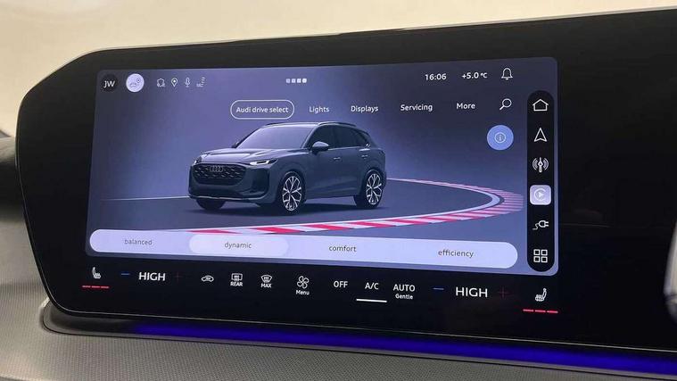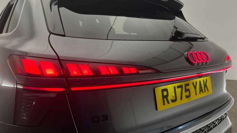 Adaptive cruise control, Audi connect emergency call and service, Audi connect remote and controls, Audi drive select (Balanced/Individual, effeciency, comfort and dynamic), Audi virtual cockpit plus - 11.9" display, Bluetooth interface, Camera based traffic sign recognition, Driver attention and fatigue monitor with driver monitoring, Front cross traffic assist, Lane departure warning with emergency assist, Panoramic curved display with 12.8" MMI navigation plus and MMI touch, Park assist plus with parking system and 360 display, Phonebox light with wireless charging, Reversing camera, Smartphone interface includes wireless Apple carplay/Android Auto, Start/stop system, Swerve assist and turn assist, Traffic sign based speed limiter, Voice control system with natural language interaction, 3 pin 10 amp domestic charging cable, Charging socket CCS type 2, Comfort suspension, Compact charging system, Industrial connector CEE 32A, 230V, Mode 3 charging cable for public charging, 22 KW (AC), Petrol Particulate Filter, 2 USB-C ports with charge and data functions, Audi sound system with 10 loudspeakers, subwoofer, 8 channel amplifier with 260 watts, DAB digital radio module, Acoustic glass for front door windows, Acoustic windscreen, Aluminium roof rails, Aluminium window trim, Audi Q3 lettering on the B-pillars, Auto dimming door mirrors, Auto dimming rear view mirror, Body colour door mirrors, Contrasting finish in volcano grey, Electrically folding, adjustable and heated door mirrors with integrated LED side indicators and kerb view function for passenger side, Full paint finish, Illuminated door sills with aluminium inserts at the front with S logo, LED daytime running lights, LED headlights plus with LED rear lights pro with continous light strip, illuminated Audi rings, rear, LED third brake light, Loading sill protector in stainless steel, Main beam assist, Privacy glass - dark tinted rear window, rear door and side windows, Projection light in the exterior mirrors - Projects a graphic element onto the ground, Q3 badging on the rear, Rain and light sensors, Rear side wing doors, Rear window, rear door windows and rear side windows in clear glass, Rear wiper, Sports bumpers, 3 seat bench in 2nd row, 3 spoke flat top and bottomed leather multi function sport steering wheel with gear shift paddles and "S" badging, 3-zone deluxe automatic air conditioning, 4 way lumbar support for the front seats - electric with horizontal and vertical adjustment in four directions, Black cloth headlining, Convenience auxiliary air conditioning, Front and rear floor mats, Front and rear headrests, Front centre armrest, Heated front seats, Height and reach adjustable steering wheel, Interior storage compartment, Leather/artificial leather upholstery combination with S emblem + front sports seats, Luggage compartment lid, electrically opening and closing, Manual front seats with height adjustment, Rear seat bench plus with split folded 40:20:40, Single front passenger seat, Stainless steel pedals, Steering wheel operating unit, gloss black, Storage compartment in front centre console, Ambient lighting package pro - Q3, S line exterior styling pack - Q3, 3x3 point rear seatbelts, Acoustic vehicle alerting system, Convenience key with safelock, Driver and front passenger airbag with passenger airbag deactivation, Electromechanical parking brake, Electronic stabilisation control including ABS, ASR and EDL, First aid kit with warning triangle and high visibility vests, Front emergency brake assist, Hill hold assist, i - Size child seat mounting on the front passenger side and i - Size and top tether on the outer rear seats, Power operated child locks, Seatbelt monitoring, Three point automatic belts with belt tensioner and height adjustment, Tyre pressure loss indicator, Anti theft wheel bolts, Remote central locking, Thatcham approved category 1 anti theft alarm, Dark aluminium divergence inlay, Interior elements in dinamica microfibre, Interior trims in aluminium look, Tool kit and Jack, Tyre repair kit,
