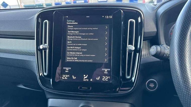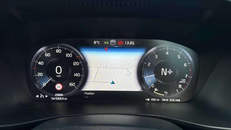12.3" Active TFT crystal driver's instrument display, 9" centre console portrait touch screen, Adjustable steering wheel force, Bluetooth hands free telephone kit, Drive mode selector, Lane keep assist with driver alert control, Oncoming Lane Mitigation, Power operated tailgate, Sensus navigation with European mapping and traffic information, Speed limiter, Speed sensitive steering, Voice activated control for key functions, Volvo on call, Sports chassis, DAB Digital radio, Steering wheel mounted remote controls, Adaptive brake lights with high level LED brake lights, Auto dimming interior mirror, Automatic headlamp levelling, Black stone door mirrors, Black stone roof, Colour coordinated auto folding and heated power door mirrors, Dark tinted windows for rear door side windows and cargo compartment, Dual integrated exhaust pipes with high gloss black surround, Front aluminium tread plates, Front and rear electric windows, High gloss black front and rear skid plate, High gloss black lower front bumper, High gloss black mesh front grille with high gloss black surround, High gloss black roof rails, High gloss black sensus surround deco, High gloss black window trim, Home safe and approach lighting, LED Headlights + Active high beam incorporating daytime running lights, Rain sensor with automatic windscreen wiper activation, Rear side wing doors, Rear wiper, Roof antenna, Roof spoiler, Visible VIN plate, 12V socket in front tunnel console and luggage compartment, 2 zone electronic climate control and rear air vent, 3 seat bench in 2nd row, 60/40 versatile split folding rear seat, A-pillar parking ticket holder, Centre console cupholders and storage, Charcoal headlining, Driver's side lower dashboard credit card storage compartment, Front footwell illumination, Front headrests, Front reading light and theatre lighting, Front seat cushion extensions, Glovebox bag hook, Height/reach adjustable steering column, Illuminated glovebox, Illuminated luggage compartment, Illuminated vanity mirrors, Isofix attachments on outer rear seats, Key integrated remote, Leather gearknob, Load protection net, Multi directional lumbar support, Rear armrest / integral cup holders / storage tray, Rear coat hook, Single front passenger seat, Sports floor mats, Sports pedals, Sports tailored steering wheel, Underfloor cargo storage, 3x3 point rear seatbelts, City safety includes pedestrian, cyclist and large animal detection and front collision warning with full auto brake, Drivers knee airbag, Dual stage driver/passenger airbags, Electronic parking brake with auto hold, First aid kit, Front and outer rear seatbelt reminder and pretensioners, Front seats SIPS airbags, Hill descent control, Hill start assist, Inflatable curtain, Passenger airbag cut-off device, Road sign information display, Run off Road Mitigation, Run off Road Protection, SIPS (Side Impact Protection System), Slippery road and hazard light alert, Stability and Traction Control with Spin control, Engine Drag Control and Corner Traction Control, Tyre pressure monitoring system, Vehicle deceleration control with Anti-lock Brake System, Electronic Brake Distribution and Emergency Brake Assist, Warning triangle, WHIPS whiplash protection system - front, Anti-theft alarm including immobiliser/volume sensor + level sensor, Care key with user defined top speed, Key integrated remote control central locking + fuel flap with deadlocking system and auto open/close power windows, Locking wheel nuts, Private locking for tailgate, Cutting edge aluminium inlay, Lower dashboard, tunnel console and door panel in charcoal,
