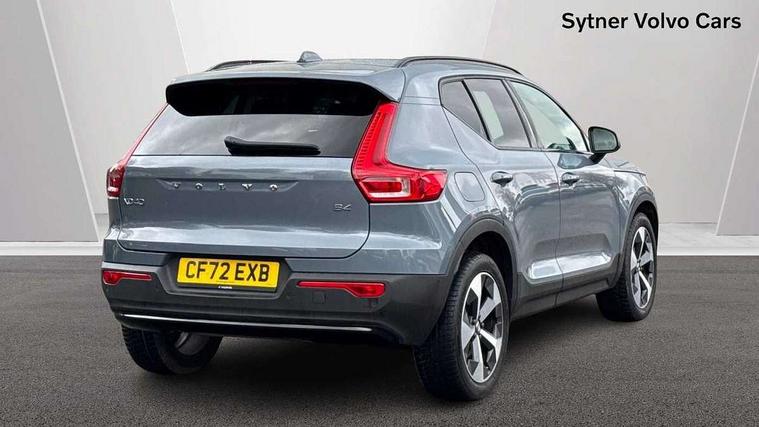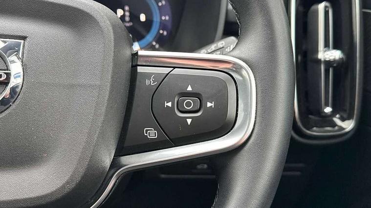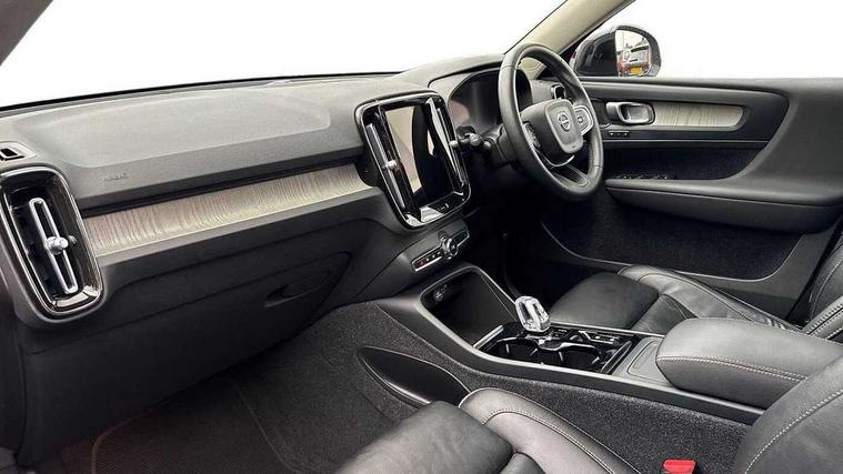 12.3" Progressive Driver Display, 360 degree surround view parking camera with side proximity sensors, 9" centre console portrait touch screen, Adjustable steering wheel force, Bluetooth hands free telephone kit, E-call, Front park assist, Google automatic services - Nav with google maps, apple carplay/android auto, voice recognition with google assistant, Hands free power tailgate, Lane keep assist with driver alert control, Oncoming Lane Mitigation, Rear park assist, Speed limiter, Speed sensitive steering, Wireless/Inductive Mobile Phone Charging, Dynamic chassis, DAB Digital radio, Premium Sound by Harman Kardon, Dolby Pro Logic II Surround Sound, Dirac Unison, 12 speakers/600W and subwoofer, Steering wheel mounted remote controls, Active bending pixel LED headlights with adaptive shadow technology, Active high beam incorporating daytime running lights, Adaptive brake lights with high level LED brake lights, Auto dimming interior mirror, Automatic headlamp levelling, Dark tinted windows for rear door side windows and cargo compartment, Front aluminium tread plates, Front and rear electric windows, Headlight cleaning system, High gloss black front and rear skid plate, High gloss black mesh front grille with high gloss black surround, High gloss black window trim, Home safe and approach lighting, Integrated roof rails in high gloss black, LED front fog lights, Power glass tilt and slide panoramic sunroof with sun curtain, Puddle lights, Rain sensor with automatic windscreen wiper activation, Rear side wing doors, Rear wiper, Roof antenna, Roof spoiler, Visible VIN plate, 12V socket in front tunnel console and luggage compartment, 2-Zone electronic climate control with CleanZone air quality system and pollen filter, 3 seat bench in 2nd row, 3 Spoke tailored steering wheel with chrome trim, 60/40 versatile split folding rear seat, A-pillar parking ticket holder, Ambient front door and instrumental panel lighting, Centre console cupholders and storage, Flexible load floor and grocery bag holder, Floor mats, Front door pocket and front cupholder illumination, Front footwell illumination, Front headrests, Front reading light and theatre lighting, Front seat cushion extensions, Front tunnel pocket, Glovebox bag hook, Heated front seats, Height adjustable passenger seat, Height/reach adjustable steering column, High gloss centre tunnel deco, Illuminated glovebox, Illuminated luggage compartment, Illuminated tailgate, Illuminated vanity mirrors, Integrated waste bin, Isofix attachments on outer rear seats, Load protection net, Multi directional lumbar support, Power driver seat with memory + exterior mirrors memory, Power folding rear headrests, Power passenger seat, Rear armrest / integral cup holders / storage tray, Rear reading and courtesy lights, Single front passenger seat, Underfloor cargo storage, Climate pack without heated front seats - XC40, Driver assist pack - XC40, 3x3 point rear seatbelts, City safety with steering support with Pedestrian + cyclist + front collision warning with full auto brake and rear auto brake, Drivers knee airbag, Dual stage driver/passenger airbags, Electronic parking brake with auto hold, First aid kit, Front and outer rear seatbelt reminder and pretensioners, Front seats SIPS airbags, Hill descent control, Hill start assist, Inflatable curtain, Passenger airbag cut-off device, Power child locks on rear doors, Road sign information display, Run off Road Mitigation, Run off Road Protection, SIPS (Side Impact Protection System), Slippery road and hazard light alert, Stability and Traction Control with Spin control, Engine Drag Control and Corner Traction Control, Tyre pressure monitoring system, Vehicle deceleration control with Anti-lock Brake System, Electronic Brake Distribution and Emergency Brake Assist, Warning triangle, WHIPS whiplash protection system - front, Anti-theft alarm including immobiliser/volume sensor + level sensor, Key integrated remote control central locking + fuel flap with deadlocking system and auto open/close power windows, Keyless drive includes keyless entry and keyless start, Locking wheel nuts,