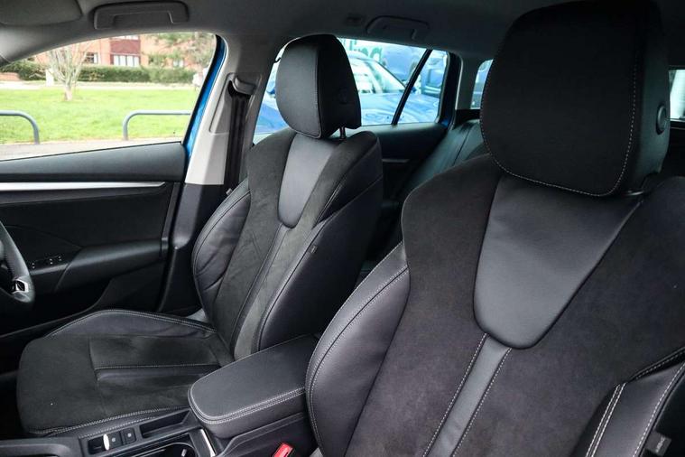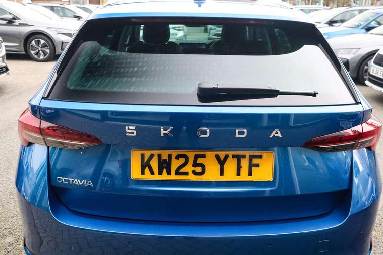 1x USB Typc C port in rear view mirror, 4x USB Type C ports - 2x in front centre console and 2x in rear (45W), Drive mode selection, Driver fatigue sensor, eCall emergency system, Electro-mechanical power steering, Front assist system, Traffic jam assist, Traffic sign recognition, Turn Assist, Virtual Cockpit - 10.25" digital display, Voice control system, Wireless charging (15W) with cooling function, Wireless SmartLink for Apple CarPlay and Android Auto, 13" touchscreen display with navigation, DAB Digital radio, Aero front windscreen wipers with intermittent function, Auto dimming rear view mirror, Body colour bumpers, Body colour door mirrors and handles, Chrome grille surround, Chrome roof rails, Chrome strip in lower front bumper, Chrome window surrounds, Electric front and rear windows, Heated rear windscreen, High level third brake light, Ice scraper in fuel cap, LED daytime running lights, LED Headlights, Logo projection in front doors, Rain and light sensors, Rear fog light on one side, Rear privacy glass, Rear side wing doors, Rear spoiler, Rear window wiper, 12 volt socket in boot, 3 rear headrests, 3 seat bench in 2nd row, 4 foldable roof handles, Electric auxiliary air heater, Front head restraints, Heated front seats, Illuminated glovebox, Interior door handles in dark chrome, Jumbo Box storage, Luggage compartment lighting x2 lights, Mechanical rear seat release from boot, Single front passenger seat, Steering wheel in black leather with black stitching, Storage compartments in left and right of boot, Sun visors with mirrors, Sunglasses storage, Ticket holder, Umbrella in door panel, Unsplit rear bench seat, split folding backrest with centre armrest with cupholder, Comfort package - Octavia Estate, Simply clever package premium with Storage compartment under passenger seat - Octavia, 3x3 point rear seat belts, Alarm with interior monitoring, tilt sensor and back up horn, Curtain airbags and front side airbags, Driver and front passenger airbags, Drivers knee airbag, Electronic parking brake, ESC including ABS, EBV, MSR, ASR, EDS, HBA, DSR, Front central airbag, Hill hold assist, ISOFIX on front passenger seat and outer rear seats, Passenger airbag deactivate switch, Three point seat belts in front and rear, Two tone horn, Tyre pressure monitor, Visual and acoustic seat belt reminder, Warning reflectors in front door, Anti-theft wheel bolts, Keyless start/stop, Remote central locking, Chrome air vent surrounds,