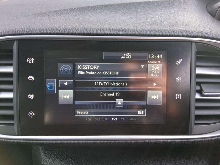 Colour satellite navigation, Front parking sensors, Rear parking sensor, Service interval indicator, Touch screen display, Trip computer, DAB Digital radio, Peugeot connect with USB and bluetooth, Steering column mounted multifunction controls, Automatic front rain sensing wipers, Automatic headlights, Body colour door mirrors, Body coloured bumpers, Colour coded door handles, Electric adjustable door mirrors, Electric folding door mirrors with courtesy approach lighting, Electric front windows/one touch facility, Electric rear windows, Electrochrome rear view mirror, Follow me home headlights, Halogen front foglights, Intermittent rear wash/wipe, LED daytime running lights, LED Headlights, LED rear lights, Tinted rear windows, Tinted rear windscreen, 12V accessory power point in centre console, 60/40 split folding rear seat back and squab, Adjustable front centre armrest, Dual zone automatic air conditioning, Front headrests, Front seat back map pockets, Height adjustable passenger seat, Height/reach adjust steering wheel, Isofix on 2nd row rear seats, Leather steering wheel and gearshift, Rear headrests, 3x3 point rear seatbelts, ABS/EBFD/EBA, Driver SMART airbag, Electronic parking brake, ESP with Hill Assist, Front and rear curtain airbags, Front passenger SMART airbag with deactivate switch, Front side airbags, Deadlocks, Locking wheel bolts, Remote control central locking, Rolling code transponder immobiliser, Thatcham cat 1 ultrasonic alarm,