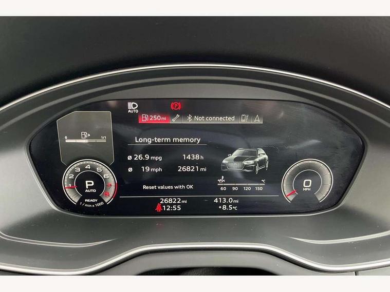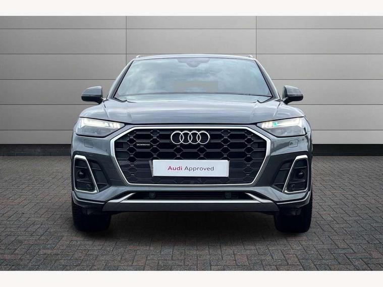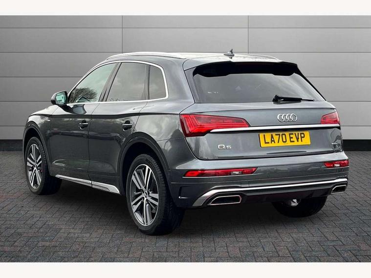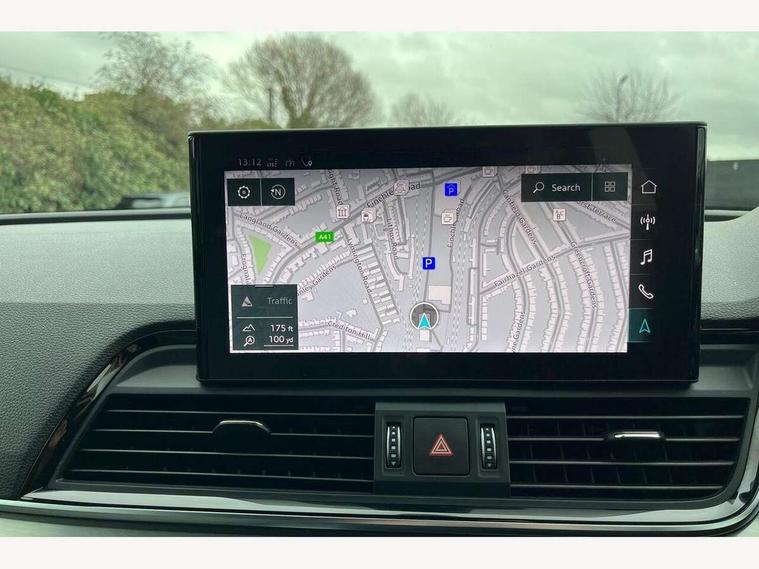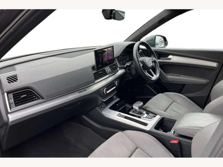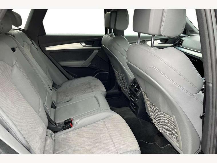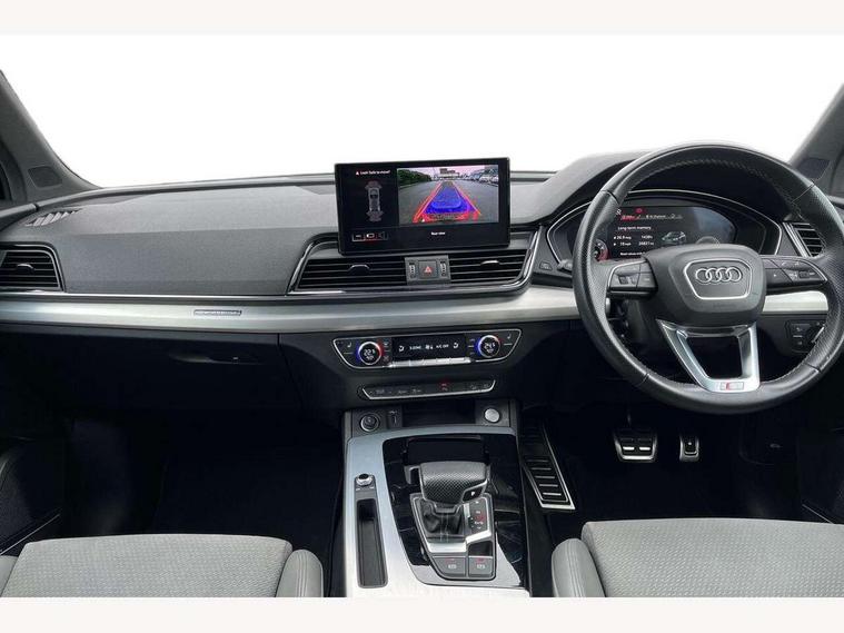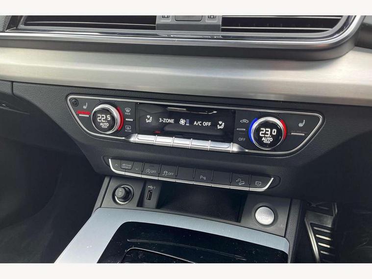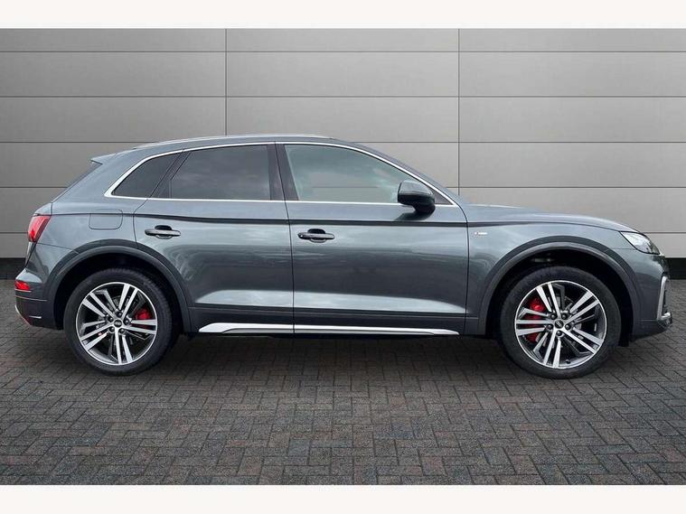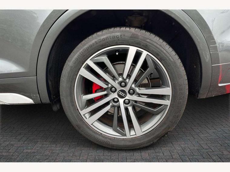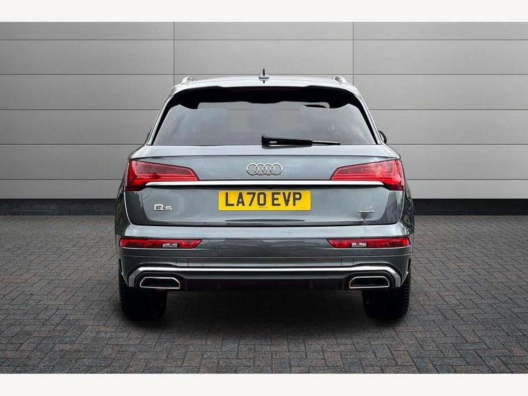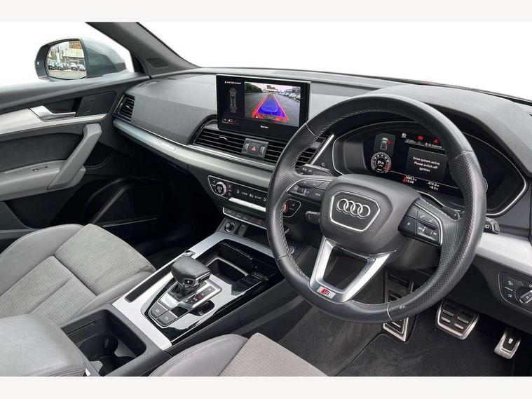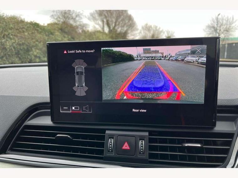 Amazon alexa Integration, Audi connect safety and service (e-call), Audi drive select, Audi virtual cockpit plus with 12.3" screen and three different layout designs, Audi wireless smartphone interface, Automatic start-stop system with coasting functionality and efficiency programme, Electro - mechanical power assisted steering, MMI navigation plus with 10.1" touch screen, Mobile telephone preparation - bluetooth interface, Power tailgate, Service interval indicator, Voice control system with Audi hotword activation "Hey Audi", Quattro on demand, 2 x USB charging port with aux input socket, DAB Digital radio, Acoustic windscreen, Air inlets in matt titanium black with blades in matt aluminium silver, Aluminium roof rails, Audi matrix LED headlights with LED rear lights + dynamic front and rear indicators, Auto dimming rear view mirror, Automatic headlight adjustment, Automatic headlights and windscreen wipers, Body colour bumpers, Body colour door mirrors, Body colour rear diffuser with matt aluminium silver surrounds, Body colour underbody protection, Chrome plated exhaust trims, Door sills in Selenite silver, Electric adjustable/heated/folding door mirrors, Front air inlet surrounds in aluminium, Front and rear electric windows, Front radiator grille in honeycomb design, Headlight washers, Rear chrome trim strip below lights, Rear privacy glass and rear side windows, Rear spoiler, Rear wiper, Roof bars, S Line badges on the front wings, S Line front and rear bumpers, S Line side skirts, 3 rear headrests, 40:20:40 split folding rear seat with rear centre armrest, Black cloth headlining, Contrast stitching on seats, steering wheel and gear lever gaiter, Deluxe 3 zone electronic climate control, Front centre armrest, Front sport seats with S embossed logo, Front/rear floor mats, Gear lever in black leather, Heated front seats, Height adjustable front head restraints, Height/reach adjustable steering column, Illuminated door sill trims with S logo, ISOFIX child seat mounting and top tether, Manual seat adjustment with 4-way electric lumbar support, Removable luggage compartment floor, Stainless steel pedals, Sunvisors with vanity mirrors, Trunk roller cover, High gloss pack - Q5, LED interior light pack - Q5, 3 point seatbelts on all seats, 6 airbags - Driver, front passenger, curtain and side airbags, Electrically operated child locks on rear doors, Electromechanical parking brake, Electronic stabilisation control including ABS, ASR and EDL, Front passenger airbag deactivation, Hill descent control, Hill hold assist, Multi collision brake assist, Pop-up bonnet for pedestrian protection, Pre sense city, Seat belt force limiter, Seatbelt monitoring, Tyre pressure warning, Warning triangle and first aid kit, Anti theft alarm, Anti-theft wheel bolts, Keyless Go access/ignition system, Matt brushed aluminium inlays, Tool kit,
