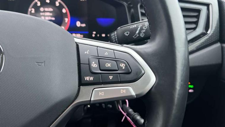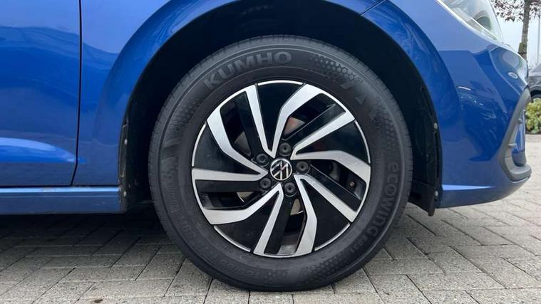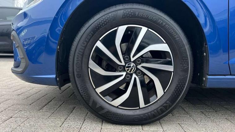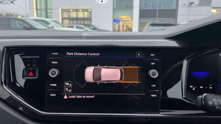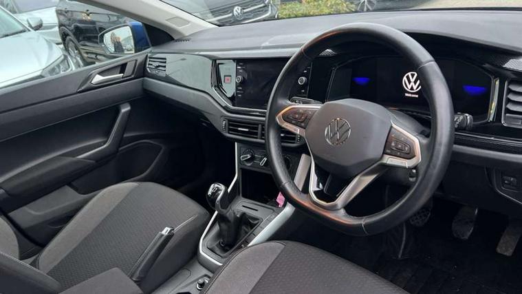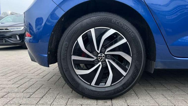 Adaptive cruise control without follow-to-stop and speed limiter, Advanced driver attention and drowsiness monitor, Bluetooth mobile phone interface, Driver alert system, Dynamic road sign display, Emergency call service, Front assist system, Power assisted speed sensitive steering, Preparation for We connect and We connect plus, Speedo and rev counter, electronic odometer, trip, service interval display and fuel gauge, Standard rear axle, Travel Assist - Lane keeping system and traffic jam assist, Travel assist including emergency assist, Trip computer, Warning signal and warning light for front and rear seatbelts not fastened, Washer fluid level indicator, Wireless app connect, Front wheel drive, Rear shock absorpion, Start-stop system with battery regeneration (recuperation - energy recovery during braking), DAB Digital radio, Diversity antenna for FM reception, Front and rear 6 speakers, Automatic dimming interior rear view mirror, Body colour bumpers, Body colour door handles, Body colour door mirrors, Electric front windows, Heat insulating darkened glass in side and rear windows, Heat insulating glass windscreen, Power folding adjustable/heated exterior mirrors and front passenger exterior mirror lowering function, Rain sensor, Rear electric windows, Rear fog light, Rear side wing doors, Rear windscreen washer and wiper with interval delay, Third brake light, 12V power socket in centre console, 2 front and 2 rear reading lights, 2 USB-C ports in the front, 2 USB-C charging sockets on the center console in the rear, 3 rear head restraints, 60/40 split folding rear seat and rear seat bench not split, Chrome plated radiator grille inserts, air vent surrounds and light switch surrounds, Door and side trim panel, Driver and front passenger seat height adjustment, Driver/passenger sunvisors with illuminated vanity mirrors, Front centre armrest, Front seat backrest storage pockets, Front standard seats, Handbrake lever handle in leather, Hartley/Thomas cloth upholstery, Headliner in recycled material, Isofix child seat preparation easy-fit (for two outer rear seats, and front passenger seat) compatible with I-size, Leather trimmed gear knob, Luggage compartment cover, Luggage compartment floor, Luggage compartment lighting, Multifunction steering wheel, Single front passenger seat, Standard pedal cluster, Light and vision pack - Polo, 3 point height adj front seatbelts + pretensioners, 3x3 point rear seatbelts, ABS, Driver and front passenger airbag with front passenger airbag deactivation, Drivers and front passengers safety optimised head restraints, ESC (Electronic stability control) + EDL (Electronic Differntial lock) and ASR (Traction control), Extended and predictive pedestrian/ cyclist protection, Front curtain and side airbags with center airbag, Front disc brakes, Hill hold control, Manual child lock in rear doors, Rear drum brakes, Single tone horn, Tyre pressure loss indicator, Alarm with interior protection, Anti-theft alarm system with interior monitoring, backup horn, and towing protection, Anti-theft wheel bolts, Electronic engine immobiliser, Lava stone black gloss/matt decorative inserts in dash and front door panels, Low rolling resistance tyres,