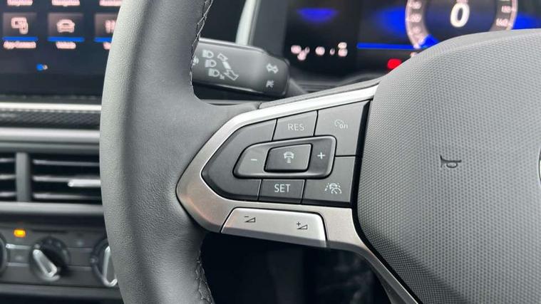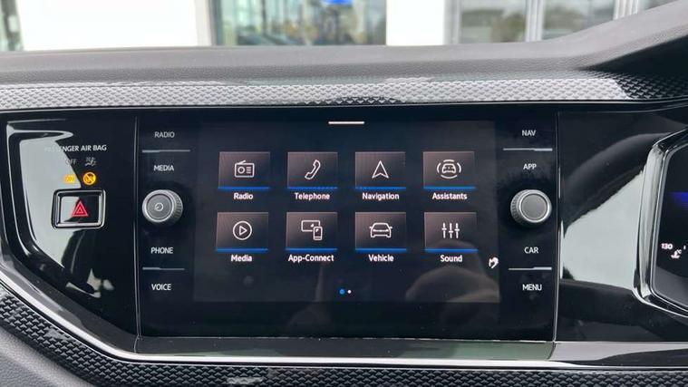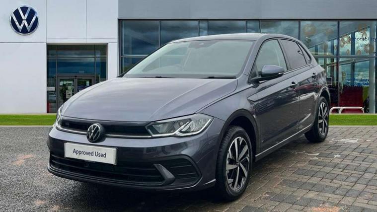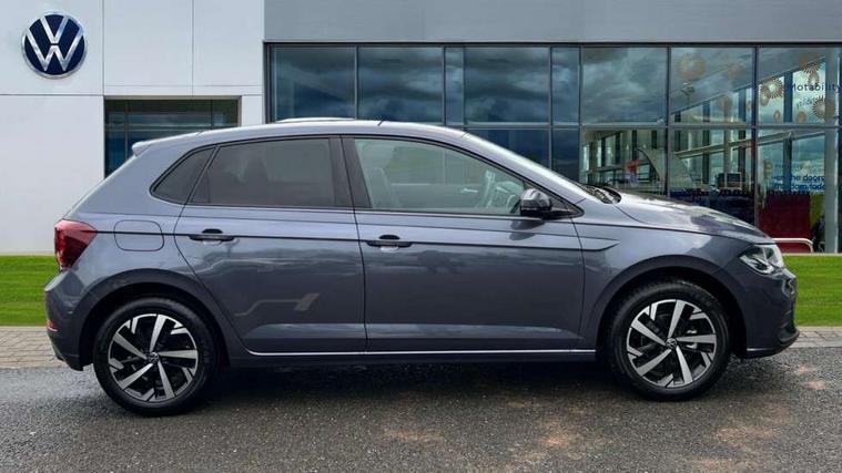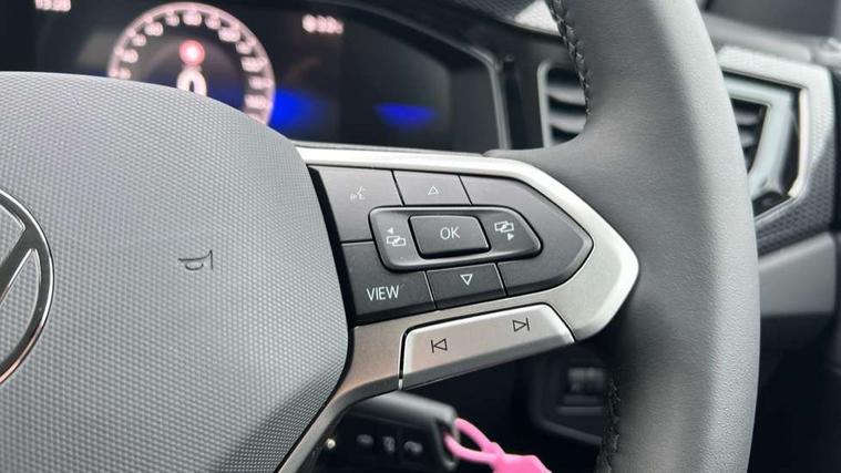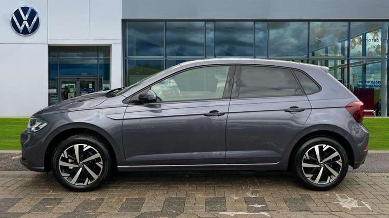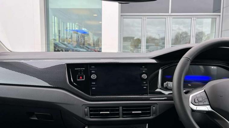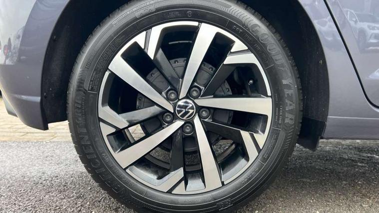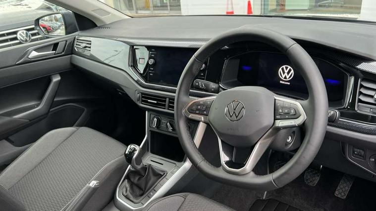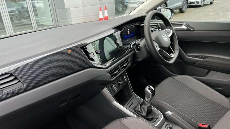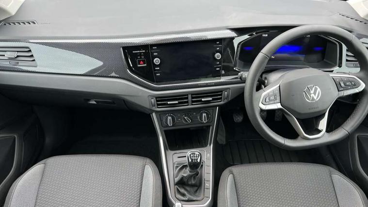 Adaptive cruise control without follow-to-stop and speed limiter, Advanced driver attention and drowsiness monitor, Bluetooth mobile phone interface, Dynamic road sign display, Emergency call service, Mobile phone preparation with inductive charging function, Multifunction front facing camera for distance control, Power assisted speed sensitive steering, Preparation for navigation system with media and internet package, Preparation for We connect and We connect plus, Rear view camera, Speedo and rev counter, electronic odometer, trip, service interval display and exterior temperature gauge, Standard rear axle, Travel Assist - Lane keeping system and traffic jam assist, Travel assist including emergency assist, Trip computer, Warning signal and warning light for front and rear seatbelts not fastened, Washer fluid level indicator, Wireless app connect, Front wheel drive, Rear shock absorpion, Start-stop system with battery regeneration (recuperation - energy recovery during braking), DAB Digital radio, Diversity antenna for FM reception, Automatic dimming interior rear view mirror, Automatic headlight control with LED separate daytime running lights with coming/leaving home function, Body colour bumpers with chrome inserts, Body colour door handles, Body colour door mirrors, Electric front windows, Engine badge deletion, Headlight range adjustment, Heat insulating and laminated safety glass windshield, LED Headlights, LED rear combination lamps, Power folding adjustable/heated exterior mirrors and front passenger exterior mirror lowering function, Rain sensor, Rear electric windows, Rear fog light, Rear side wing doors, Rear tinted glass from B-pillar backwards approx 65% tinted, Rear windscreen washer and wiper with interval delay, Third brake light, 12V power socket in centre console, 2 front and 2 rear reading lights with switch off delay and dimmer, 2 USB-C ports in the front, 2 USB-C charging sockets on the center console in the rear, 3 rear head restraints, 60/40 split folding rear seat and rear seat bench not split, Carpet mats, front and rear, Ceramique roof lining, Chrome plated radiator grille inserts, air vent surrounds and light switch surrounds, Door and side trim panel, Driver and front passenger seat height adjustment, Driver/passenger sunvisors with illuminated vanity mirrors, Front centre armrest, Front seat backrest storage pockets, Front standard seats, Handbrake lever handle in leather, Hartley/Thomas cloth upholstery, Headliner in recycled material, Isofix child seat preparation easy-fit (for two outer rear seats, and front passenger seat) compatible with I-size, Leather trimmed gear knob, Luggage compartment cover, Luggage compartment lighting, Removable luggage compartment floor, Single front passenger seat, Standard climatic zones, Standard pedal cluster, Three spoke leather wrapped multifunction steering wheel, Light and vision pack - Polo, 3 point height adj front seatbelts + pretensioners, 3 point seat belt for centre rear seat, 3 point seatbelts, outer rear with ECE lable, ABS, Driver and front passenger airbag with front passenger airbag deactivation, Drivers and front passengers safety optimised head restraints, ESC (Electronic stability control) + EDL (Electronic Differntial lock) and ASR (Traction control), Extended and predictive pedestrian/ cyclist protection, Front assist with autonomous emergency braking (for Adaptive Cruise Control ACC up to 130 mph), Front curtain and side airbags with center airbag, Front disc brakes, Hill hold control, Manual child lock in rear doors, Rear drum brakes, Single tone horn, Tyre pressure loss indicator, Alarm with interior protection, Anti-theft alarm system with interior monitoring, backup horn, and towing protection, Anti-theft wheel bolts, Electronic engine immobiliser, Lava stone black gloss/matt decorative inserts in dash and front door panels, 16" Torsby alloy wheels, Low rolling resistance tyres,