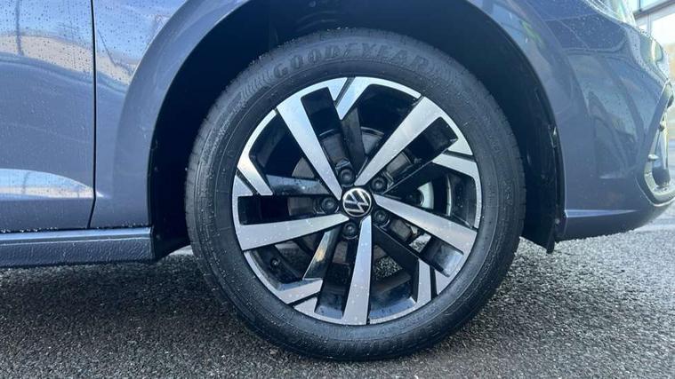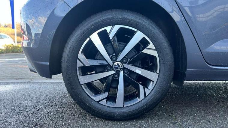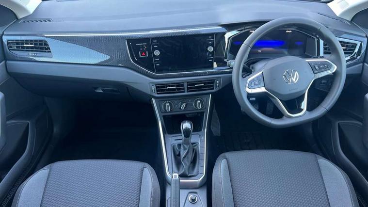 Advanced driver attention and drowsiness monitor, Bluetooth mobile phone interface, Dynamic road sign display, Emergency call service, Mobile phone preparation with inductive charging function, Multifunction front facing camera for distance control, Power assisted speed sensitive steering, Predictive adaptive cruise control without follow-to-stop and speed limiter, Preparation for navigation system with media and internet package, Preparation for We connect and We connect plus, Rear view camera, Speedo and rev counter, electronic odometer, trip, service interval display and exterior temperature gauge, Standard rear axle, Travel Assist - Lane keeping system and traffic jam assist, Travel assist including emergency assist, Trip computer, Warning signal and warning light for front and rear seatbelts not fastened, Washer fluid level indicator, Wireless app connect, Front wheel drive, Rear shock absorpion, Start-stop system with battery regeneration (recuperation - energy recovery during braking), DAB Digital radio, Diversity antenna for FM reception, Automatic dimming interior rear view mirror, Automatic headlight control with LED separate daytime running lights with coming/leaving home function, Body colour bumpers with chrome inserts, Body colour door handles, Body colour door mirrors, Electric front windows, Engine badge deletion, Headlight range adjustment, Heat insulating and laminated safety glass windshield, LED Headlights, LED rear combination lamps, Power folding adjustable/heated exterior mirrors and front passenger exterior mirror lowering function, Rain sensor, Rear electric windows, Rear fog light, Rear side wing doors, Rear tinted glass from B-pillar backwards approx 65% tinted, Rear windscreen washer and wiper with interval delay, Third brake light, 12V power socket in centre console, 2 front and 2 rear reading lights with switch off delay and dimmer, 2 USB-C ports in the front, 2 USB-C charging sockets on the center console in the rear, 3 rear head restraints, 60/40 split folding rear seat and rear seat bench not split, Carpet mats, front and rear, Ceramique roof lining, Chrome plated radiator grille inserts, air vent surrounds and light switch surrounds, Door and side trim panel, Driver and front passenger seat height adjustment, Driver/passenger sunvisors with illuminated vanity mirrors, Front centre armrest, Front seat backrest storage pockets, Front standard seats, Handbrake lever handle in leather, Hartley/Thomas cloth upholstery, Headliner in recycled material, Isofix child seat preparation easy-fit (for two outer rear seats, and front passenger seat) compatible with I-size, Leather trimmed gear knob, Luggage compartment cover, Luggage compartment lighting, Removable luggage compartment floor, Single front passenger seat, Standard climatic zones, Standard pedal cluster, Three spoke leather wrapped multifunction steering wheel with shifting paddles, Light and vision pack - Polo, 3 point height adj front seatbelts + pretensioners, 3 point seat belt for centre rear seat, 3 point seatbelts, outer rear with ECE lable, ABS, Driver and front passenger airbag with front passenger airbag deactivation, Drivers and front passengers safety optimised head restraints, ESC (Electronic stability control) + EDL (Electronic Differntial lock) and ASR (Traction control), Extended and predictive pedestrian/ cyclist protection, Front assist with autonomous emergency braking (for Adaptive Cruise Control ACC up to 130 mph), Front curtain and side airbags with center airbag, Front disc brakes, Hill hold control, Manual child lock in rear doors, Rear drum brakes, Single tone horn, Tyre pressure loss indicator, Alarm with interior protection, Anti-theft alarm system with interior monitoring, backup horn, and towing protection, Anti-theft wheel bolts, Electronic engine immobiliser, Lava stone black gloss/matt decorative inserts in dash and front door panels, 16" Torsby alloy wheels, Low rolling resistance tyres,