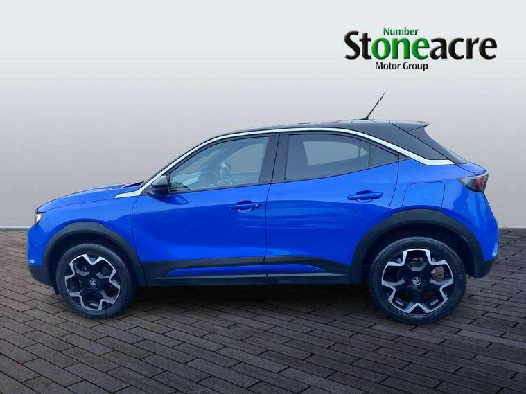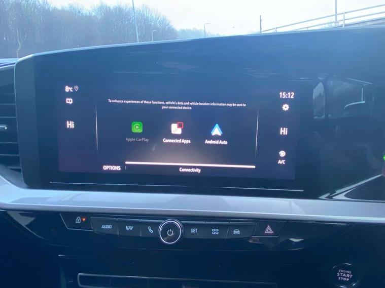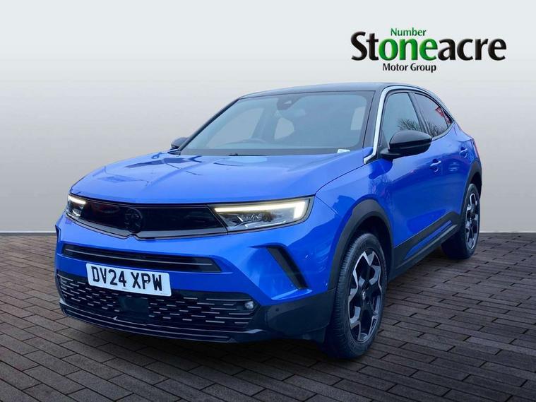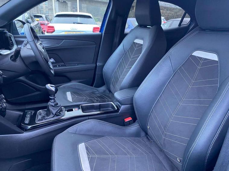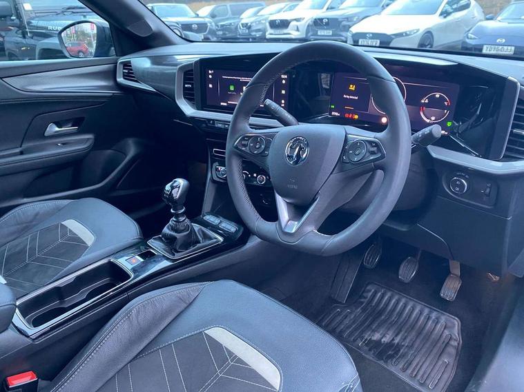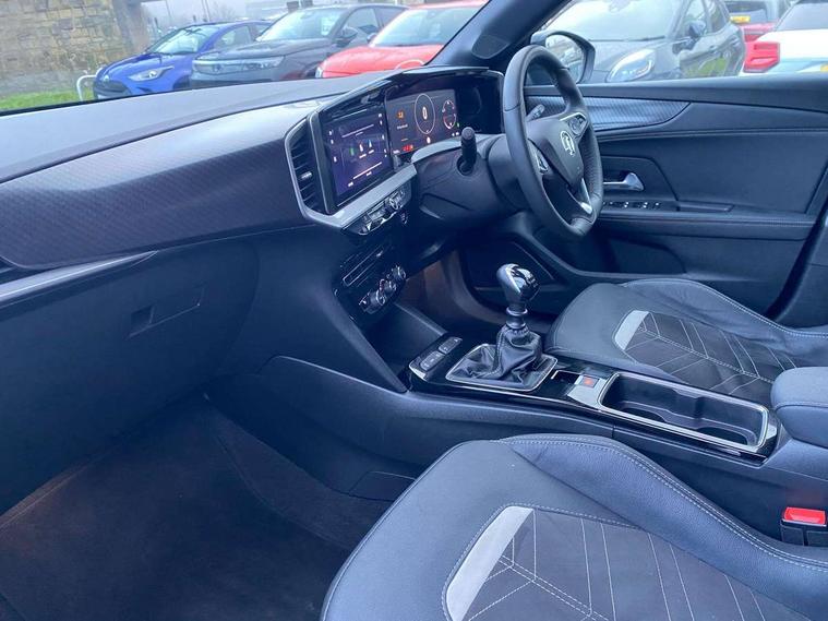 12" digital instrument cluster, Adaptive cruise control with speed limiter, Digital instrumentation with digital speedometer, rev counter, fuel and water temperature gauge, Driver drowsiness alert system, Driver information display with multi function trip computer, audio info, digital clock and outside air temperature with ice warning function, Engine start/stop button, EV information display, Extended traffic sign recognition, Front and rear parking distance sensors, Front camera and radar system, Gearshift up/down indication light, Lane keep assist system (LAS) with Lane departure warning system (LDWS), Lights on audible warning, Panoramic rear view camera, Power assisted speed sensitive steering, RDS with traffic programme, Side blind spot alert and flank guard, Smartphone integration compatible with Apple CarPlay and Android Auto, Sports switch with engine sound enhancement, Start/stop system, Vauxhall connect with e-Call, 6 speed manual transmission, 6 speakers, AM/FM stereo radio with 36 station presets, DAB Digital radio, Flexible Roof Mounted Radio Aerial, Front USB connection, Mobile phone portal - bluetooth connect, vehicle microphone, handsfree calls, SMS read out and reply, phone book access, Multimedia Navi Pro with 10" colour touchscreen, Steering wheel mounted controls, Two rear USB sockets, Adaptive brake lights, Auto high beam assist, Automatic headlamp levelling, Automatic lighting control with tunnel detection, Automatically dimming anti dazzle rear view mirror, Black door mirror housings, Black front and rear bumper inserts, Black Griffin logo and vizor frame, Black upper window moulding, Body colour door handles, Body colour front and rear bumpers, Dark tinted rear side windows + tailgate window, Electric adjustable/heated/folding door mirrors + puddle lights, Electrically operated front and rear windows with safety auto reverse and one touch up/down facility, Hazard warning lights, Heated rear window+rear wash/wipe, Integrated black tailgate spoiler, IntelliLux Matrix LED headlights with adaptive forward lighting with anti glare beam, LED 3rd brake light, LED daytime running lights, LED front fog lamps, LED side repeat indicators, LED tail lights, Rear foglight, Rear side wing doors, Reversing light, Solar heat absorbing windscreen and windows, Two speed rain-sensitive windscreen wipers with variable intermittent wipe, Windscreen and side window demist vents, 12V Accessory socket, 3 seat bench in 2nd row, 3 spoke flat bottomed leather effect steering wheel with satin chrome effect bezel, 4 speed fan with illuminated controls, 4 Way driver seat with lumbar and massage function, 6 way manual adjustable driver fore/aft, up/down with reclining seatback, 6 way manual adjustable front passenger fore/aft, up/down with reclining seatback, 60/40 split folding rear seat, Air recirculation system, Alcantara/leather upholstery, Black headliner, Cabin particulate filter - removes dust, airborne particles and pollen, Centre console with two cup holders at front and one in rear, Chrome effect interior door handles, Door pockets with two litre capacity, Driver and passenger sun visors with vanity mirror, Electronic climate control (ECC), Four adjustable facia vents, Four load restraint lashing eyes, Front centre armrest with storage, Front head restraints, Front map reading lights, Front seat back storage pockets, Fully carpeted load area, Heated front seats, Heated steering wheel, Interior courtesy light, Interior tailgate handle, Luggage compartment cover, Luggage compartment lighting, Movable boot floor, Reach + rake adjustable steering column, Single front passenger seat, Three height adjustable rear seat head restraints, Twin gas assisted tailgate struts, Black Pack with badge - Mokka, 2x Isofix child seat fitting on outer rear seats, 3x3 point rear seat belts, Anti-lock braking system (ABS), Child proof locks on rear doors, Cornering brake control, Deactivation switch for front passenger front and side impact airbags, Drag torque control, Driver and front passenger airbags, front seat side impact airbags, full size curtain airbags, Electronic brake force distribution, Electronic Stability Programme (ESP), Emergency brake assist, Enhanced automatic emergency braking with pedestrian detection, Forward collision alert at all speed, Hill start assist, Inertia reel lap and diagonal seatbelts for all seats, Seatbelt unfastened audible warning and warning light, Straight line stability control, Traction control, Tyre pressure monitoring system, Electronically protected audio equipment, Engine deadlock immobiliser, Freewheeling door locks, Key left in ignition audible warning, Keyless entry and start, Locking wheel nuts, Remote control central locking, Remote control ultrasonic security alarm system, Visible vehicle identification number, Black facia with silver trim insert, Instrument panel bar in polar silver, Light grey trim inserts on front doors, 18" bi colour alloy wheels,
