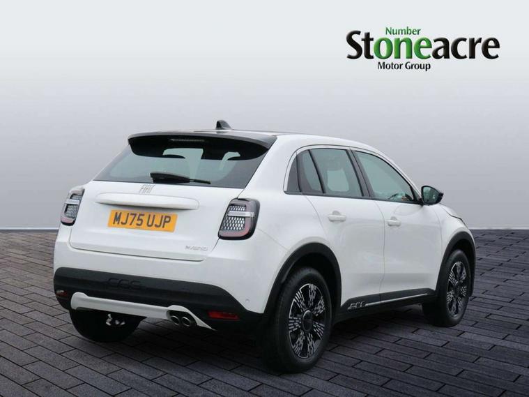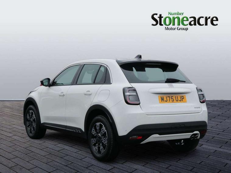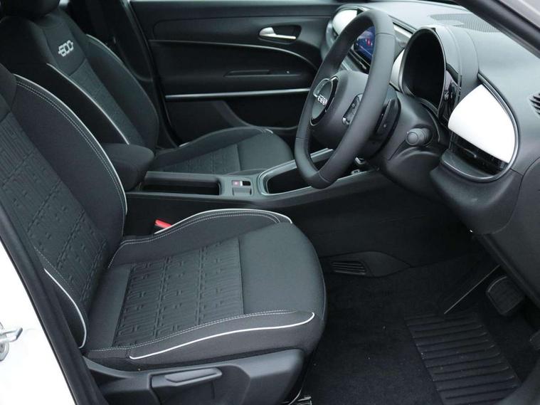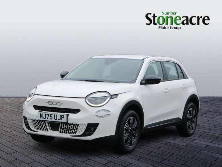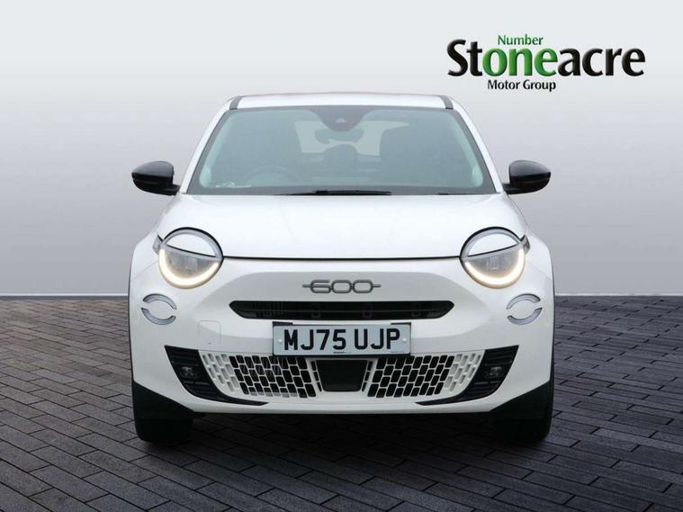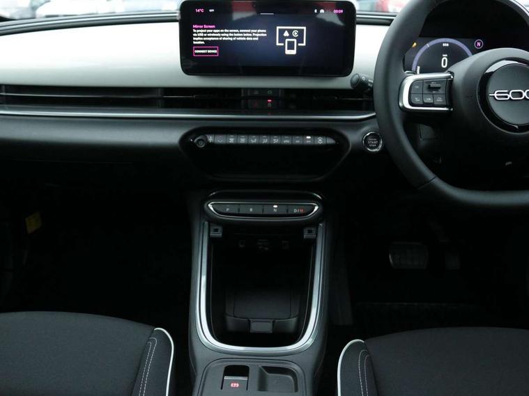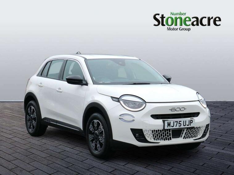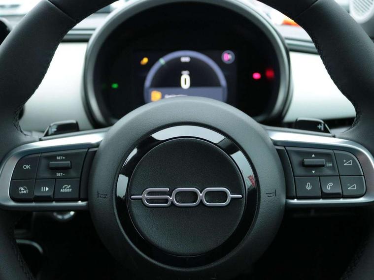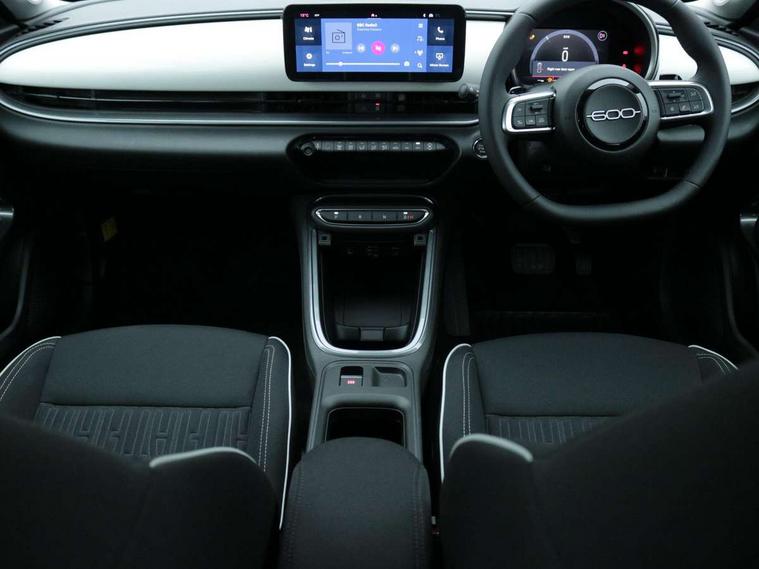 7" TFT digital cluster, Bluetooth connectivity, BSRF connectivity box, Connected services, Cruise control, Drowsy driver detection, Emergency E-call assist, Engine emission level default, GSR II step 1, Intelligent speed assist, Lane keeping assistant (LKA), Odometer, Power assist steering, Rain and dusk sensors, Rear parking sensors, Traffic sign recognition, Wireless apple car play/android Auto, Without drive mode selector, L2-AGM 12V battery, 1st Row USB type-A and USB type-C, 4 speaker audio system, Radio, Uconnect infotainment 10.25" touchscreen with DAB, All power windows express Up/Down, Auto dimming frameless rear view mirror, Automatic headlights, Body coloured door handles, Chrome day light openings, Electric adjustable door mirrors, Exterior chrome accents, Front and rear Chromed 600 logo, Gloss black finish B pillar, Gloss black shark fin antenna, Glossy black door mirrors, Heated windscreen wiper blade area, LED 3rd brake light, LED daytime running lights, LED Fog lamps with cornering function, LED front signature lighting, LED front turn indicators and position lights, LED rear lights, LED rear signature lighting, LED reflector headlamps, Matt black side skirts with 600 chromed logo, Rear bumper embossed 600 logo, Rear roof spoiler, Rear side wing doors, Rear wiper, 2 Spoke synthetic leather steering wheel with audio control, 3 rear headrests, 3 seat bench in 2nd row, 4 way manually adjustable passenger seat, 6 way manually adjustable drivers seat, Auxilliary 12V power socket, Body colour dashboard fascia, Chrome interior door handles, Dark metachrome dashboard ring, English handbook, Front centre armrest, Front headrests, Front passenger grab handle, Front seatback pockets, ISOFIX attachment on front passenger and rear passenger seats, Manual climate control, Metachrome central compartment bezel, Monogram fabric upholstery, Paddle shifts, Partial body cover for shipment, Predisposal for accessory upgrade to default tunnel pad cover (dedicated prnd bezel), Rear seat 40/60 split, Single front passenger seat, Smart 15L storage central tunnel with tunnel pad cover, Sunvisor label ciao Fiat, Sunvisors with vanity mirrors, 3x3 point rear seatbelts, 6 airbags, ABS, Autonomous Emergency Brake (AEB) & Vulnerable Road User (VRU) Protection, Child locks on rear doors, Electronic parking brake with auto hold, ESC (Electronic Stability Control), Front passenger airbag deactivation, Seatbelt reminder and pretensioners for all seats, Anti-theft volumetric alarm, Anti-theft wheel bolts, Keyless Go, 17" Diamond cut alloy wheels, Fix and go puncture repair kit,