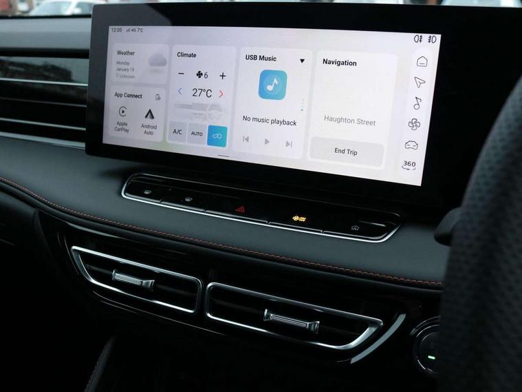 Driver attention alert, 12.3" colour touchscreen, 12.3" Virtual driver information display, 360 degree parking camera, Adaptive cruise control, Android Auto, Apple CarPlay, Blind spot detection, Bluetooth connectivity, Driving modes, Emergency call service, Forward collision warning, Front parking sensors, Intelligent speed limit assist, iSmart, Lane change assist, Lane keep assist system (LAS) with Lane departure warning system (LDWS), Live services, PAS, Rear cross traffic alert, Rear parking sensors, Satellite navigation system, Smart power tailgate, Traffic jam assist, Trip computer, Wireless charging, 4 USB ports 2 front and 2 rear, 8 Speaker audio system, DAB audio, Auto dimming rear view mirror, Automatic headlights, Electric adjustable/heated/folding door mirrors with memory, Follow me home headlights, Front and rear aero wiper, Front and rear electric windows with one-touch up/down, Front fog lights, Intelligent high beam, LED 3rd brake light, LED daytime running lights, LED Headlights, LED rear lights, Rain sensing wipers, Rear privacy glass, Rear side wing doors, Side steps, Silver roof rails, Vehicle to Load, 12V power sockets, 2nd row 60/40 split fold seat, 3 rear headrests, 3 seat bench in 2nd row, 3 stage heated front seats, 4 way electric adjustable passenger seat, 6 way electric adjustable drivers seat with lumbar adjustment and memory function with easy access, Dual zone automatic air conditioning, Front and rear reading lights, Front centre sliding armrest with storage compartment, Front headrests, Height and reach adjustable steering wheel, ISOFIX restraints on outer rear seats x2, Metal sports pedals, Multi function steering wheel, Single passenger seat, 3x3 point rear seatbelts, ABS/EBD, Active emergency braking with pedestrian/Bicycle detection, Anti rolling protection, Door open warning, Drivers seatbelt reminder, Dual front airbags, Electric parking brake with auto hold function, ESP, Front and rear passenger seat belt reminder, Front centre airbag, Front passenger airbag deactivation switch, Front seat belt height adjuster, Front seatbelts (3-point + pretensioner + load limiter), Front side airbags, Hill descent control, Hill launch assist, Manual rear child locks, Rear outer seatbelt pretensioner and load limiter, Side curtain airbags, Tyre pressure monitoring system, Acoustic vehicle alert system (AVAS), Alarm system and engine immobiliser, Keyless entry and push button start system, Remote central locking, Speed sensing door locks, 19" Blade diamond cut alloy wheels, Tyre repair kit,